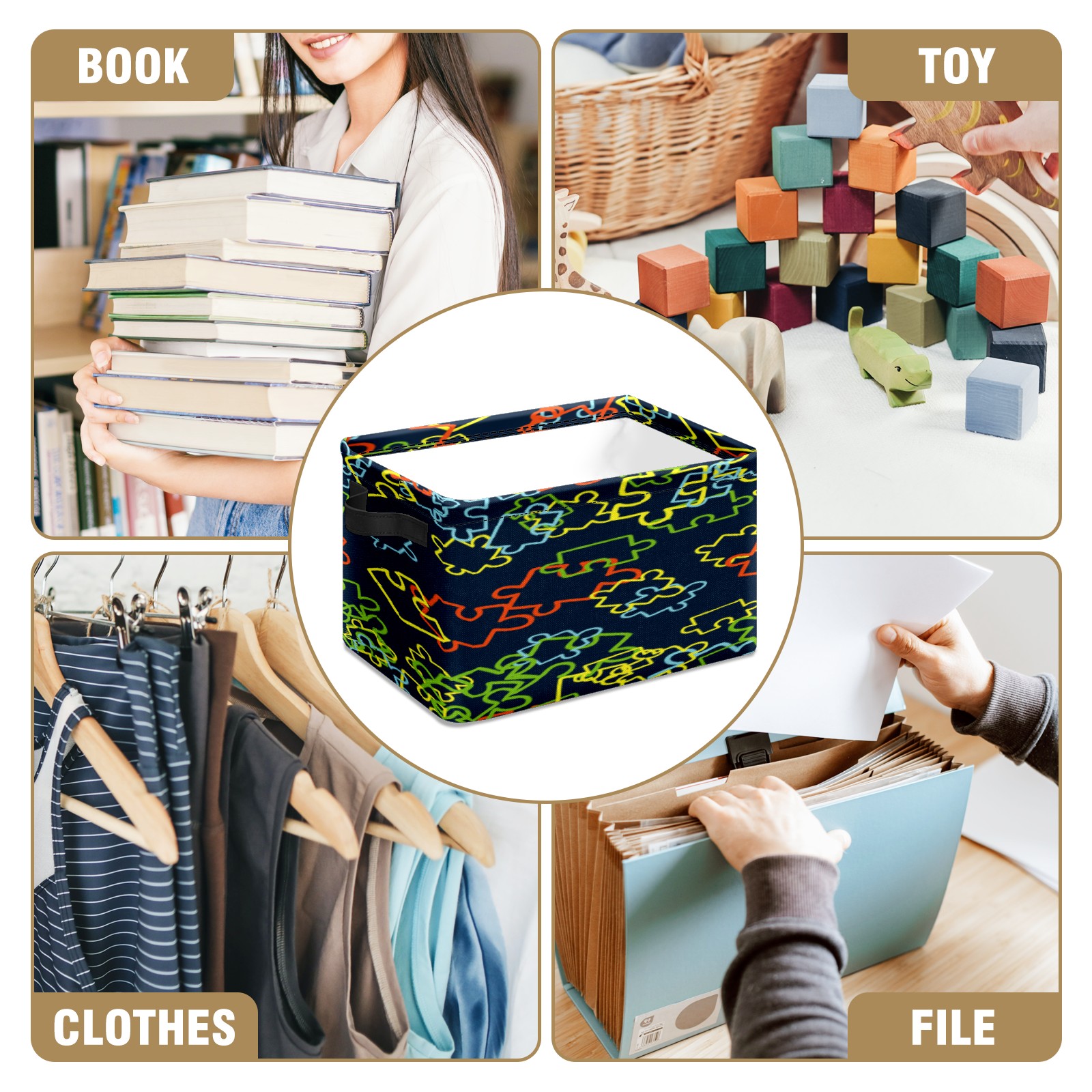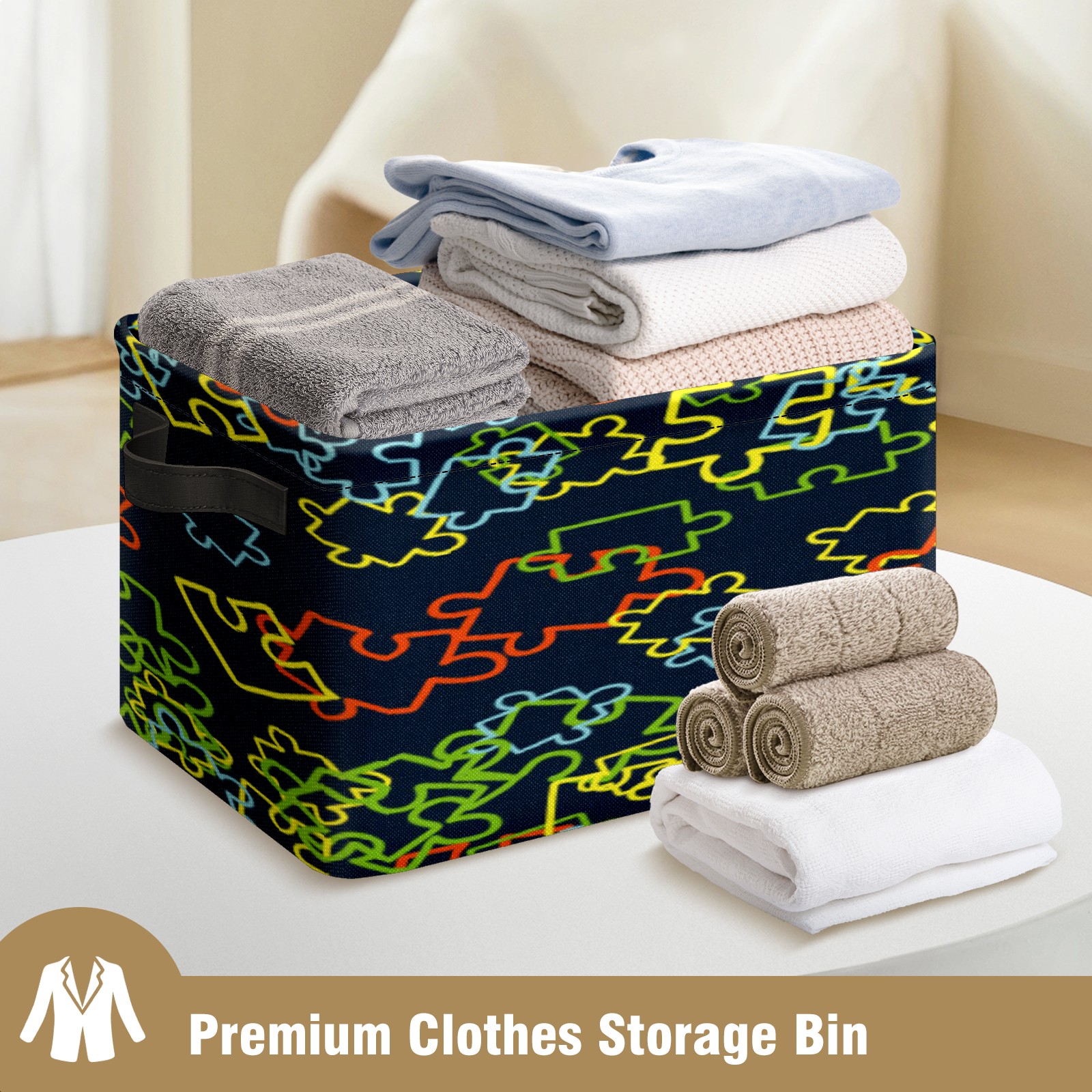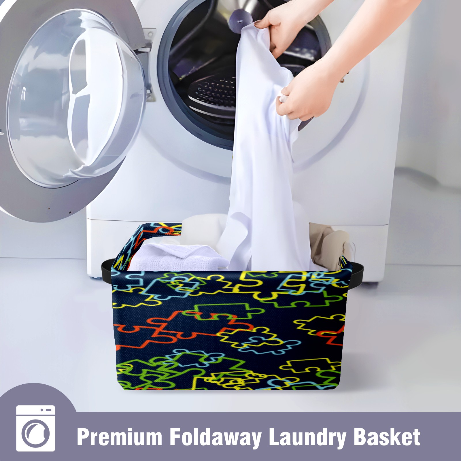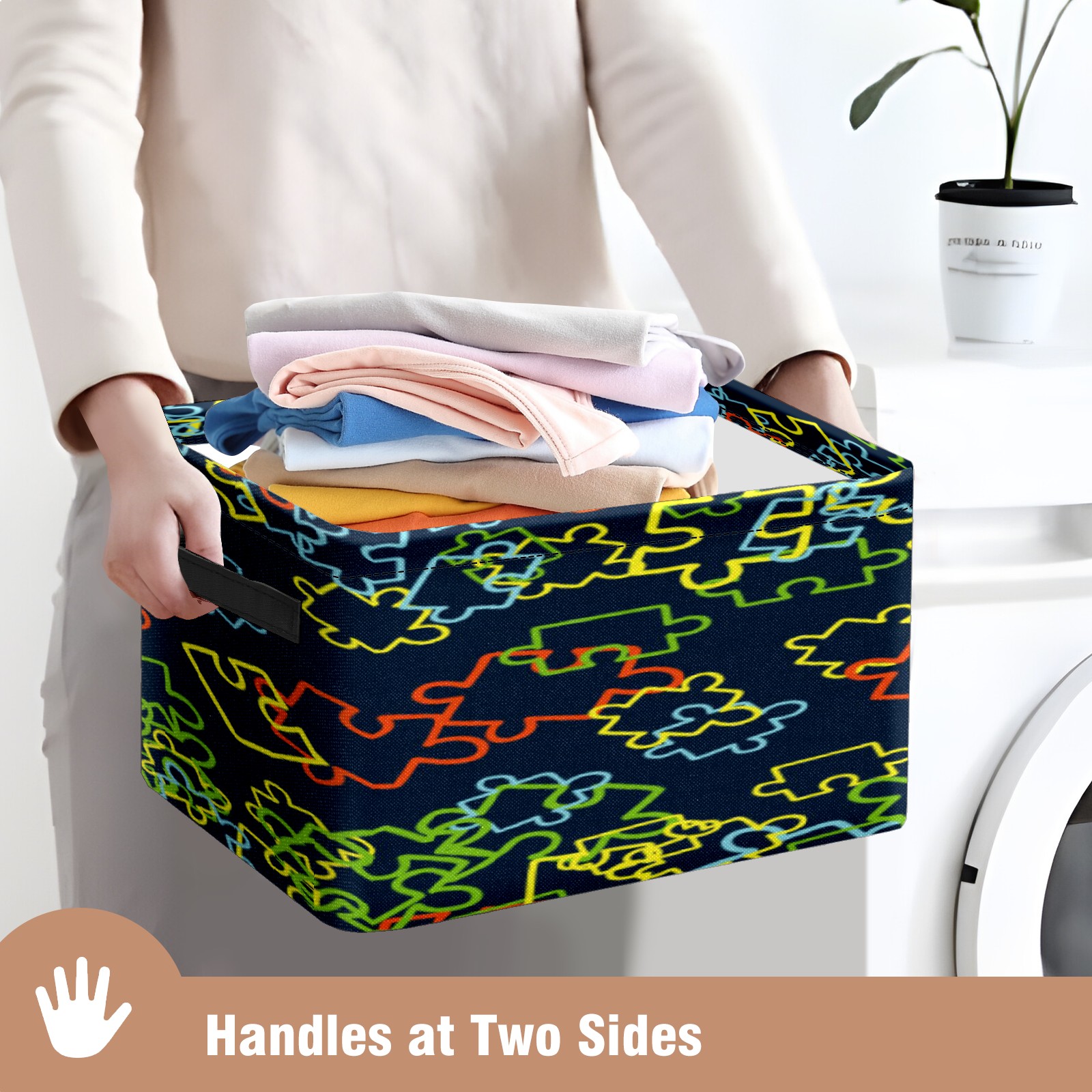 Collapsible 600D Oxford Storage Basket with Autism Day Poster - Metal Frame 10"x14"x8" Reinforced Handles, Multi-Purpose Organizer