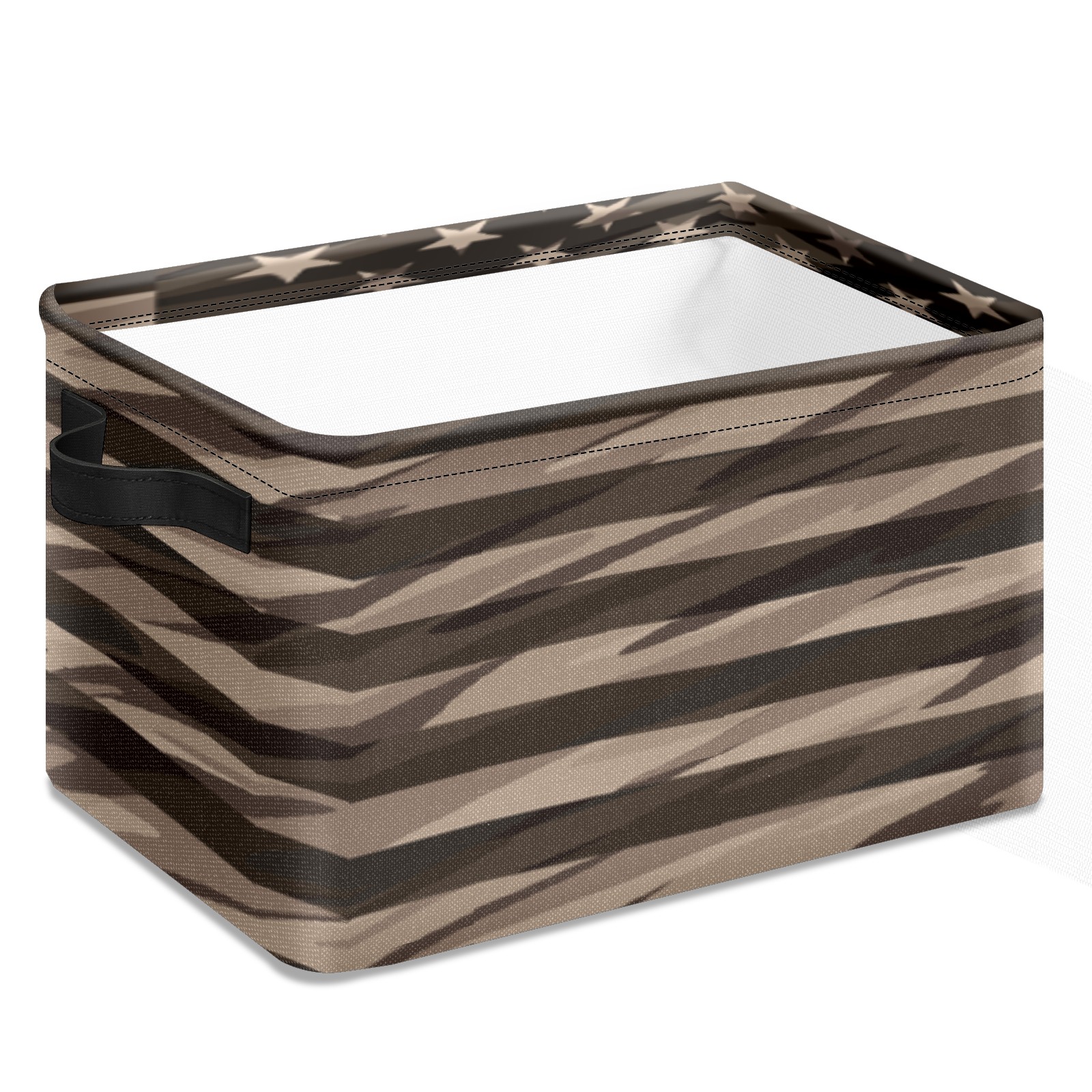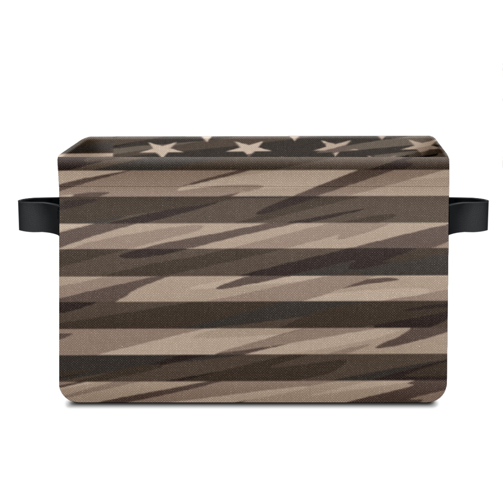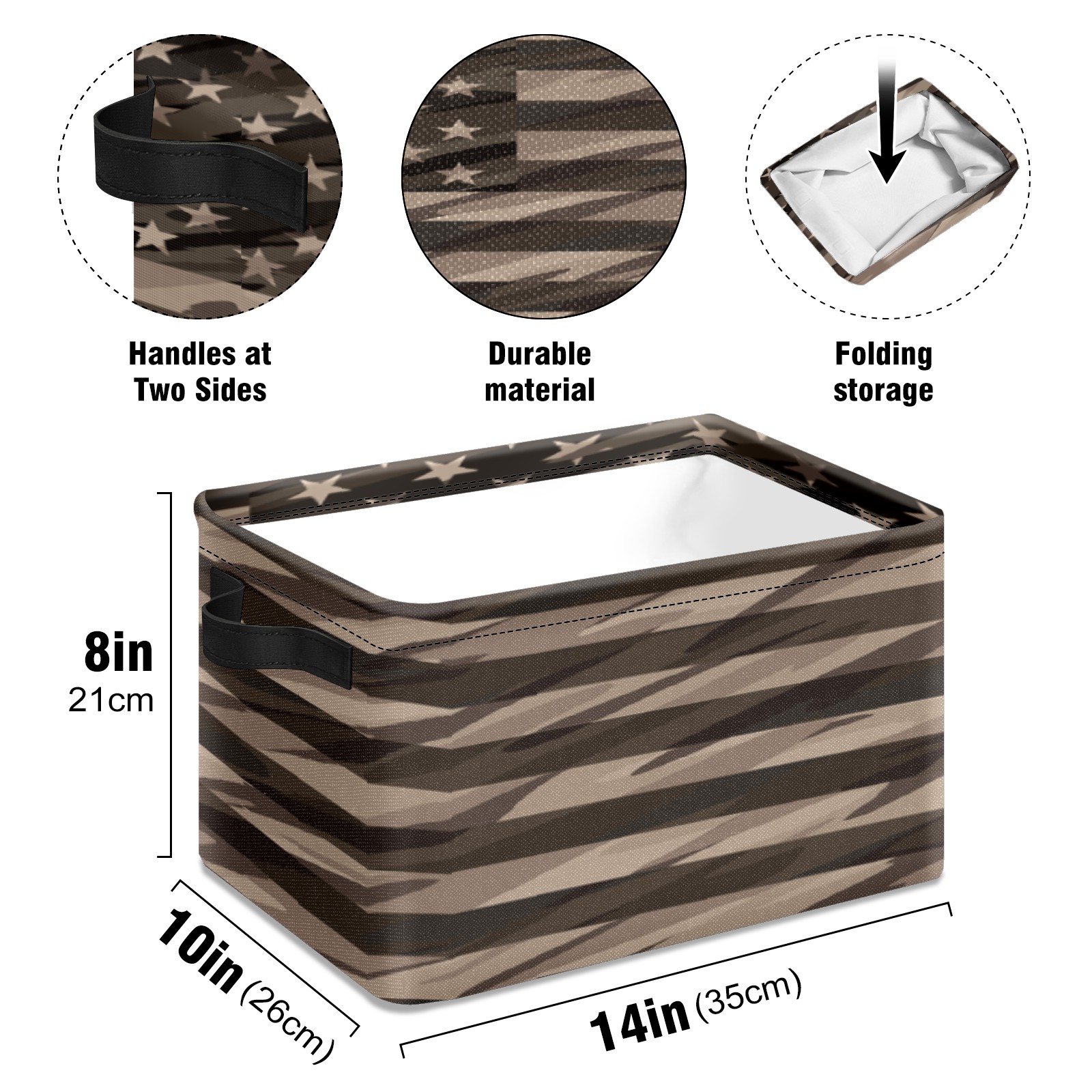Collapsible 600D Oxford Storage Basket with Rustic American Flag - Metal Frame 10"x14"x8" Reinforced Handles, Multi-Purpose Organizer