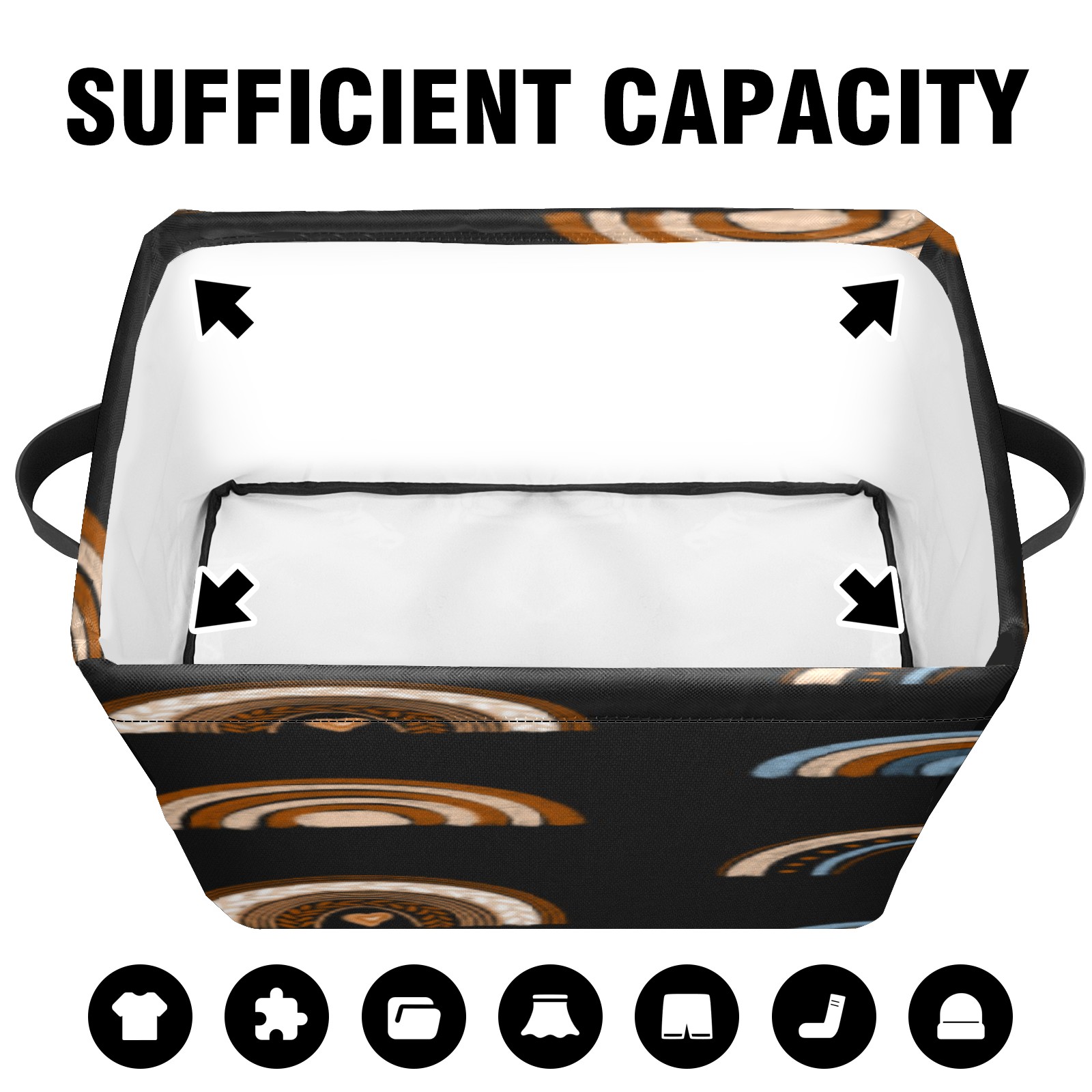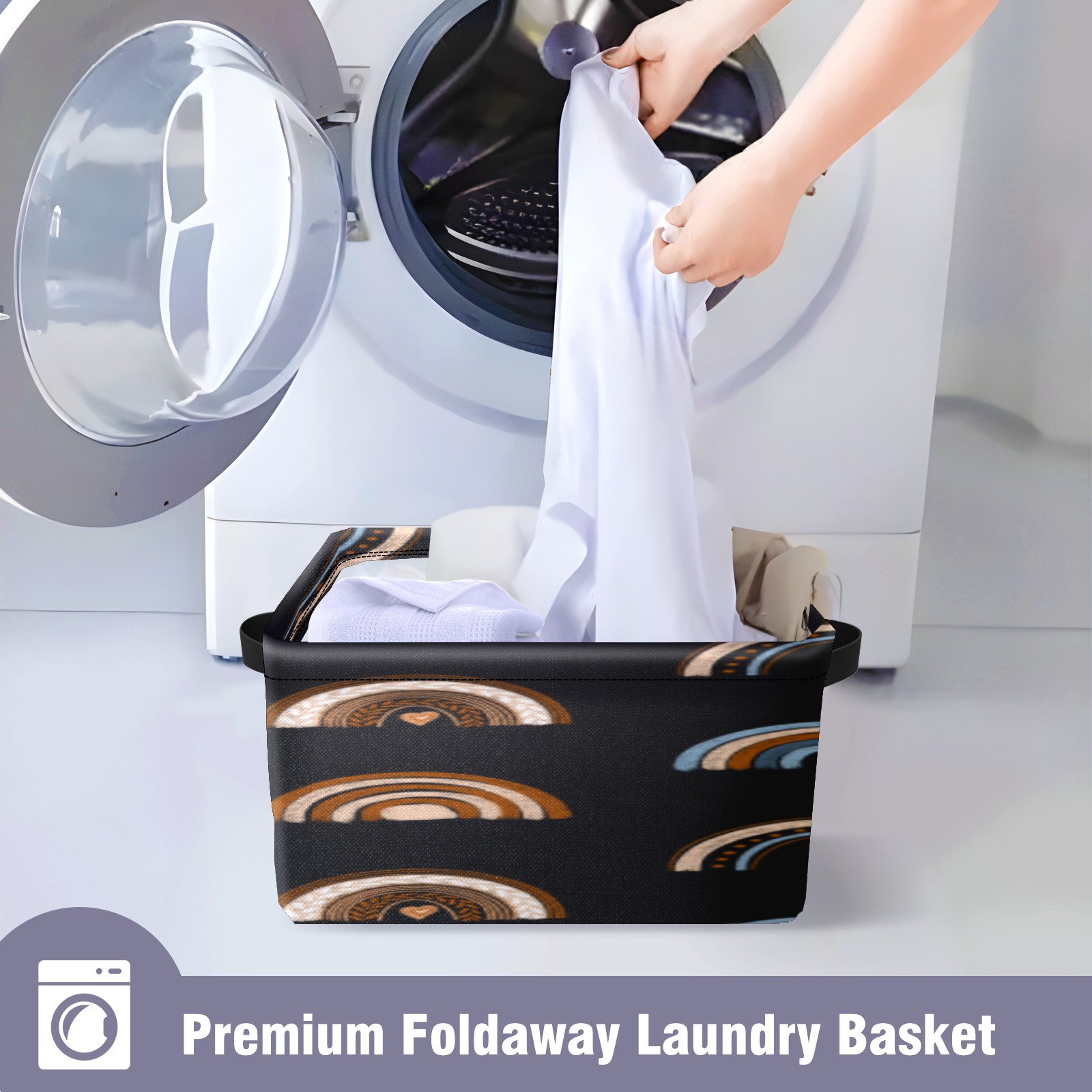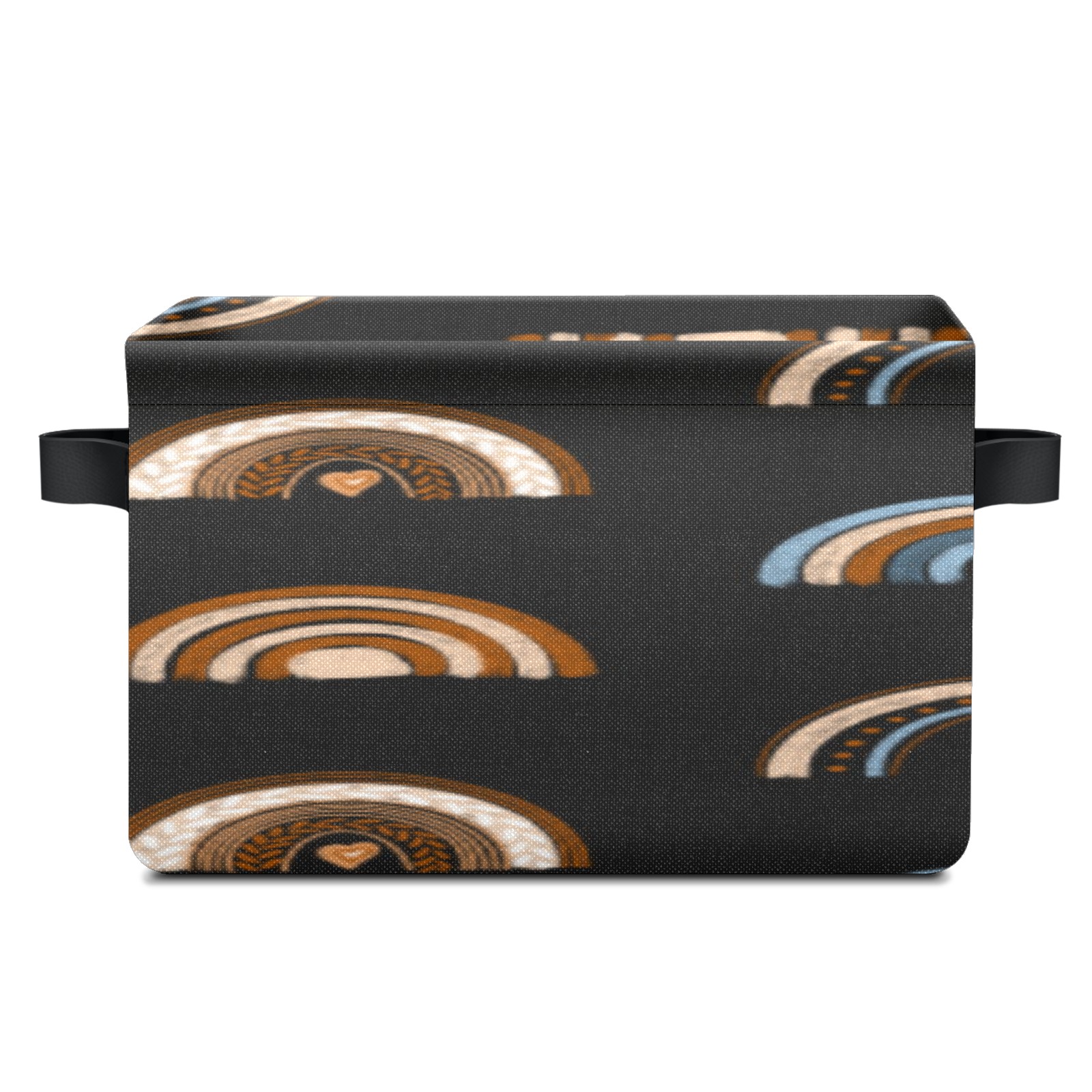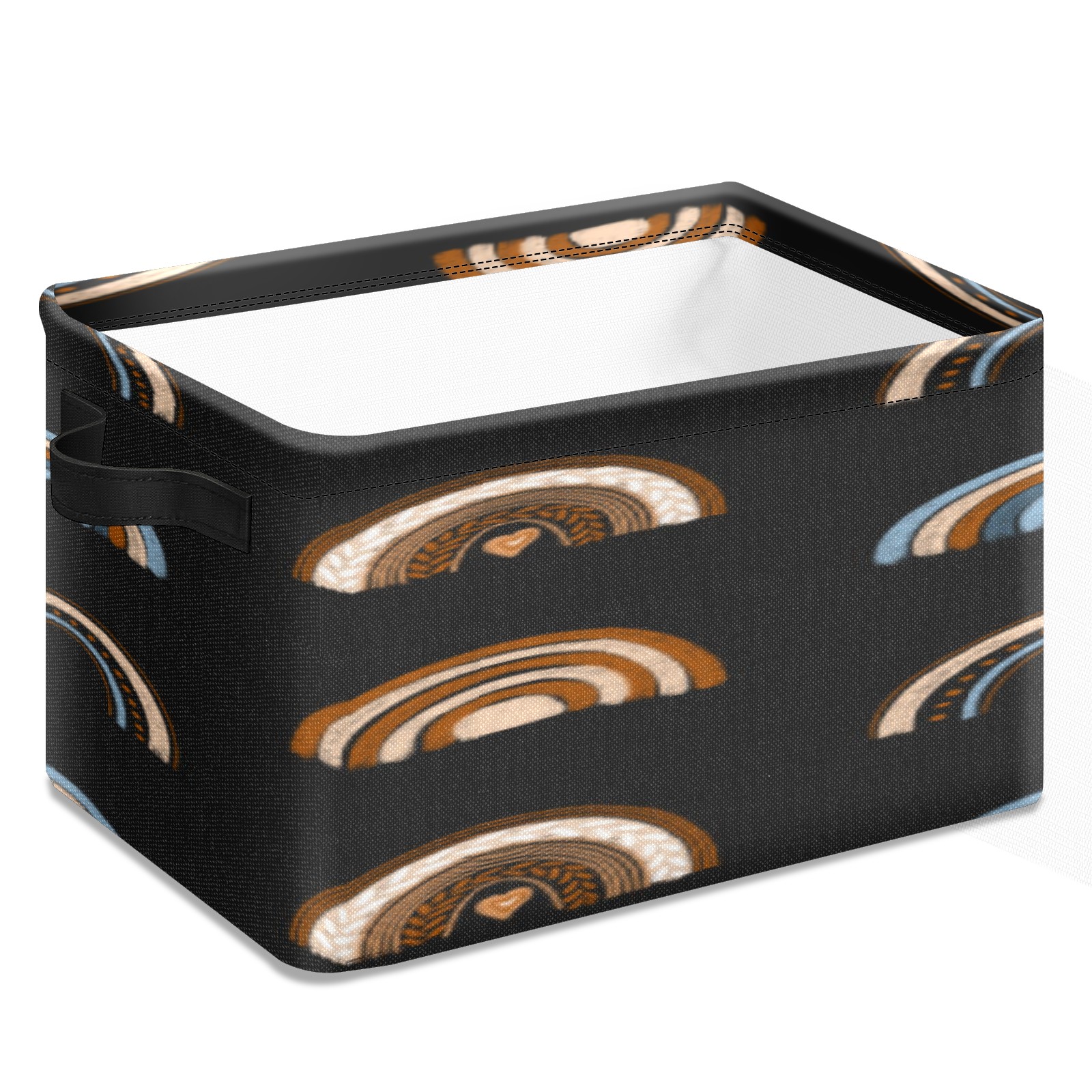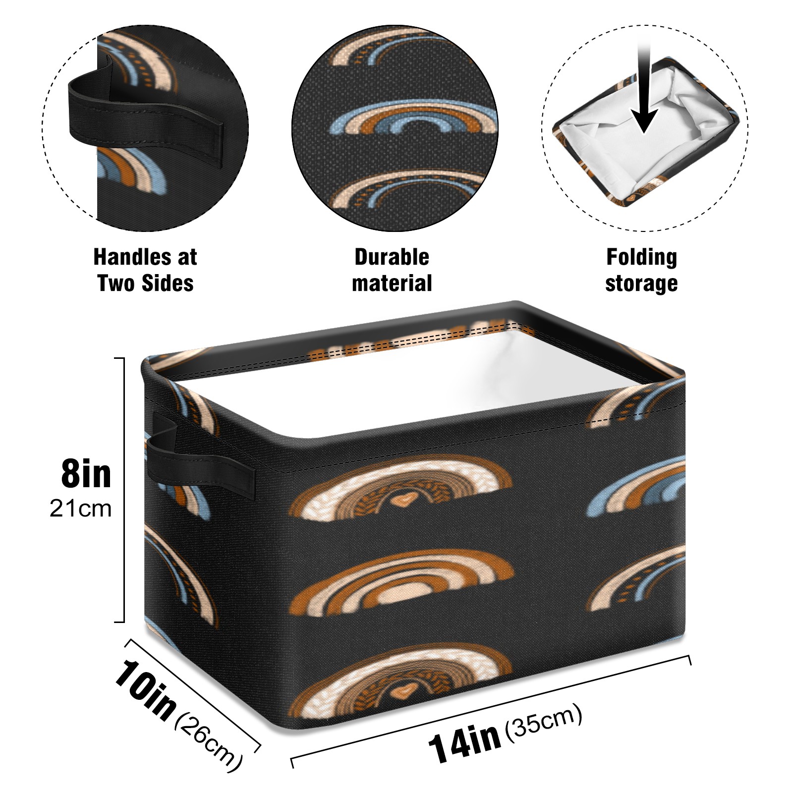 Collapsible 600D Oxford Storage Basket with Rainbow Ethnic Boho - Metal Frame 10"x14"x8" Reinforced Handles, Multi-Purpose Organizer