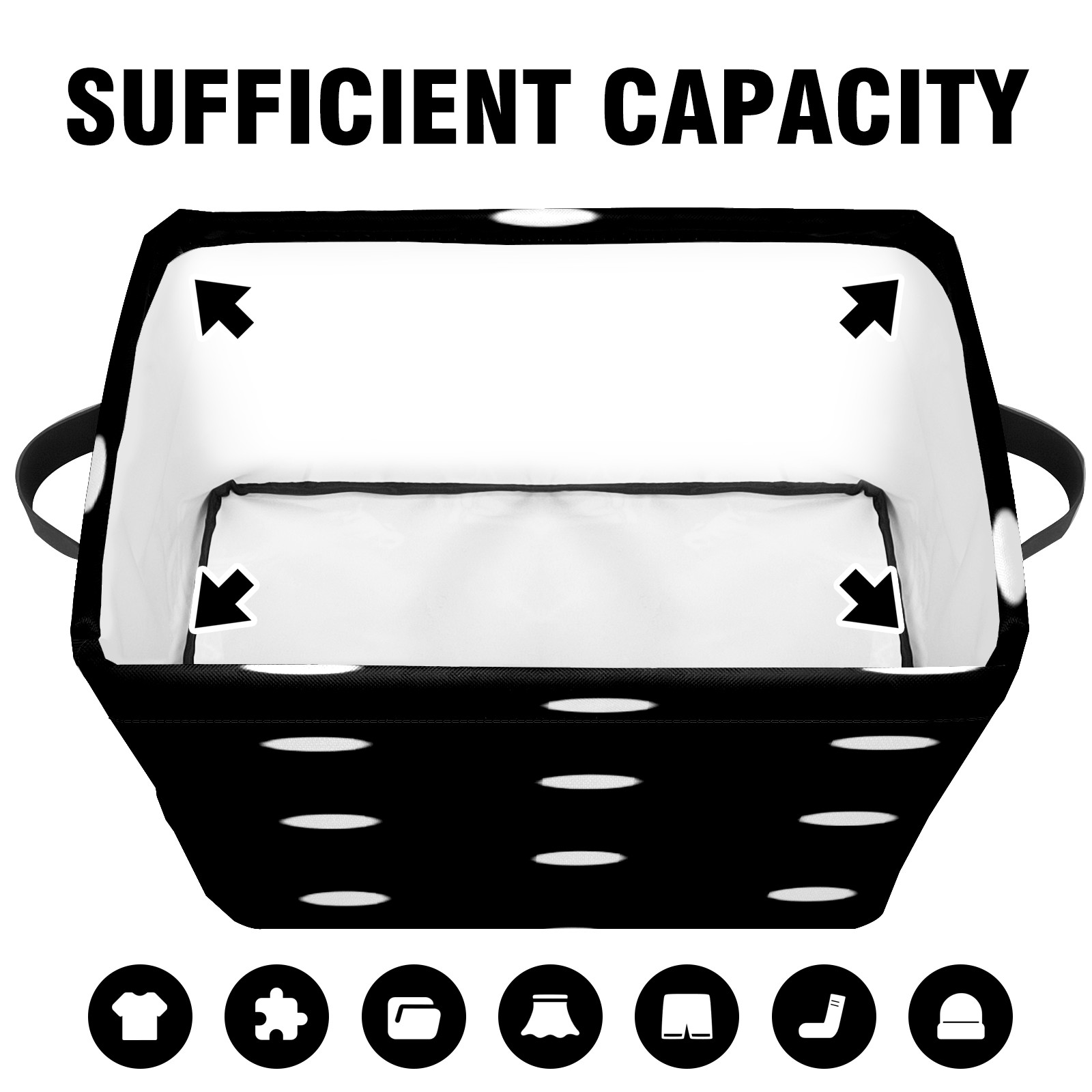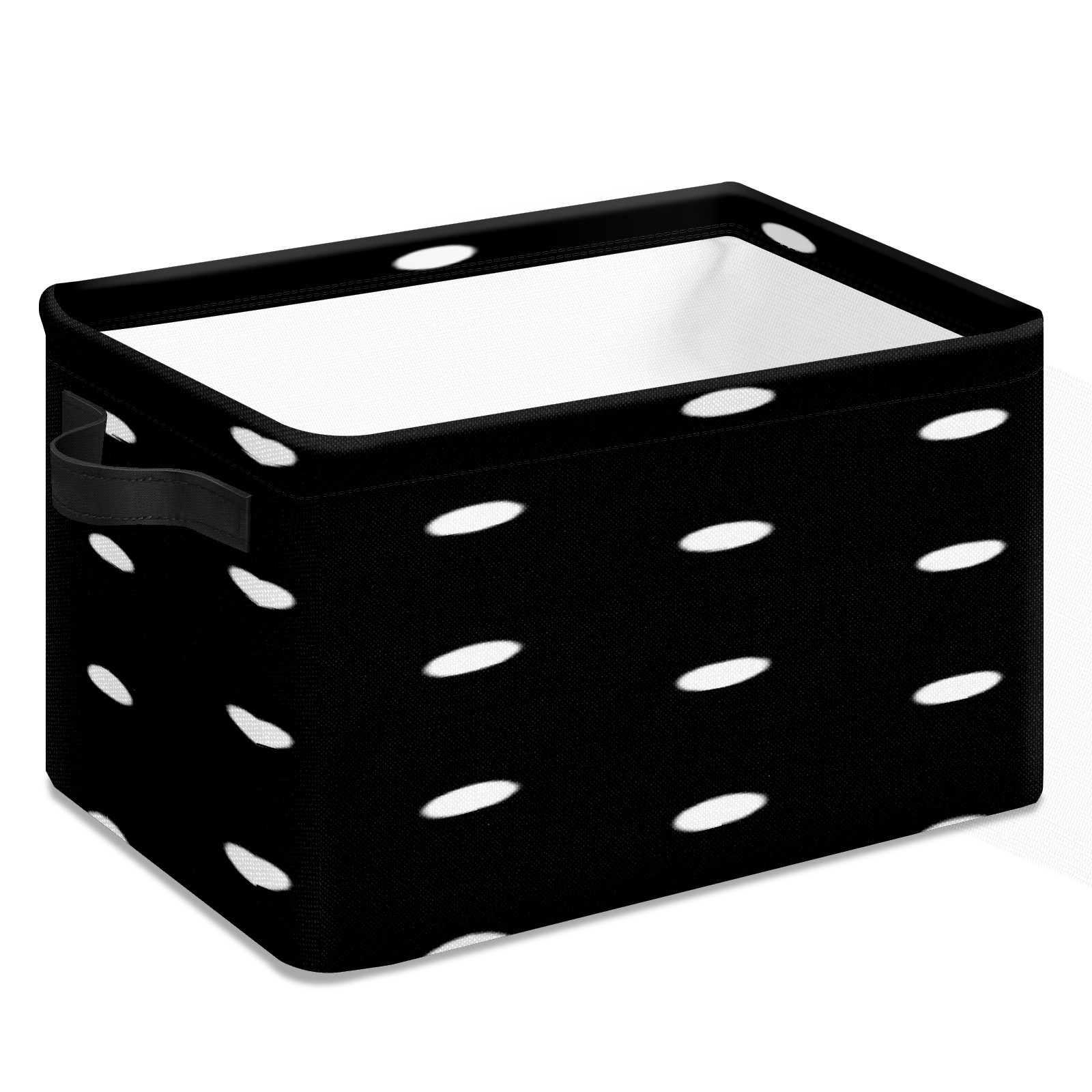 Collapsible 600D Oxford Storage Basket with White Polka Dot Black Background - Metal Frame 10"x14"x8" Reinforced Handles, Multi-Purpose Organizer