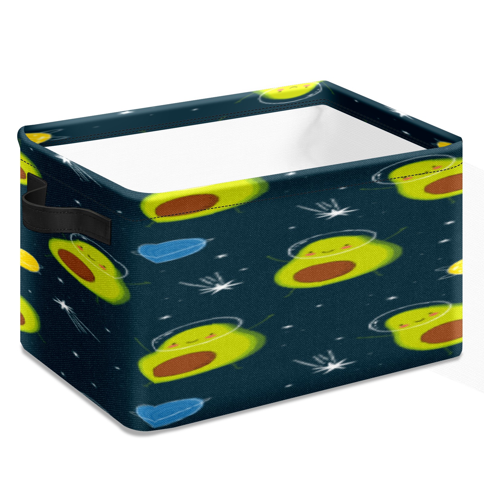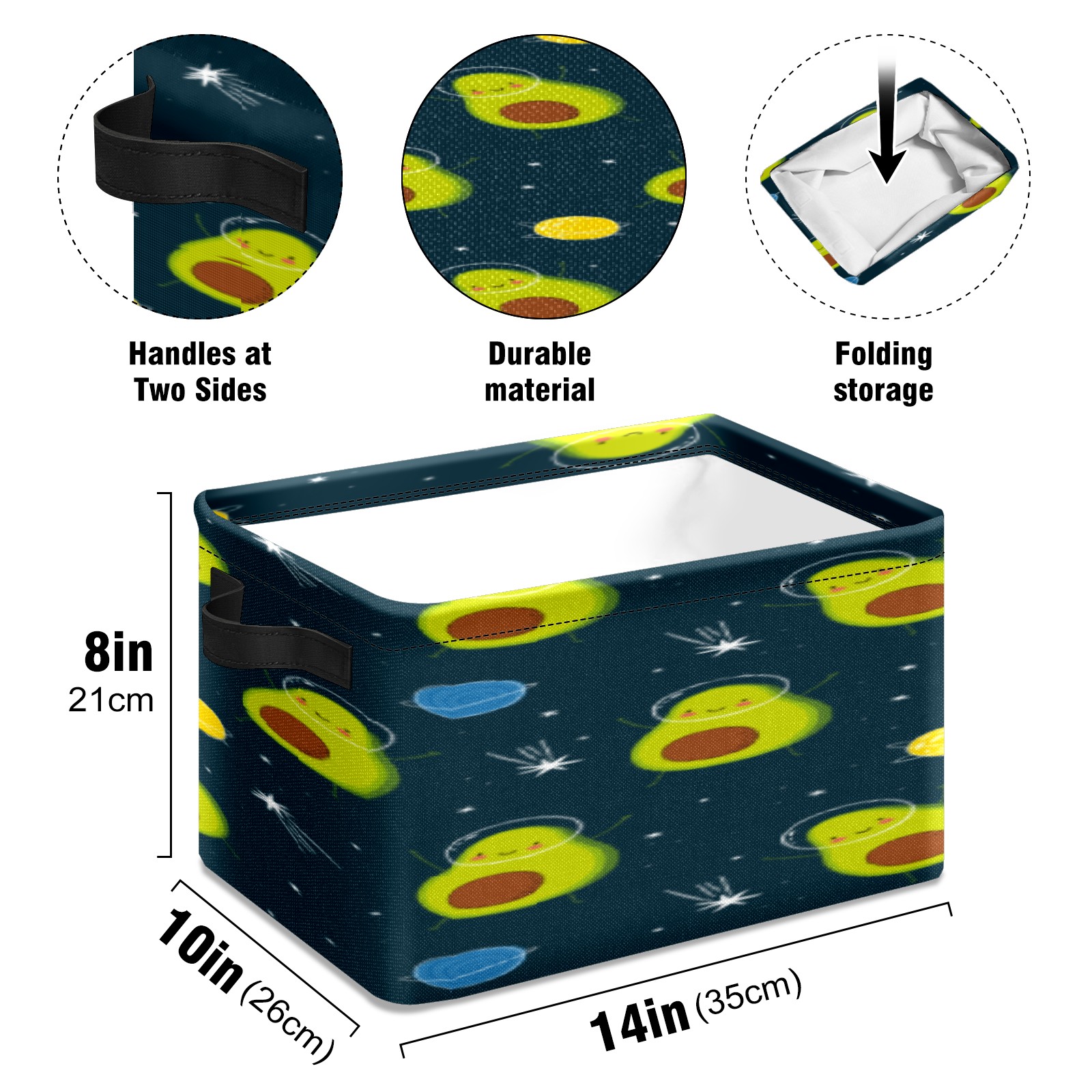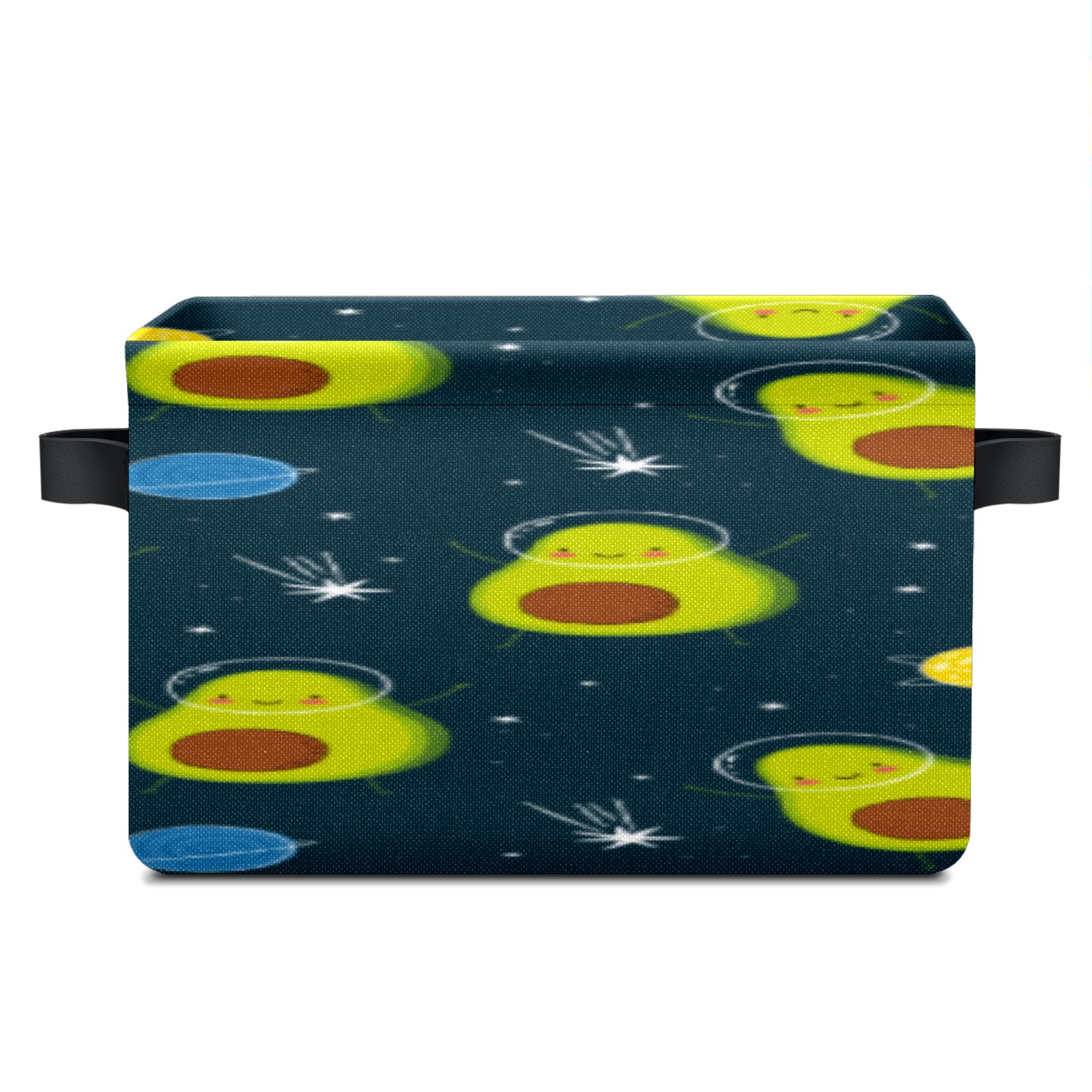 Collapsible 600D Oxford Storage Basket with Cute-Avocado-Cartoon-Space - Metal Frame 10"x14"x8" Reinforced Handles, Multi-Purpose Organizer