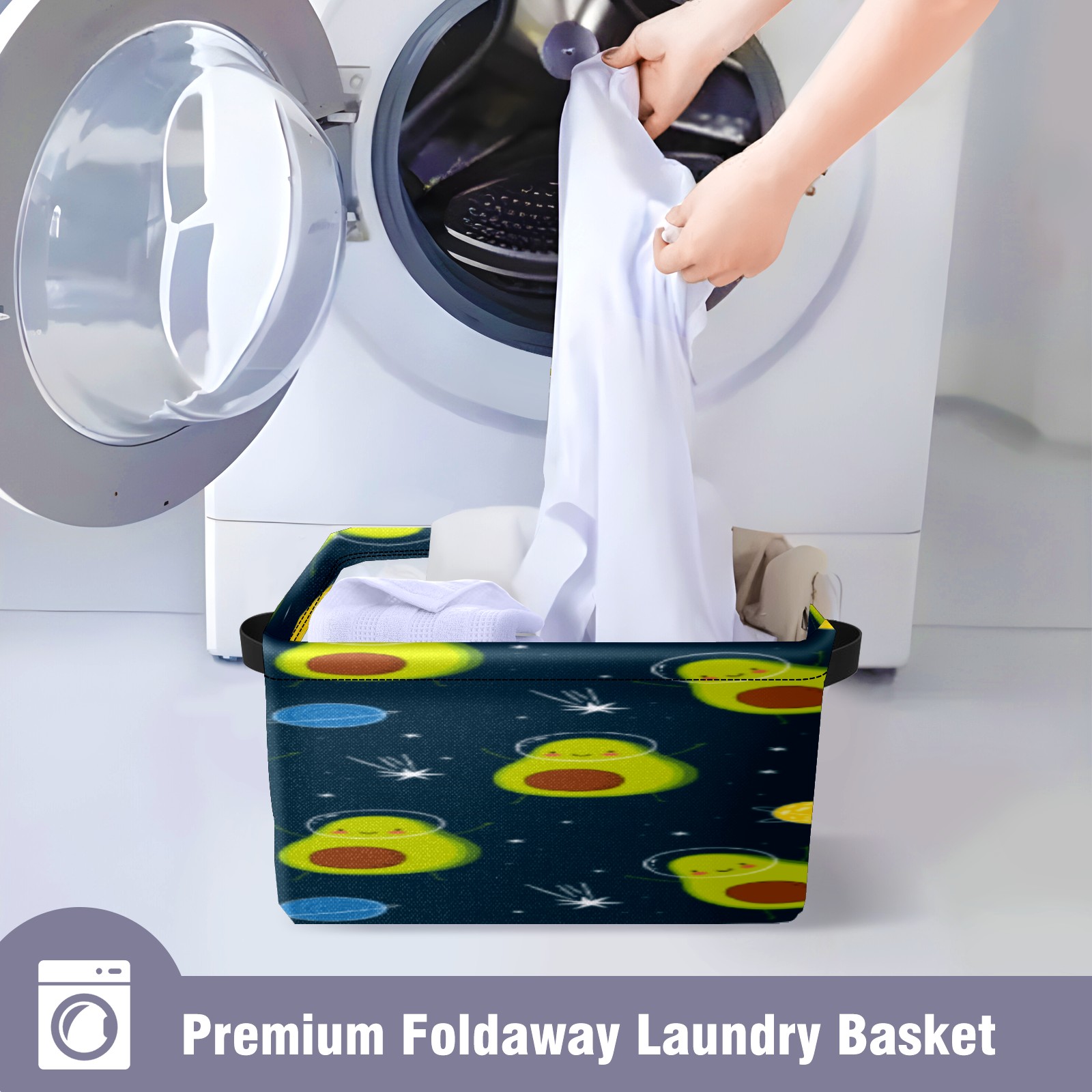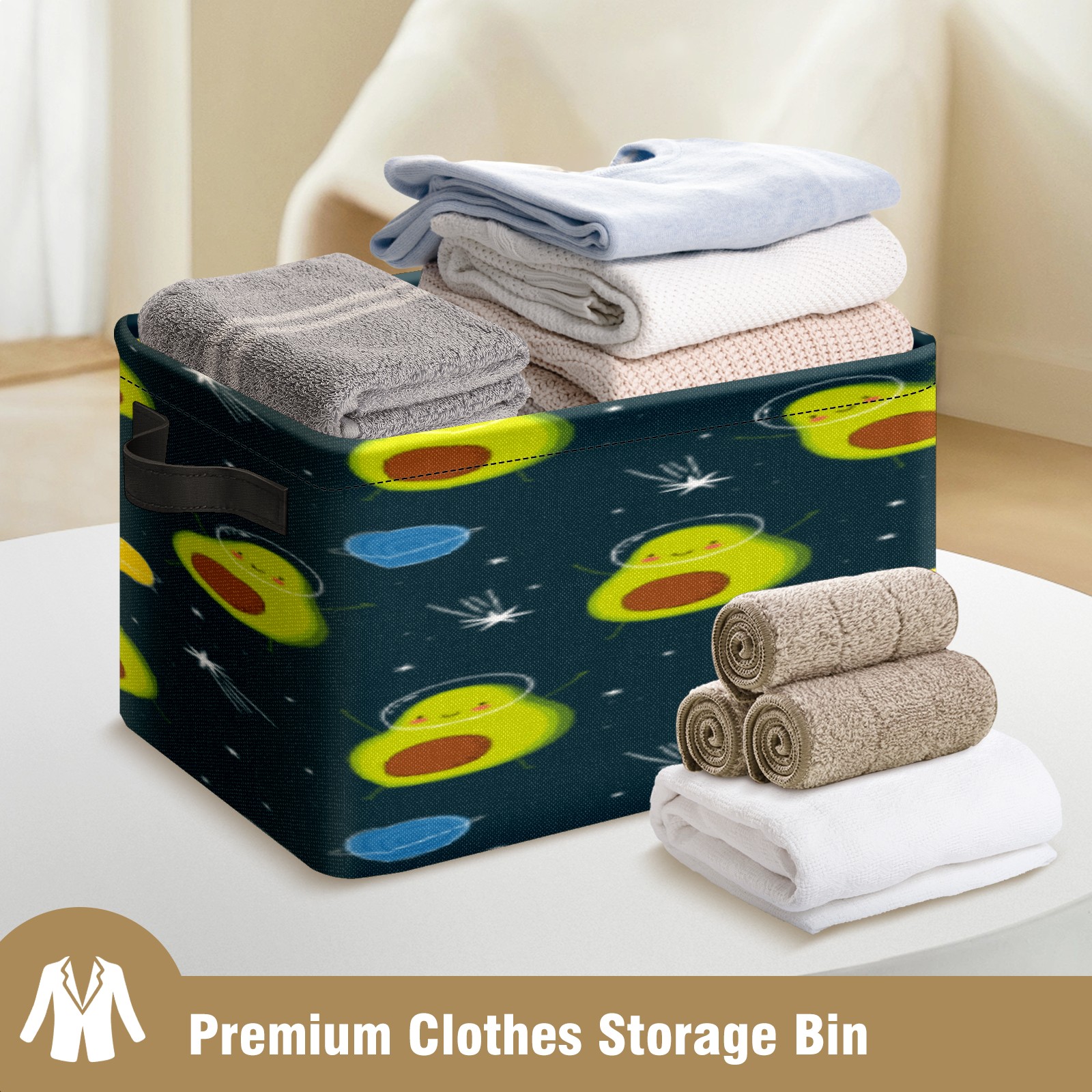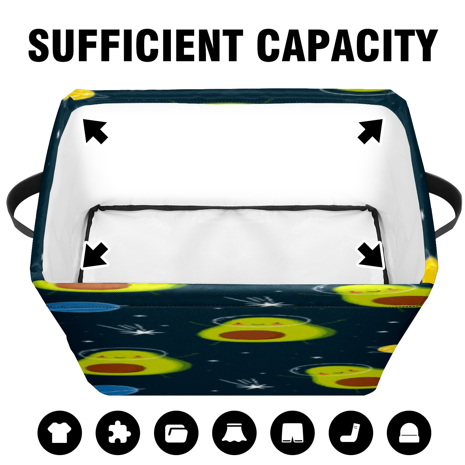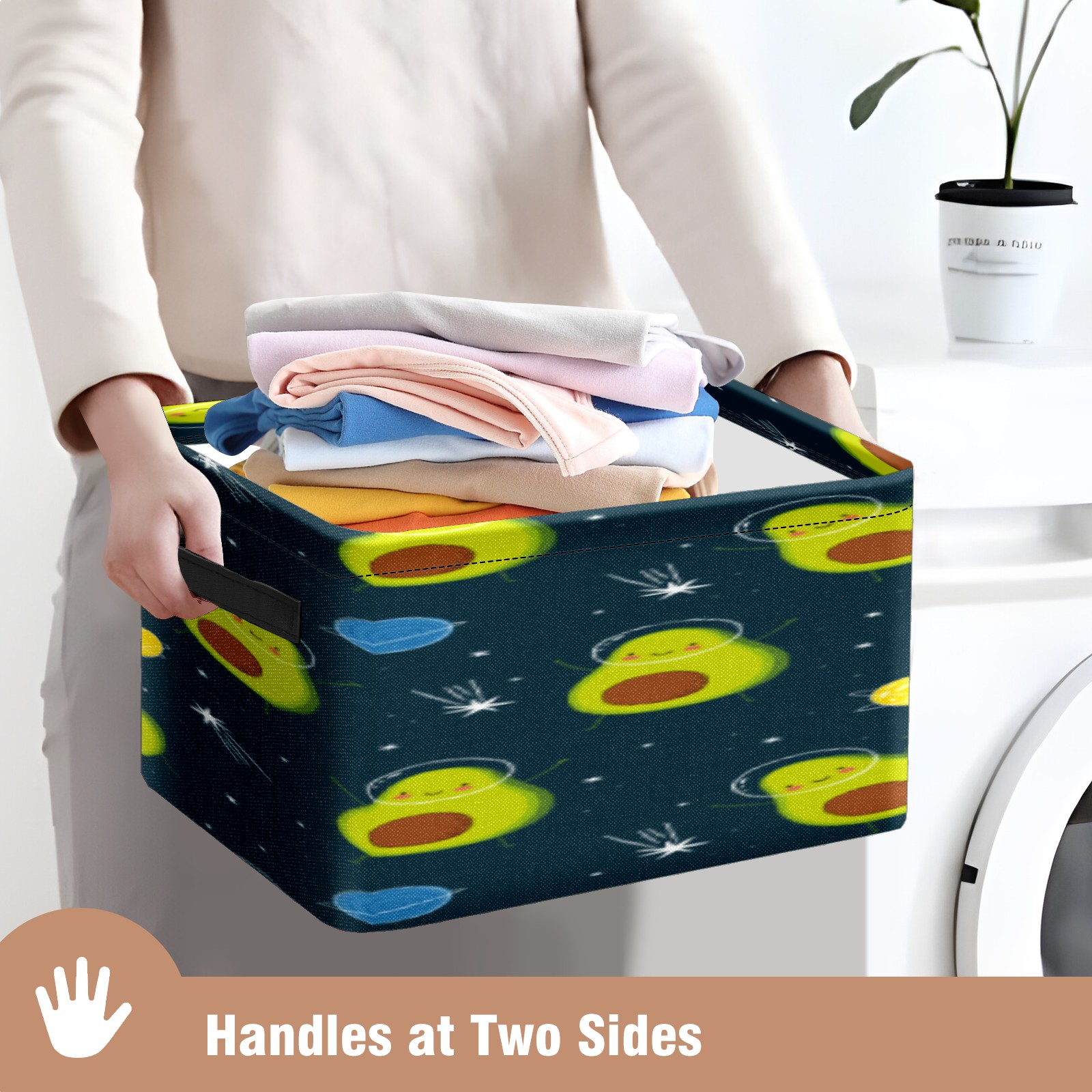Collapsible 600D Oxford Storage Basket with Cute-Avocado-Cartoon-Space - Metal Frame 10"x14"x8" Reinforced Handles, Multi-Purpose Organizer