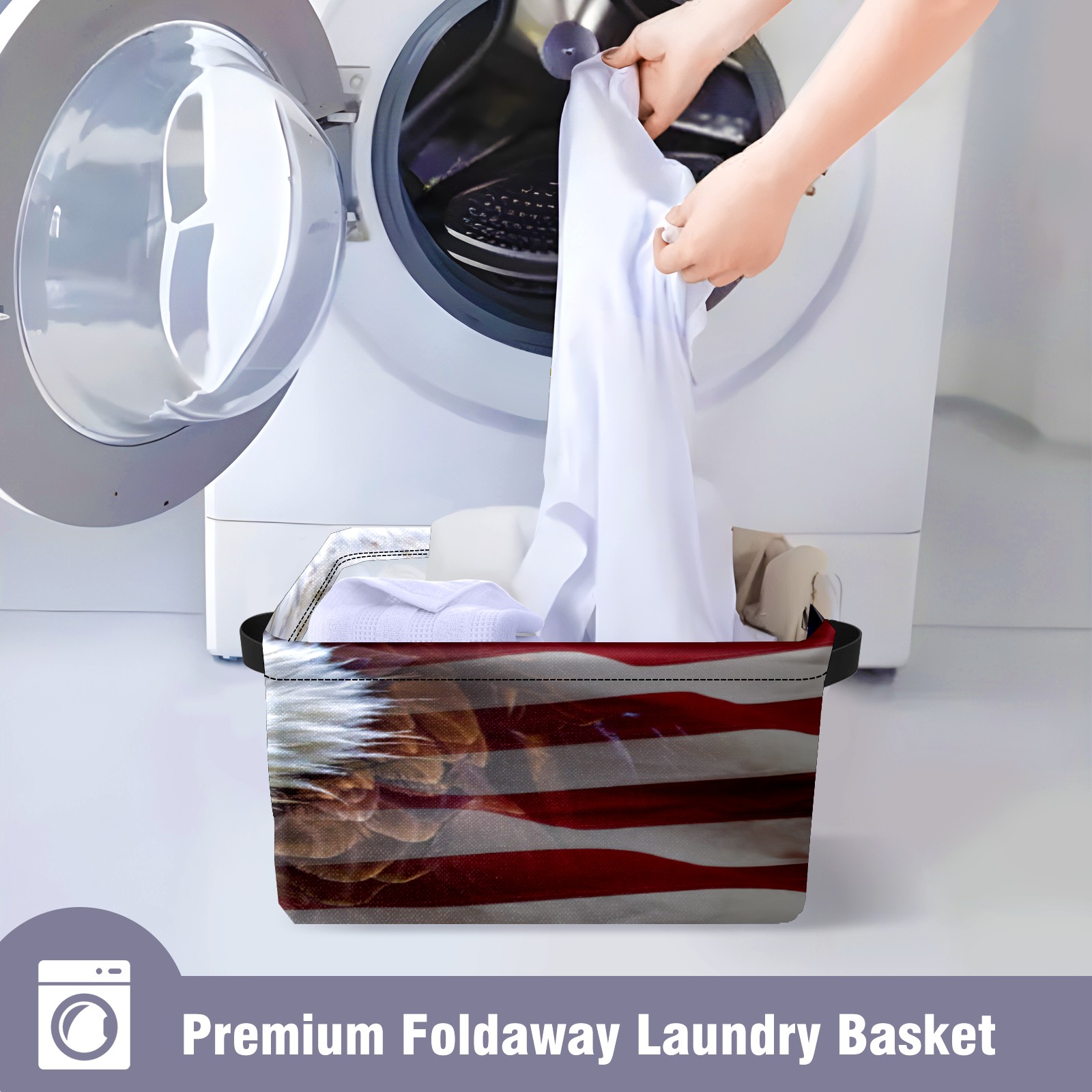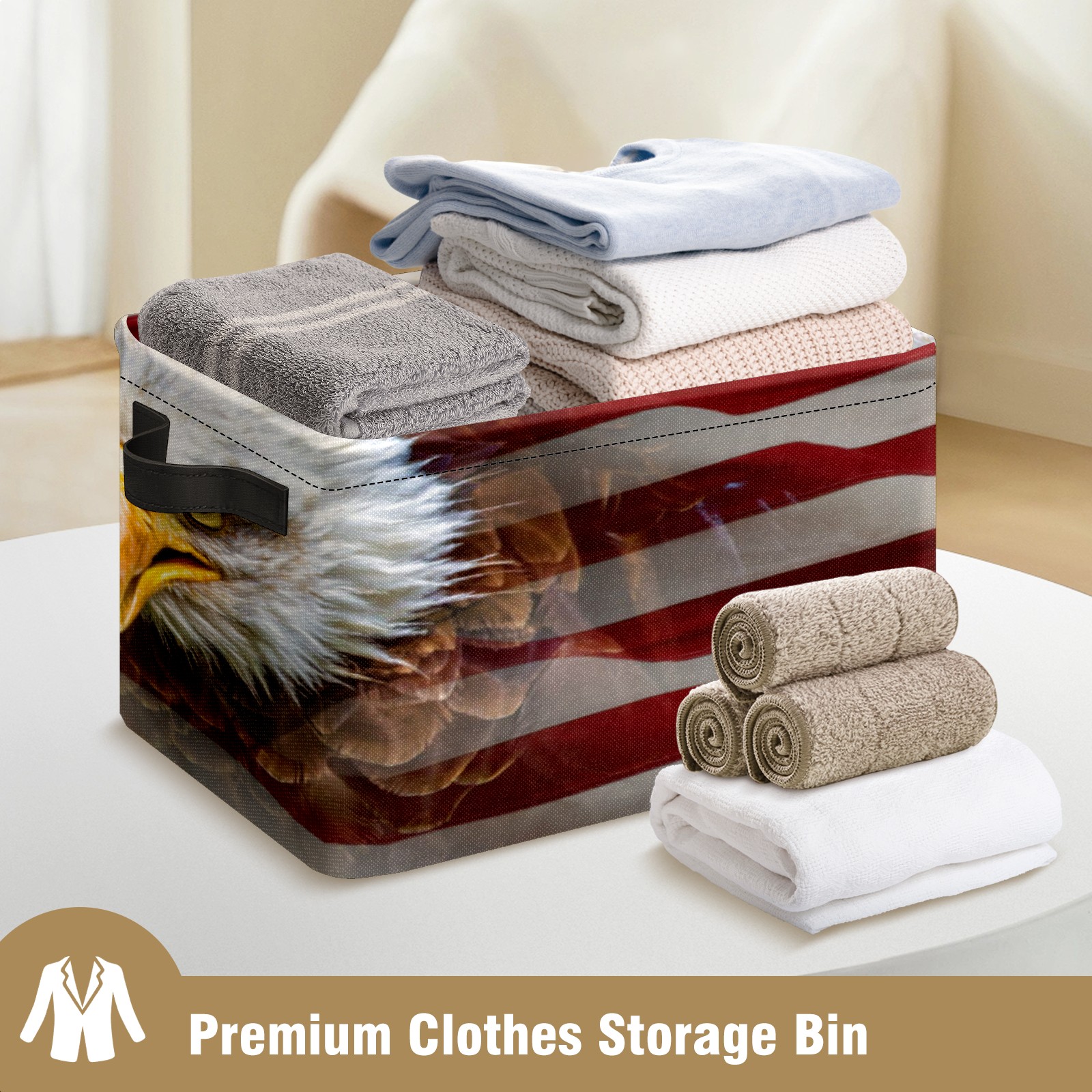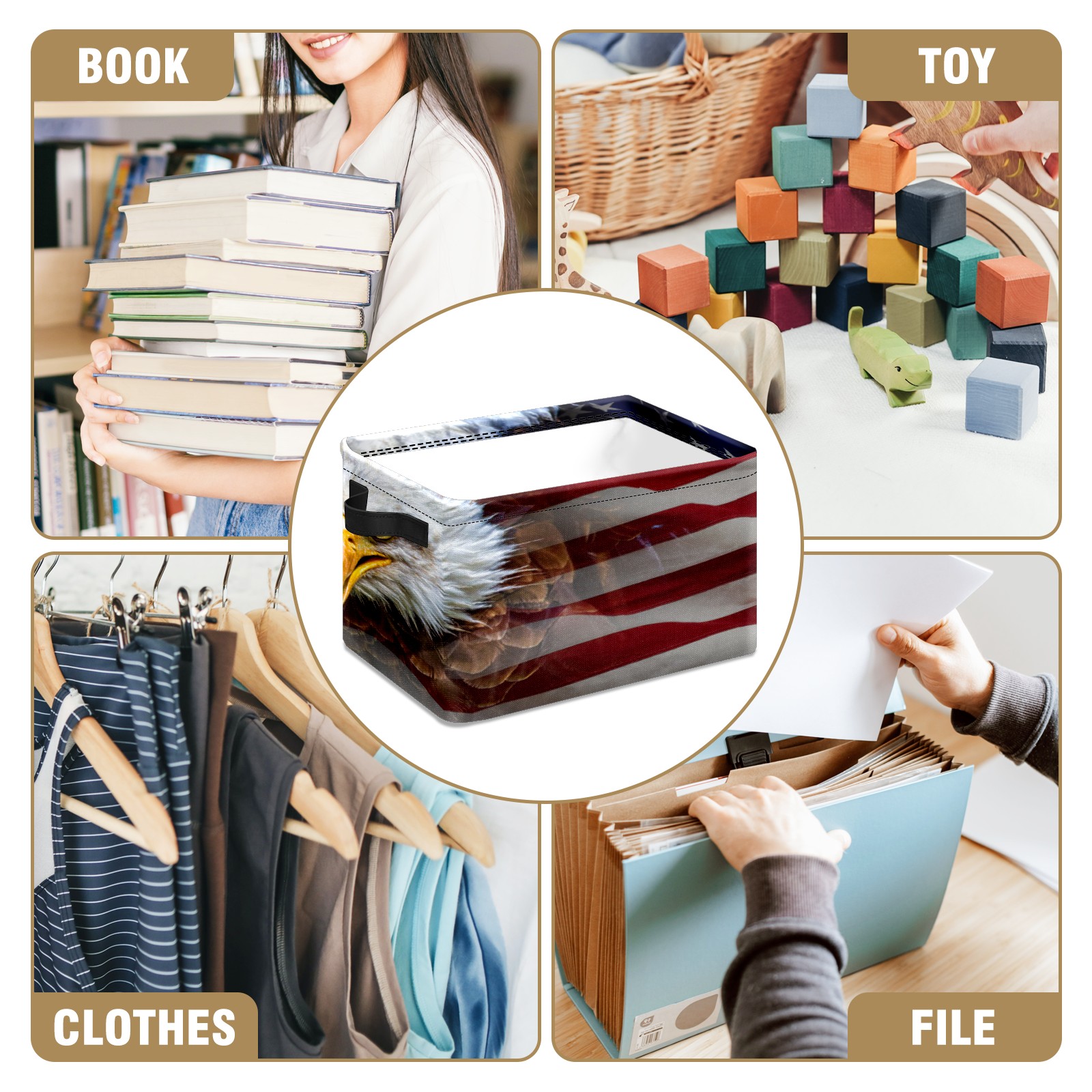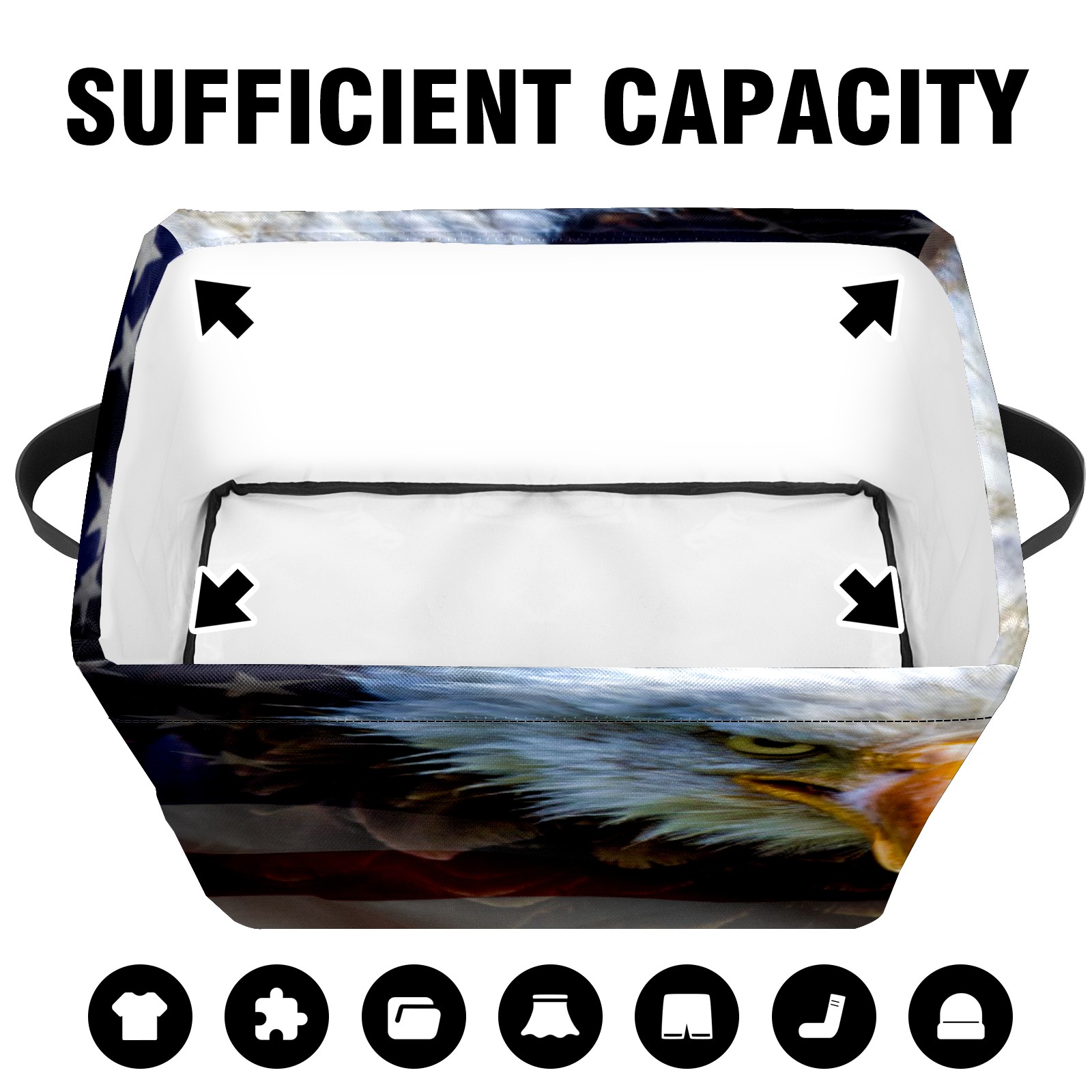 Collapsible 600D Oxford Storage Basket with American Flag Eagle - Metal Frame 10"x14"x8" Reinforced Handles, Multi-Purpose Organizer