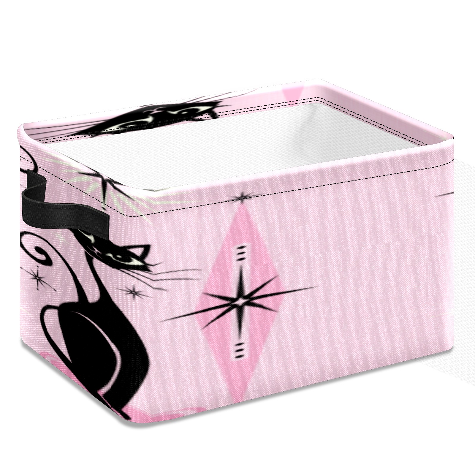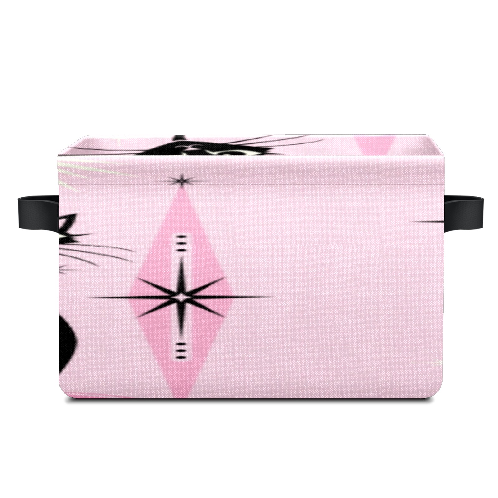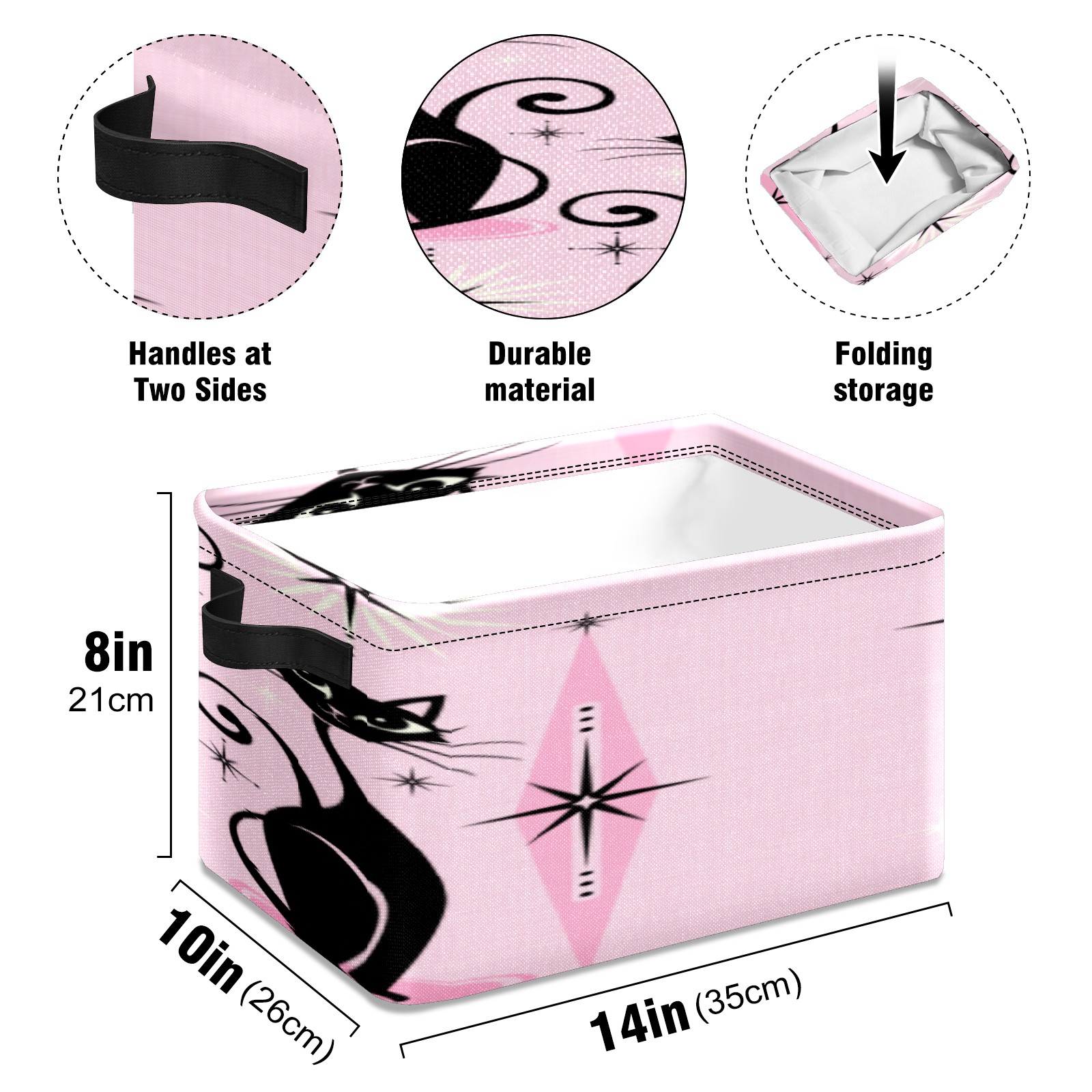 Collapsible 600D Oxford Storage Basket with Pink Romance Mid Century Meow Retro Atomic Cats - Metal Frame 10"x14"x8" Reinforced Handles, Multi-Purpose Organizer