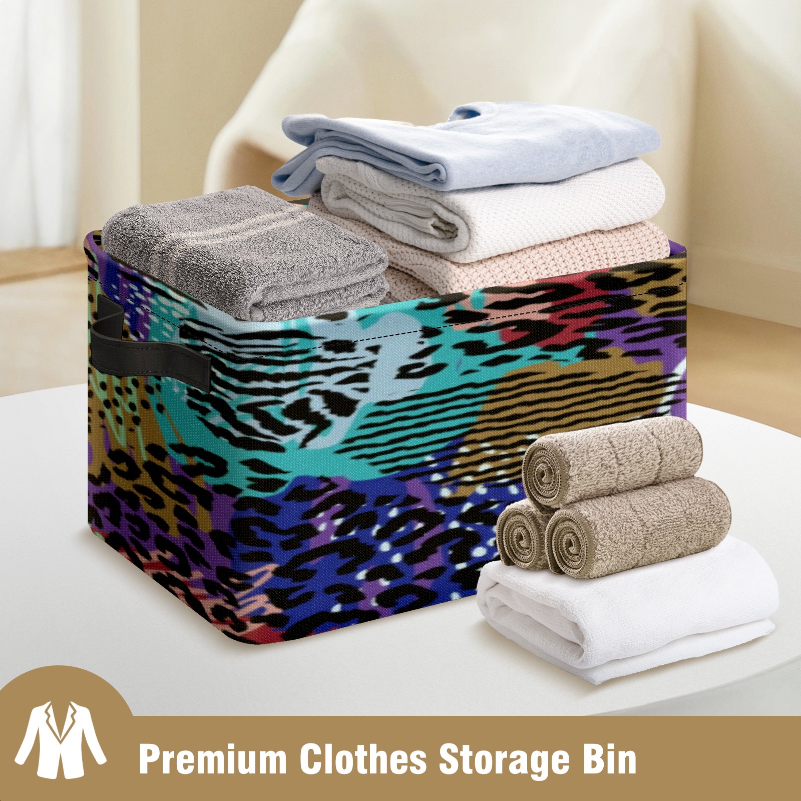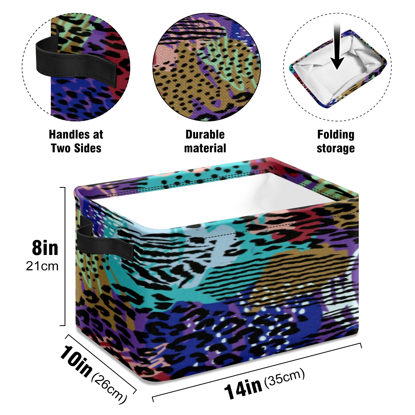 Collapsible 600D Oxford Storage Basket with Abstract-seamless-pattern-with-animal-print-trendy-hand-drawn-textures-vector(noise_scale)(Level1)(x4.000000) - Metal Frame 10"x14"x8" Reinforced Handles, Multi-Purpose Organizer