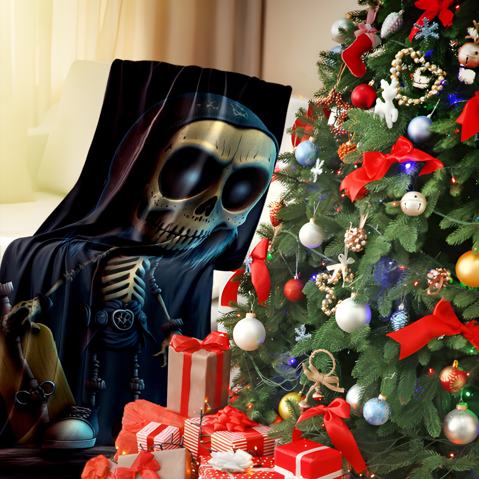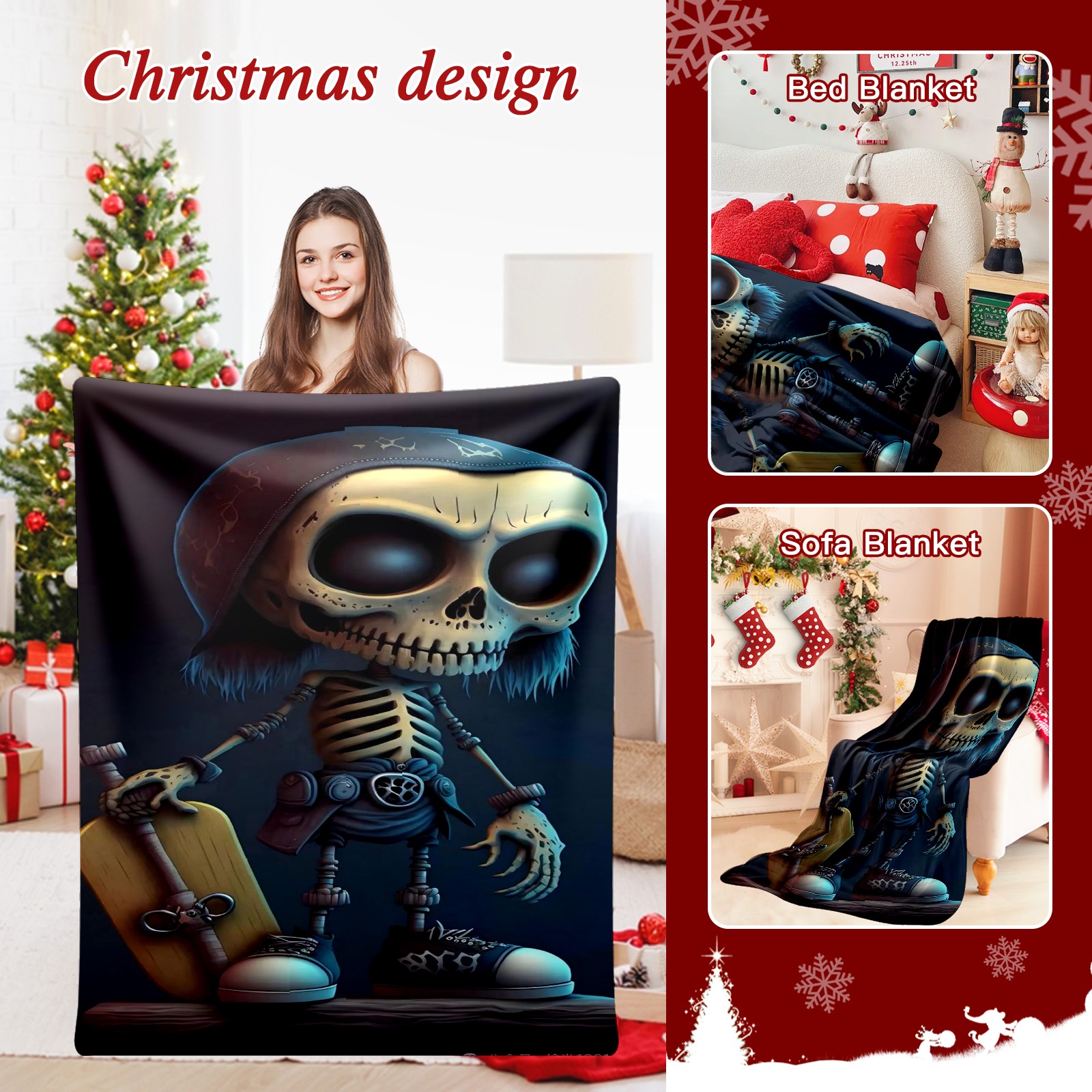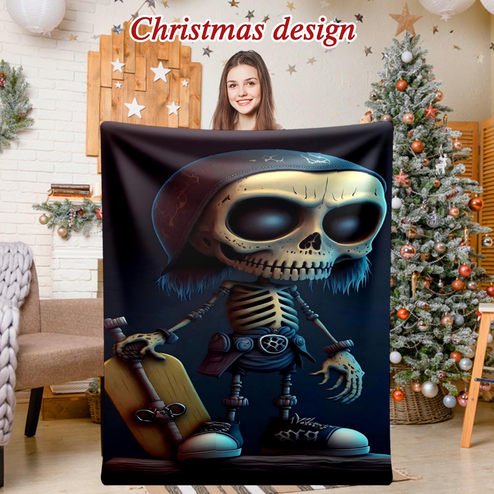 Премиальная фланелевая одеяло Skeleton