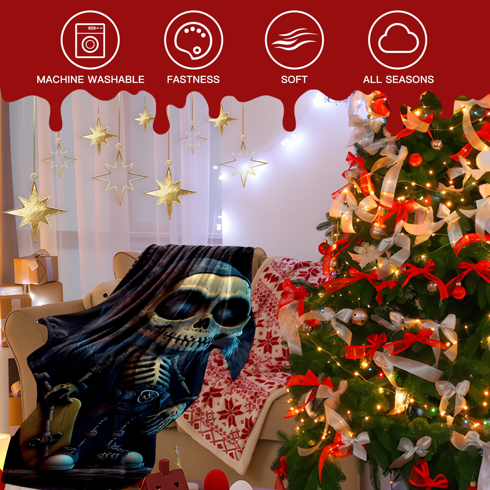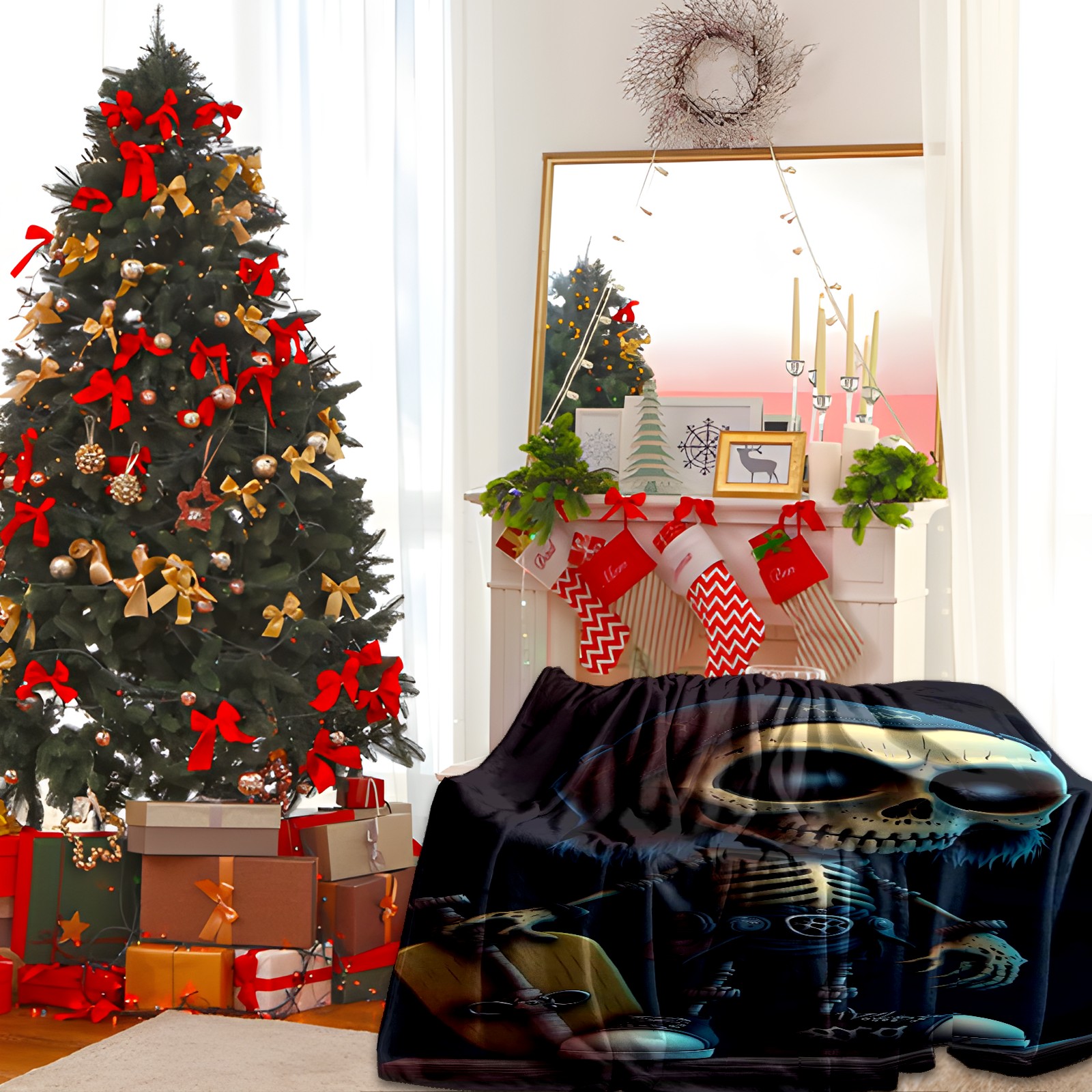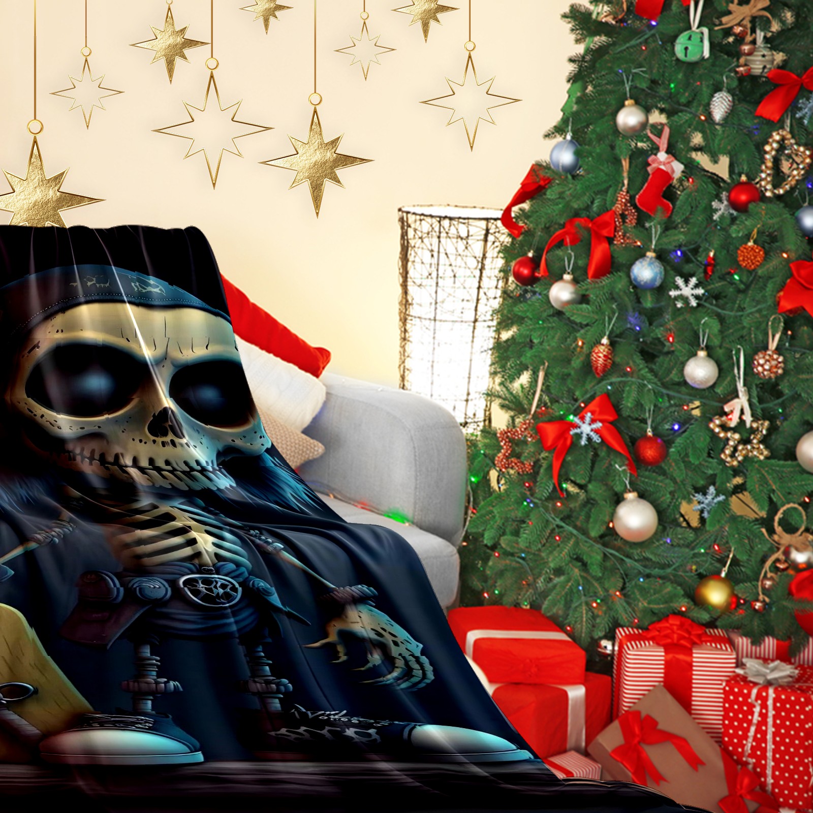Премиальная фланелевая одеяло Skeleton