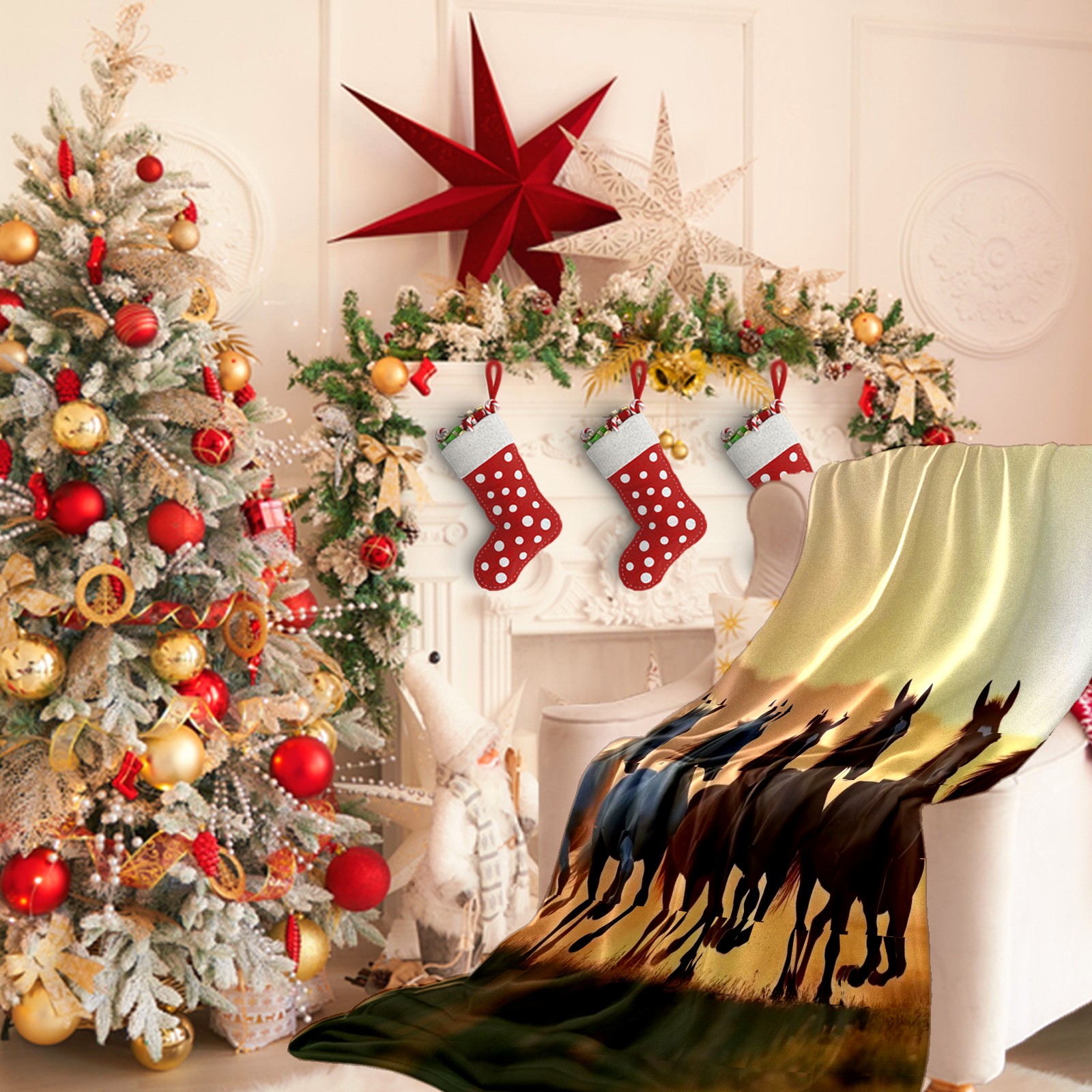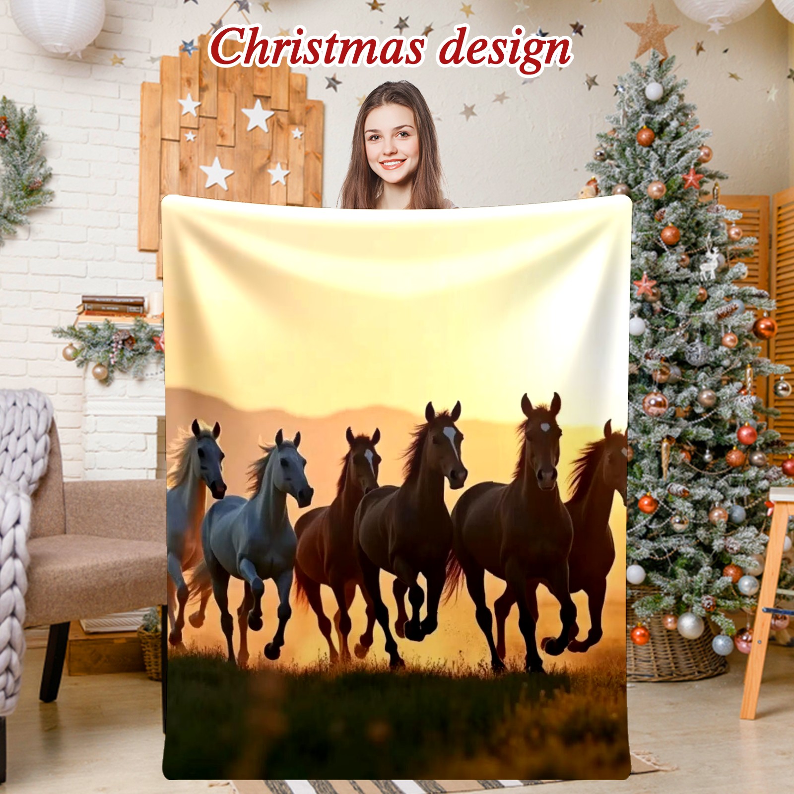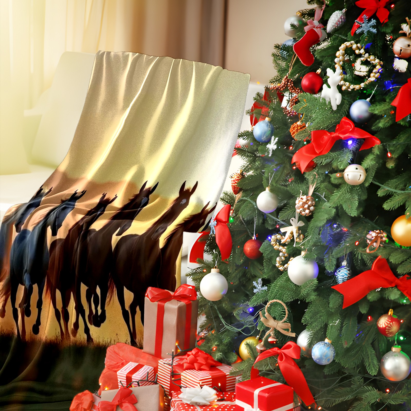 Премиальная фланелевая одеяло Herd Of Horses