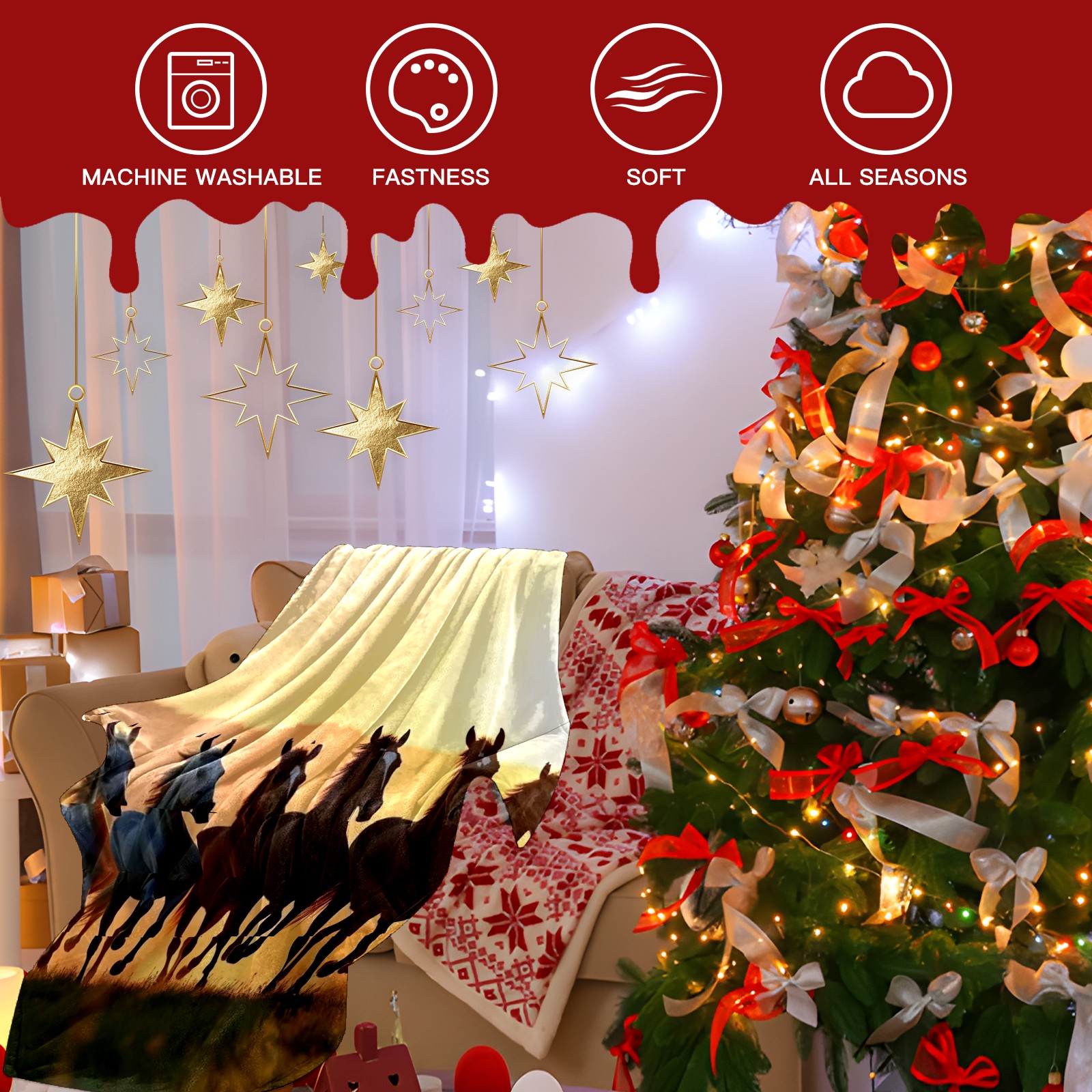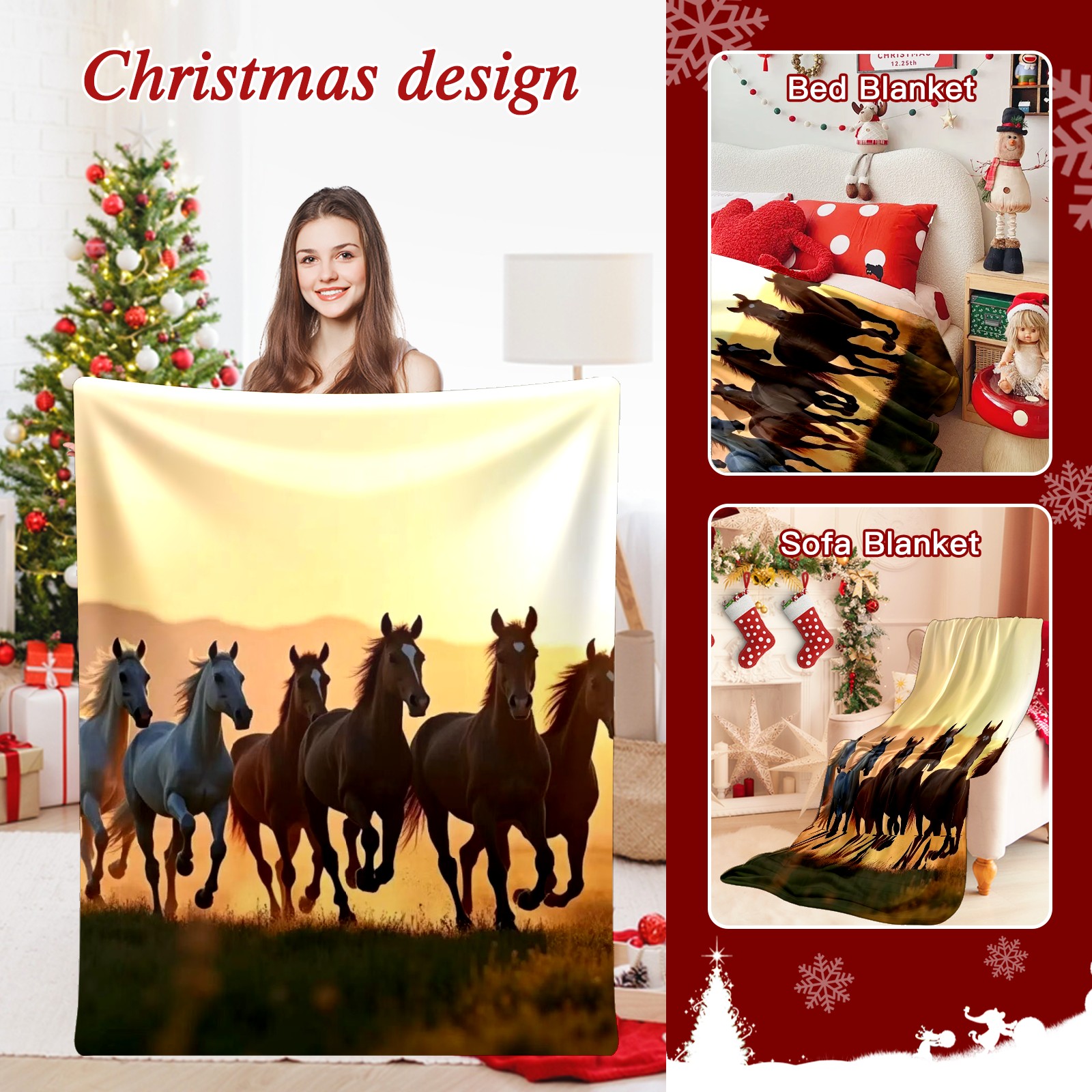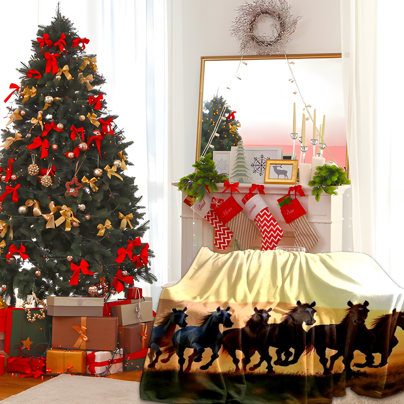 Премиальная фланелевая одеяло Herd Of Horses
