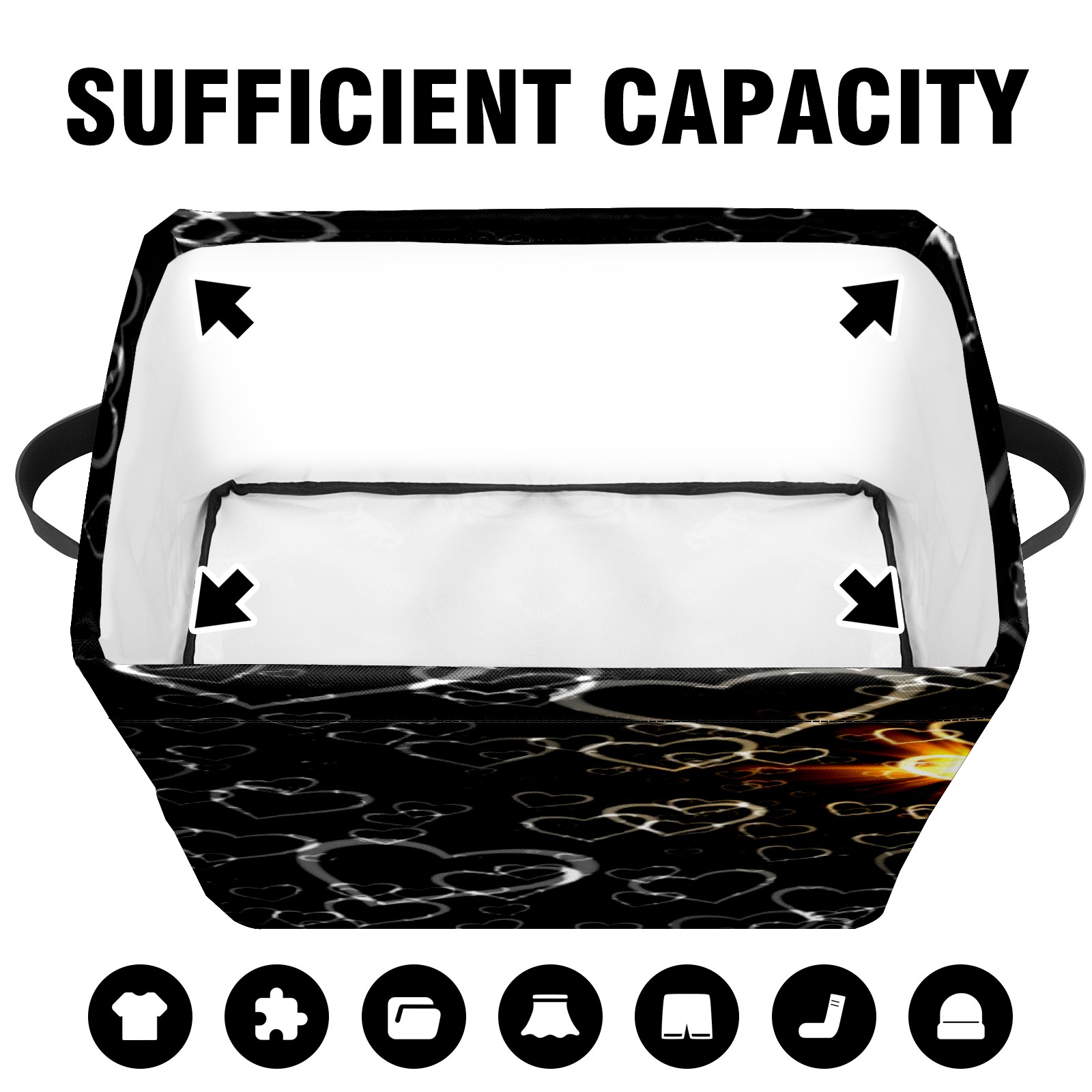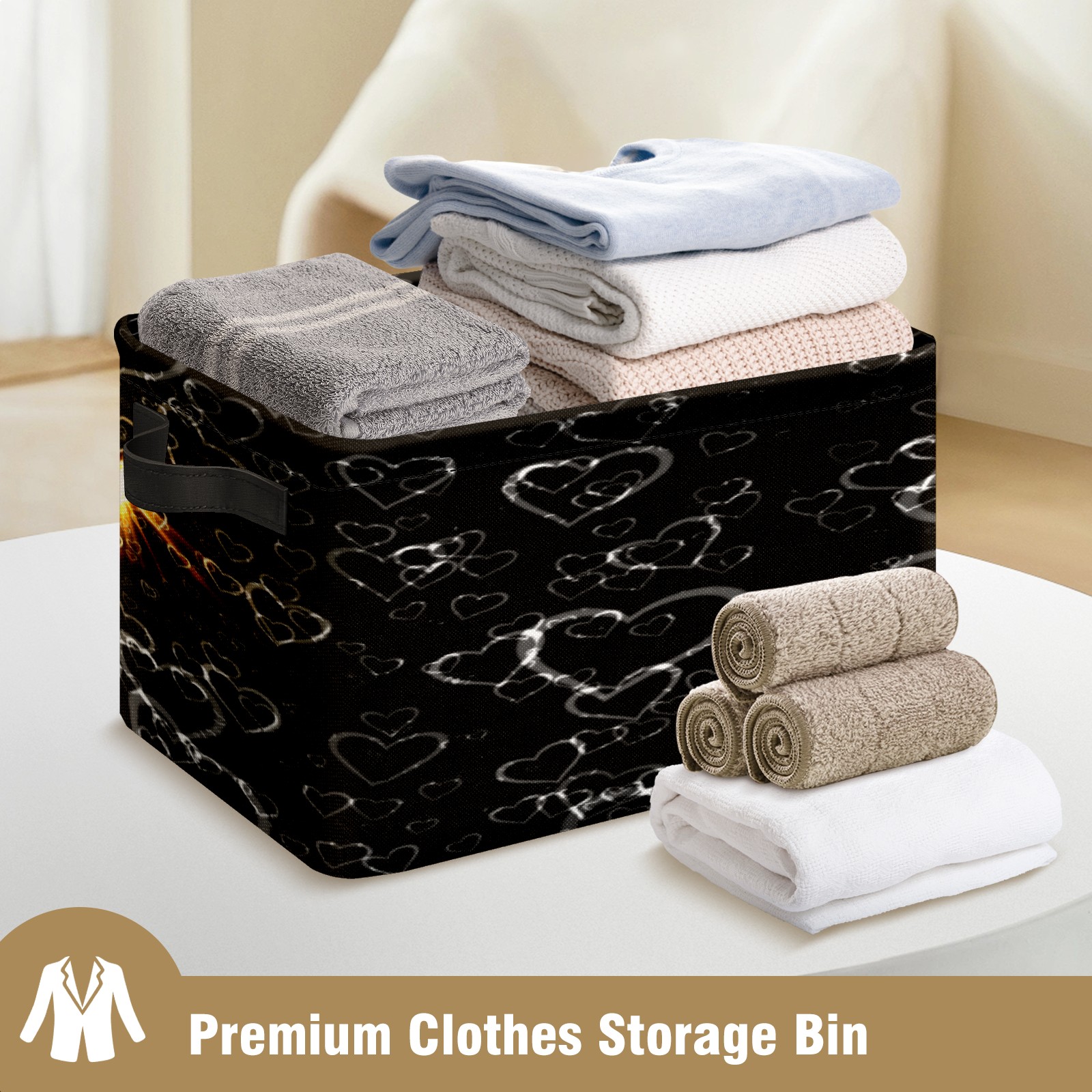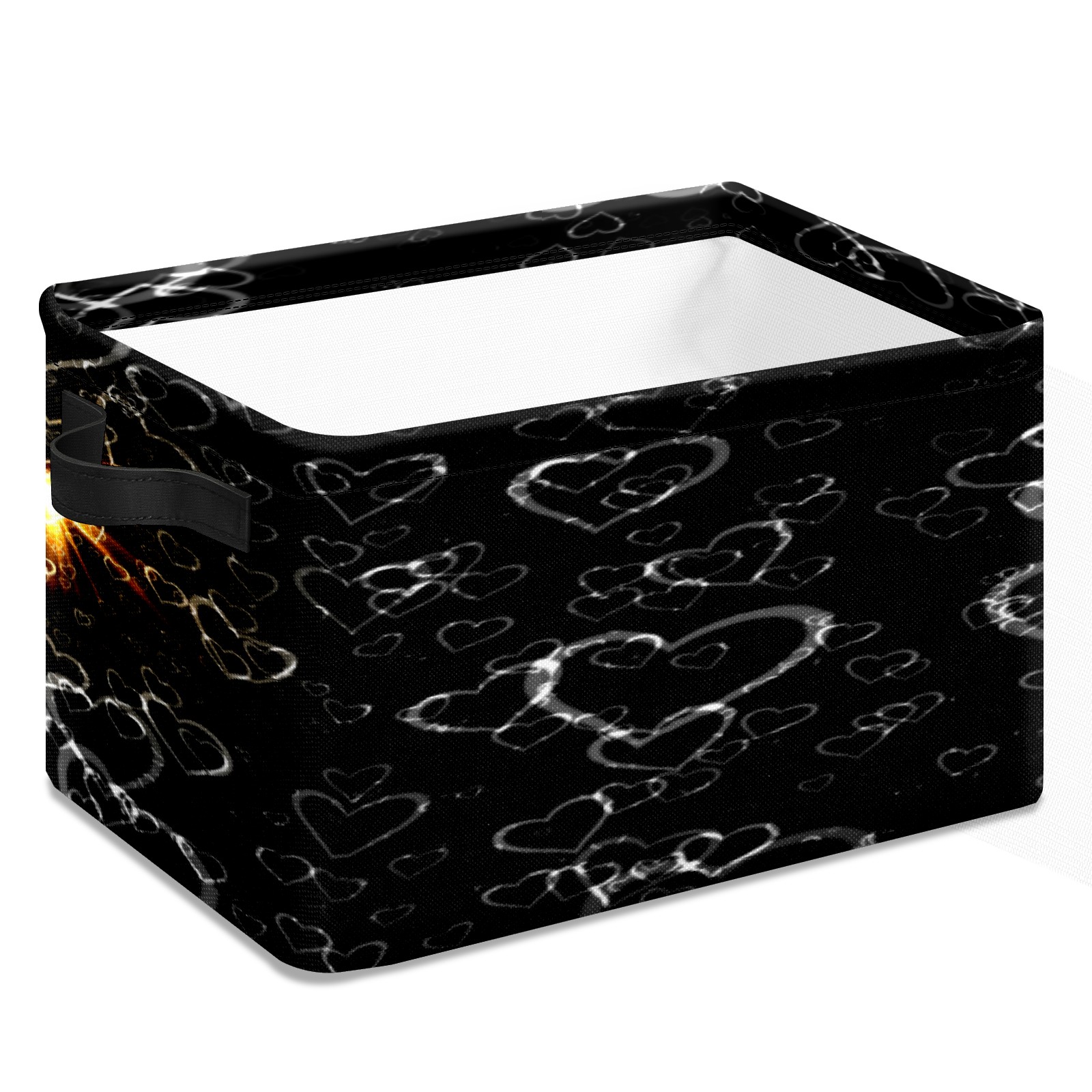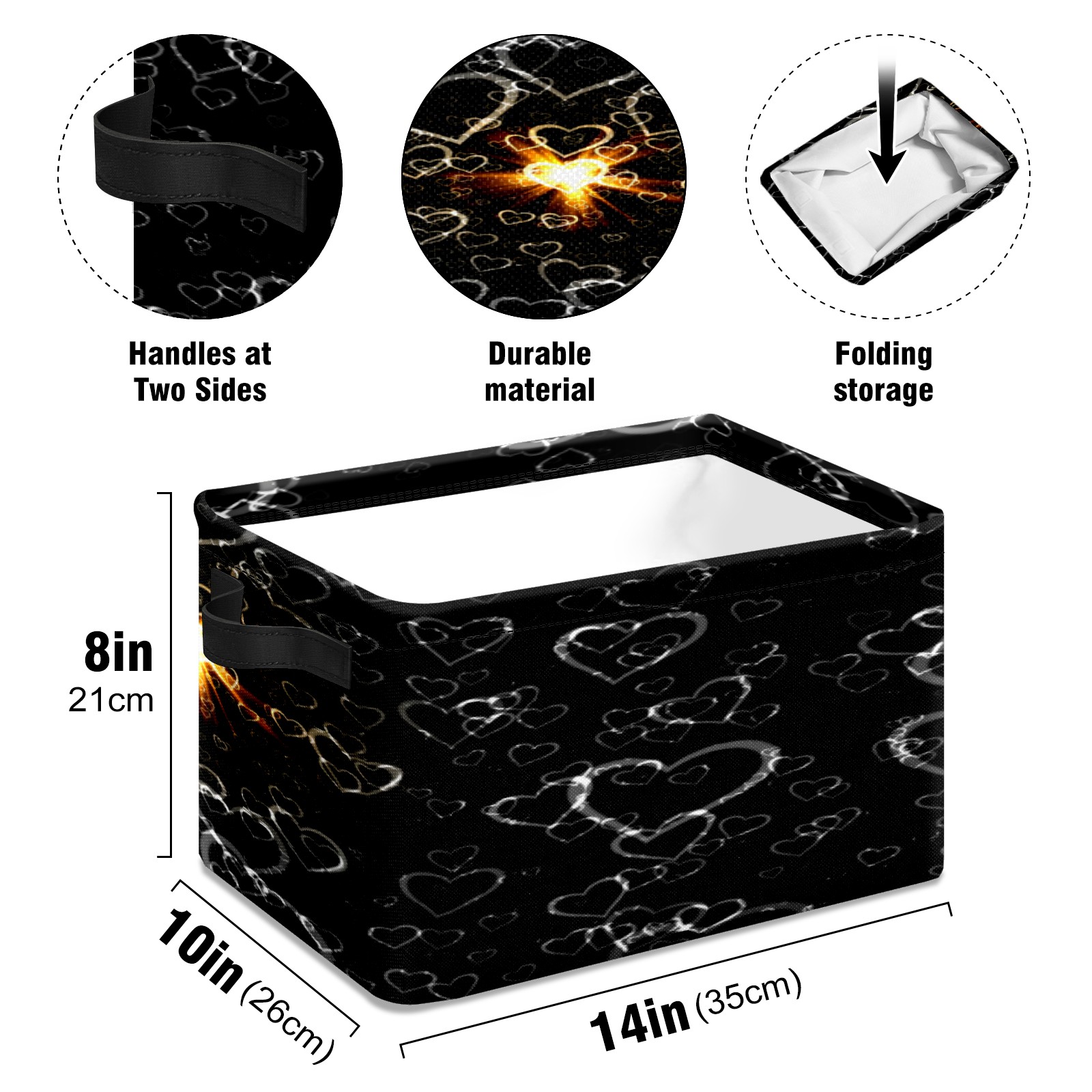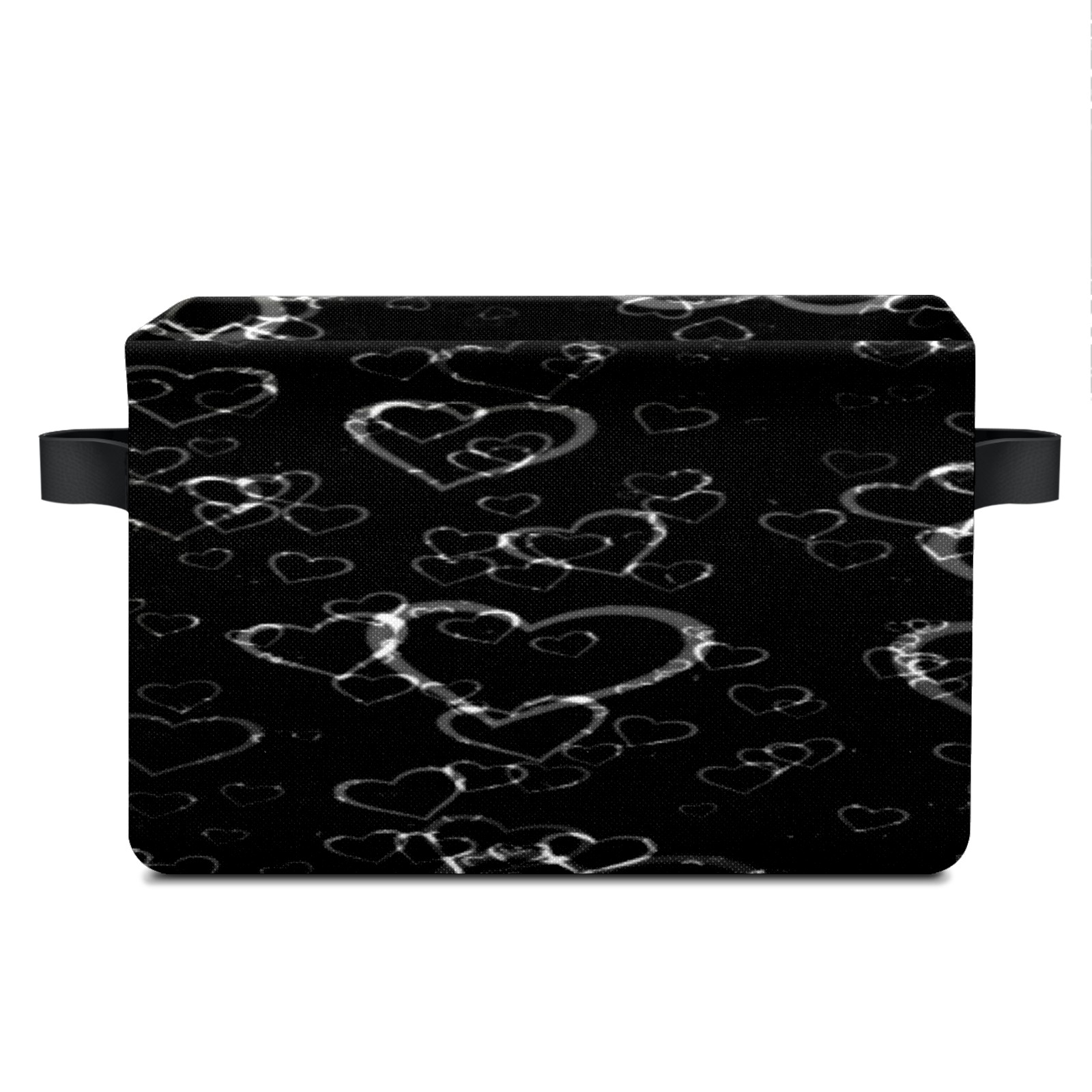 Collapsible 600D Oxford Storage Basket with Hearts Pattern - Metal Frame 10"x14"x8" Reinforced Handles, Multi-Purpose Organizer