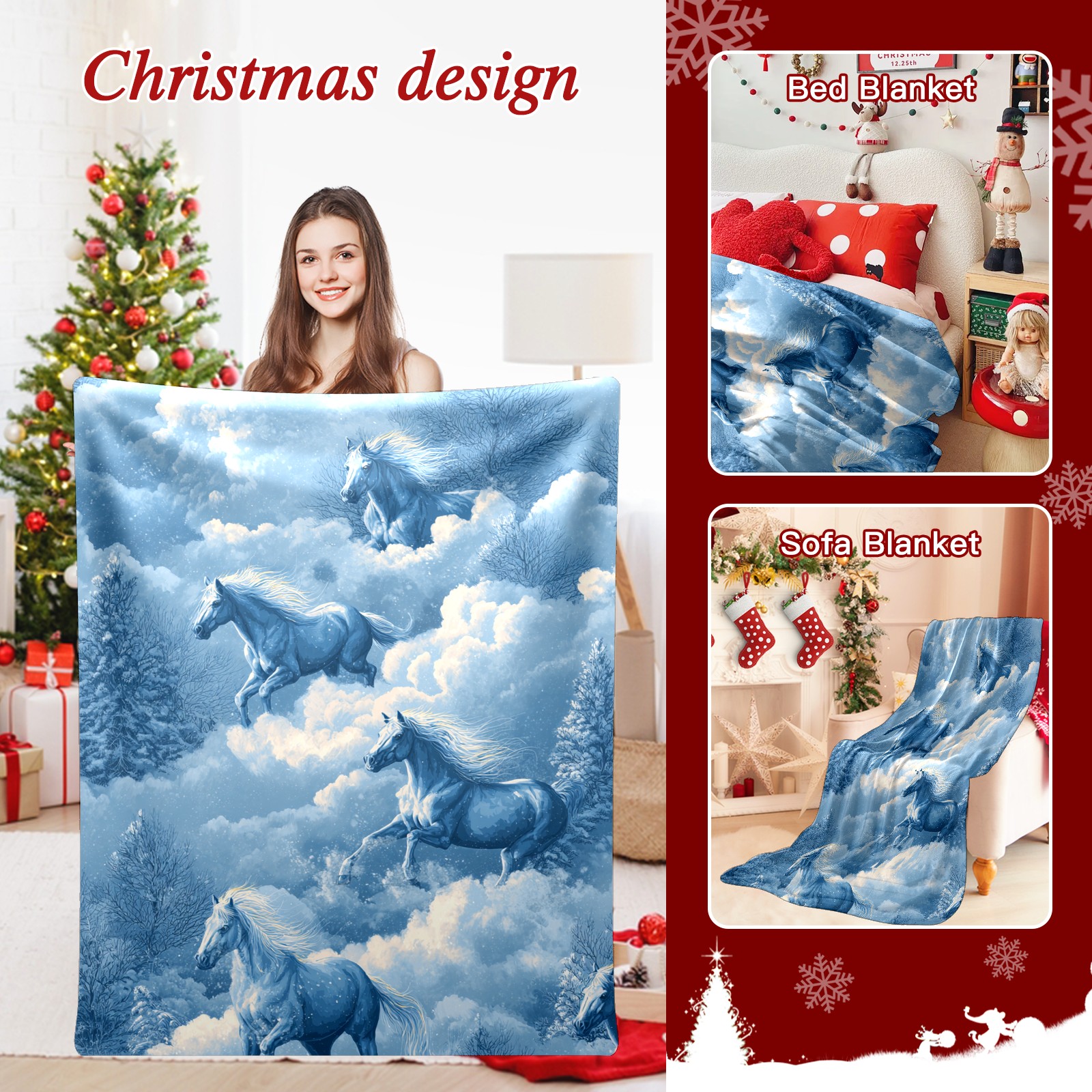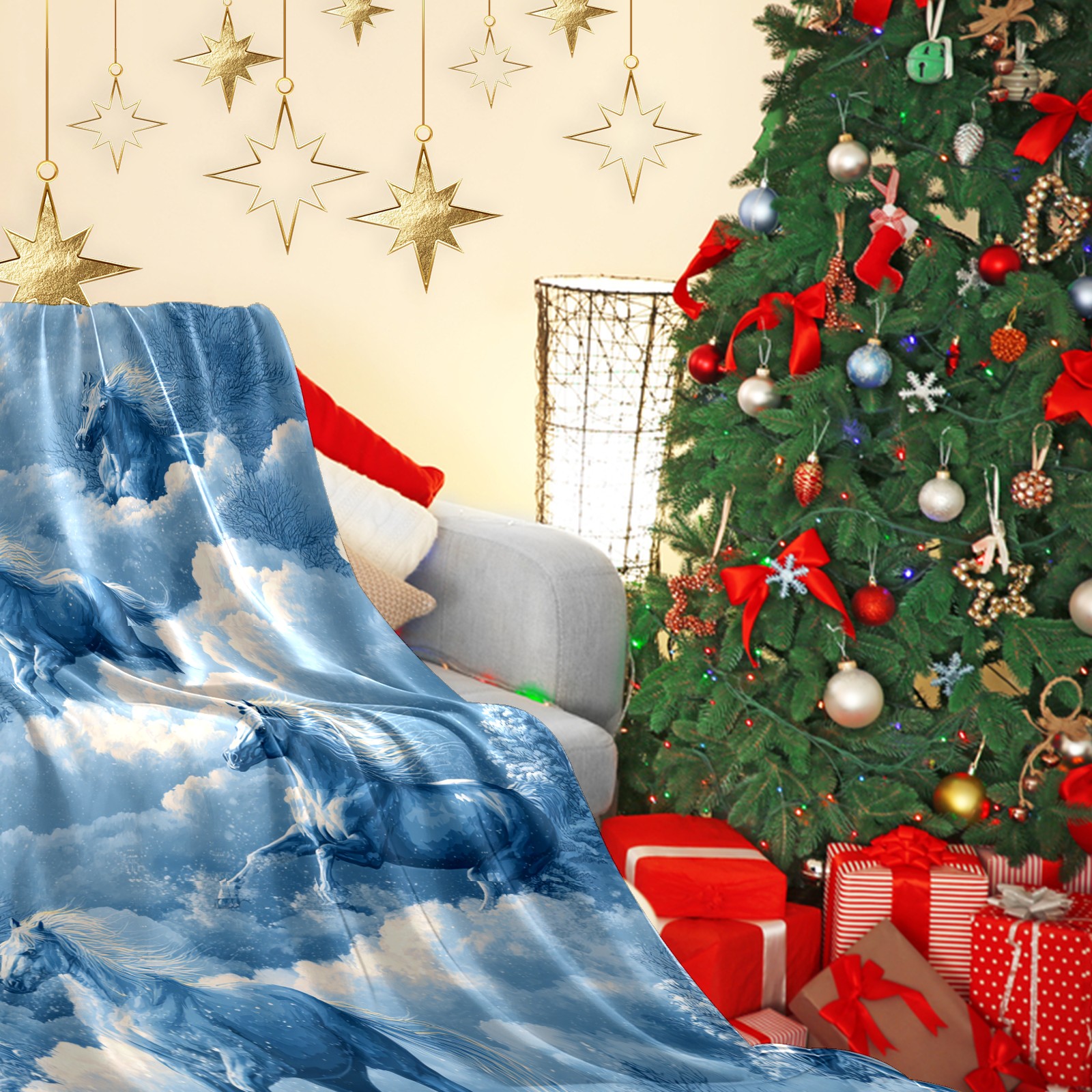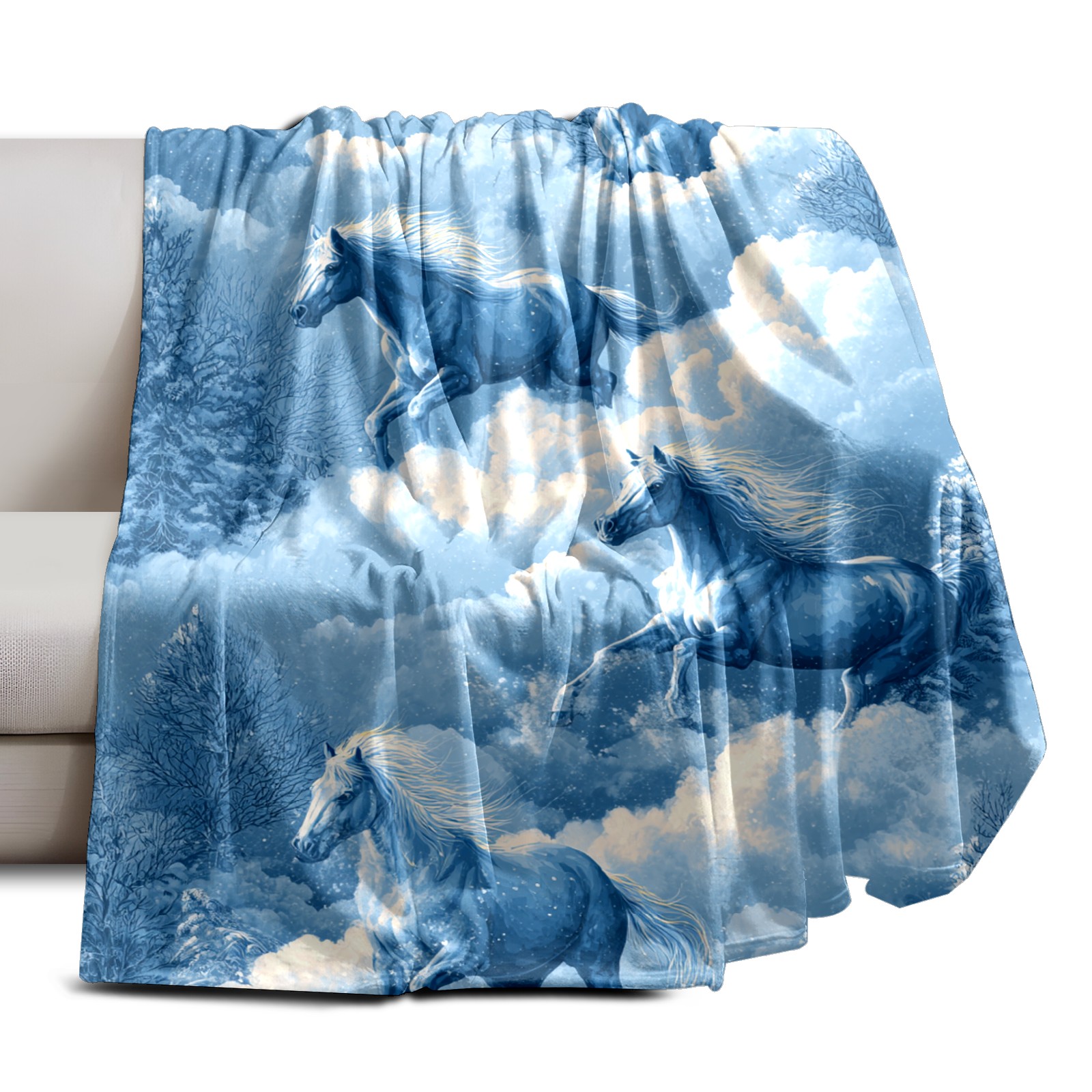 Премиальная фланелевая одеяло Dreamy Horse Blue