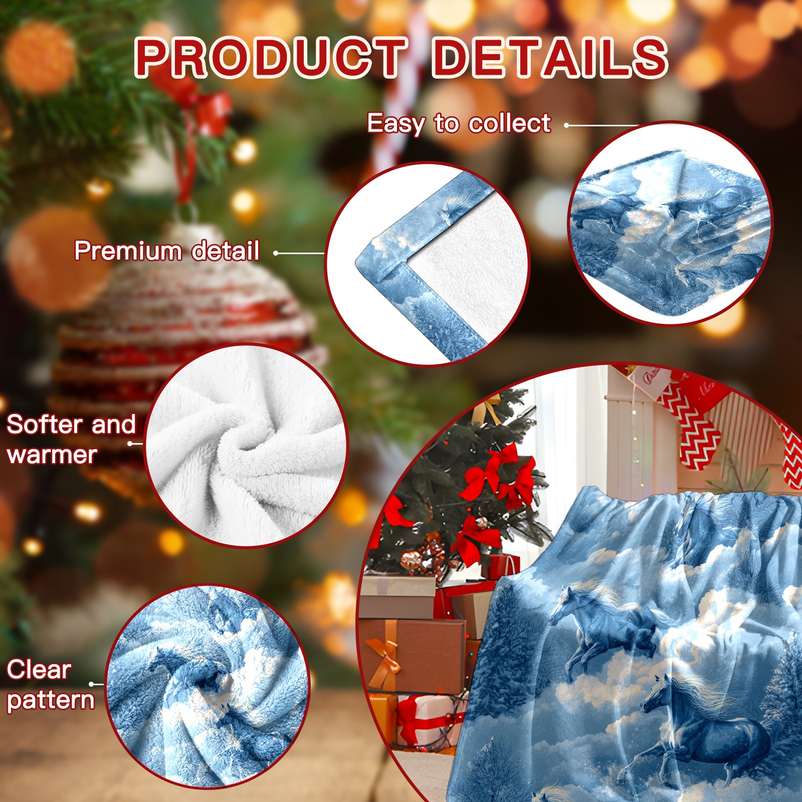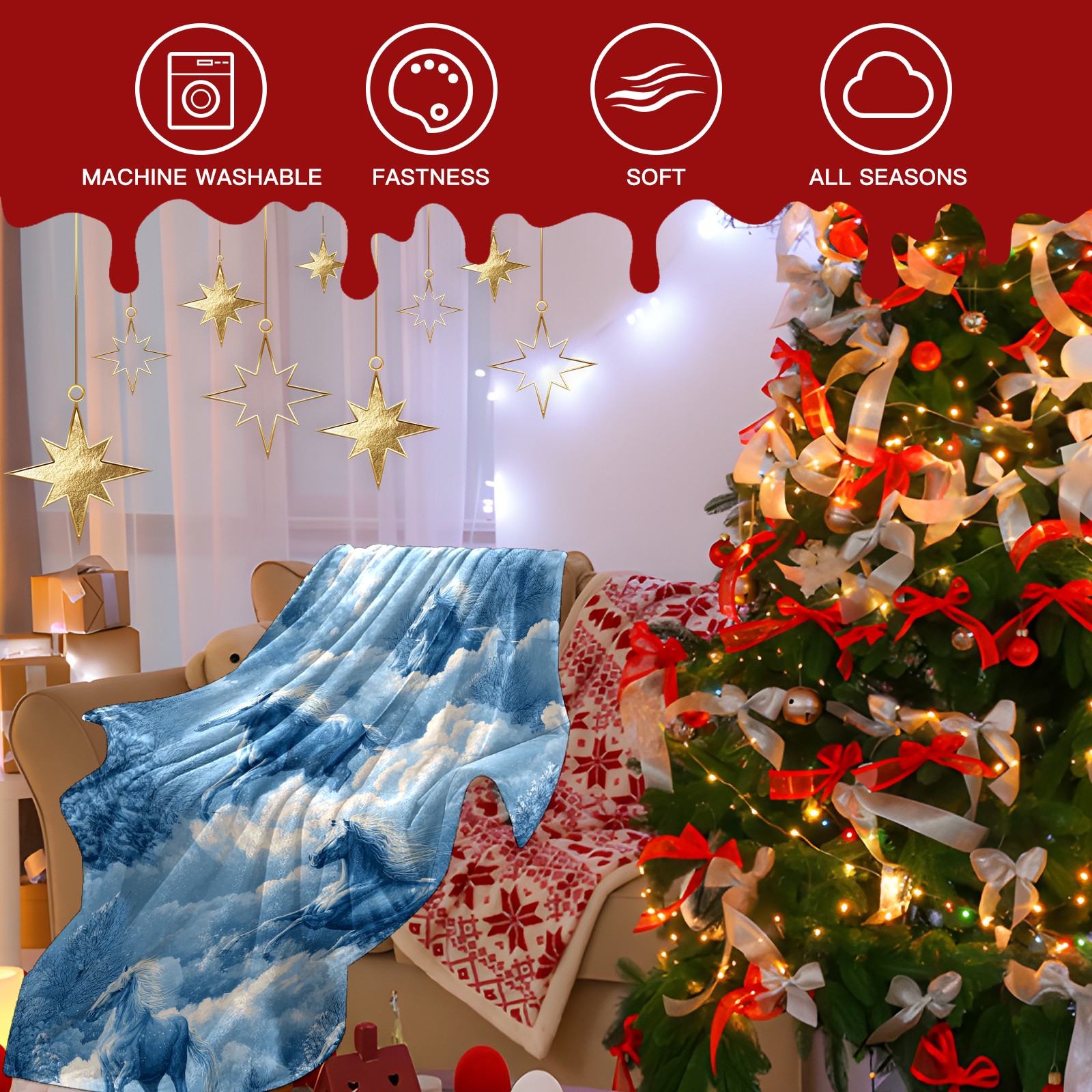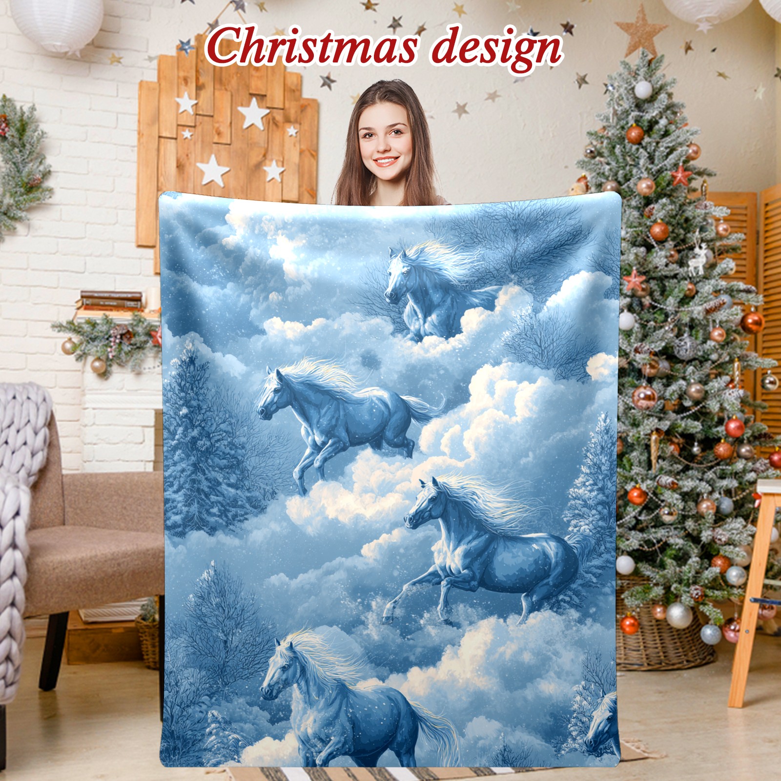 Премиальная фланелевая одеяло Dreamy Horse Blue