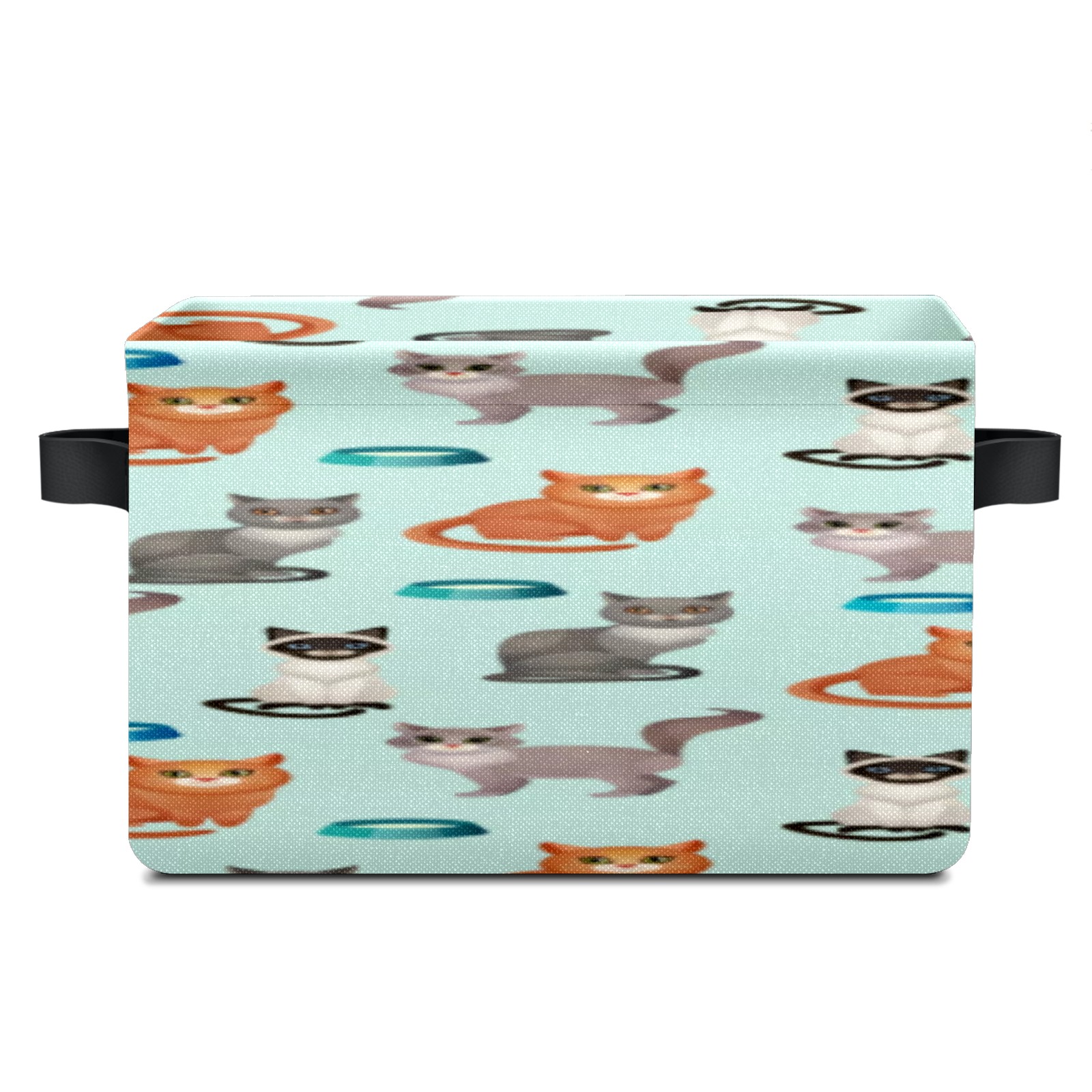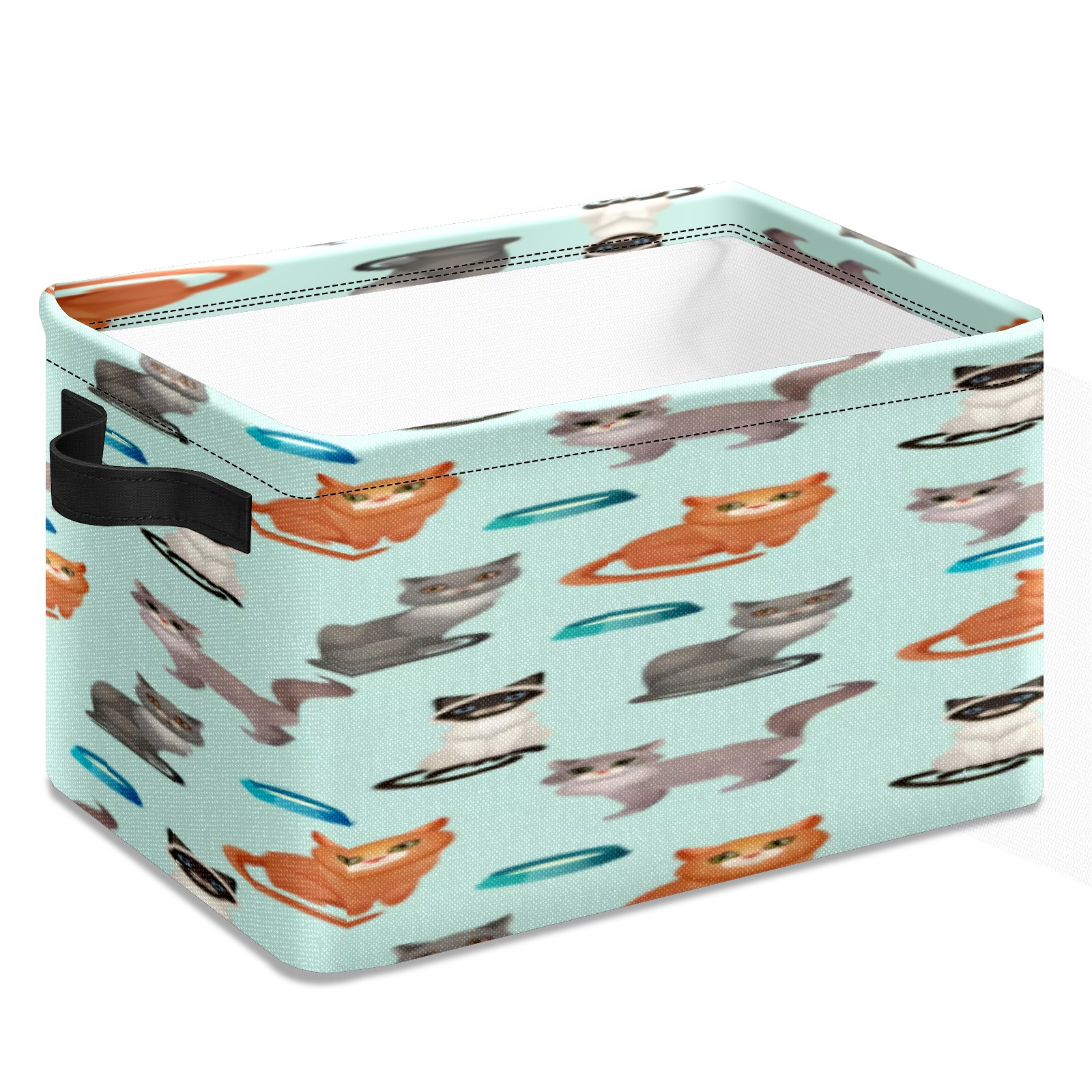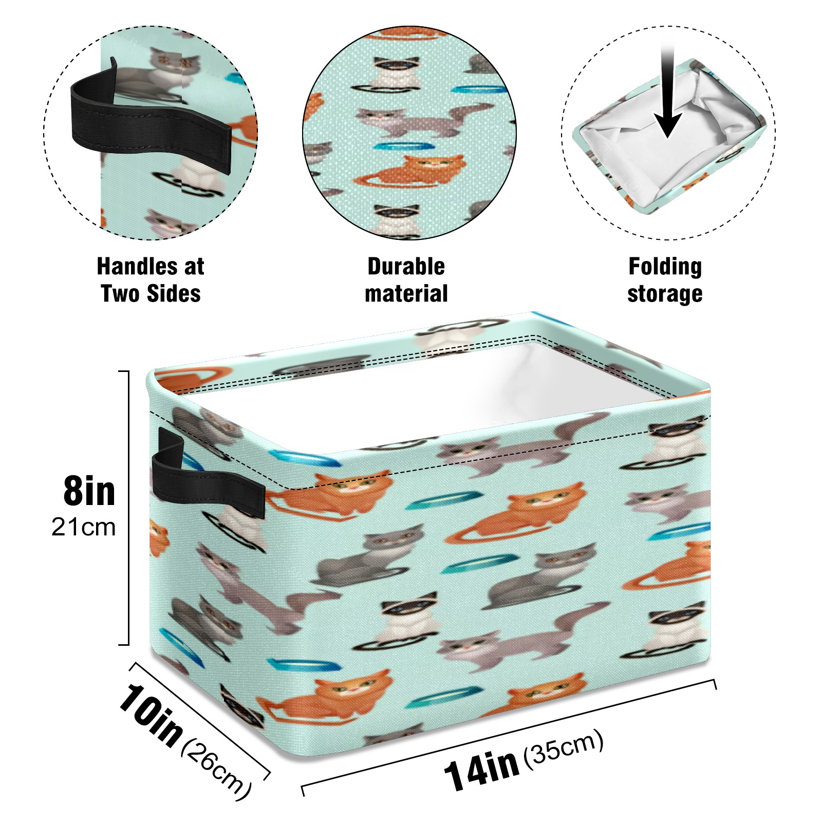 Collapsible 600D Oxford Storage Basket with Cartoon Cats - Metal Frame 10"x14"x8" Reinforced Handles, Multi-Purpose Organizer