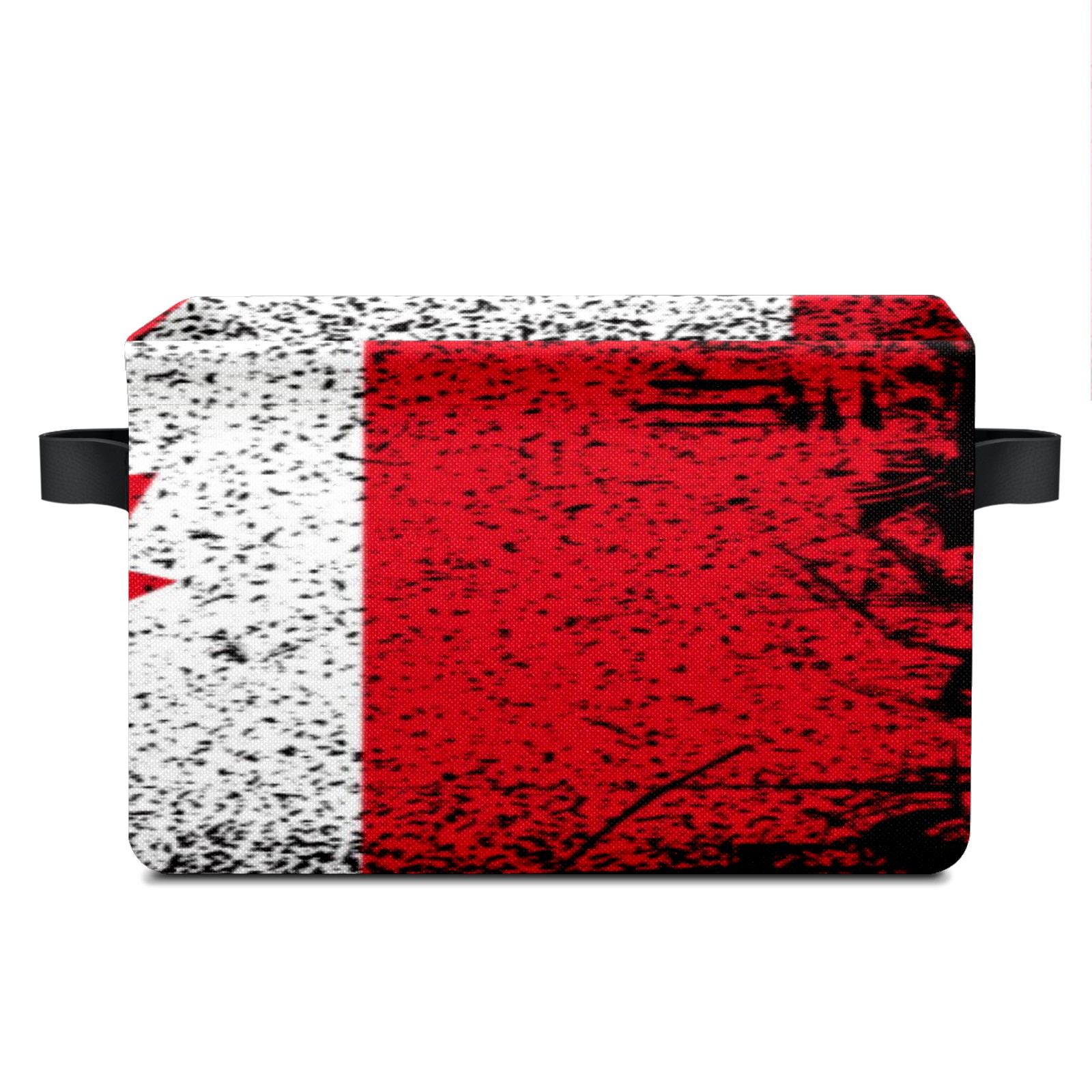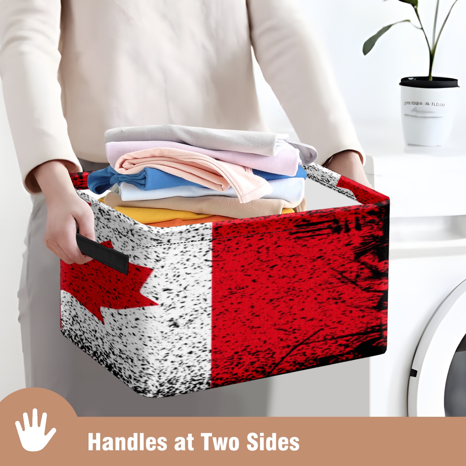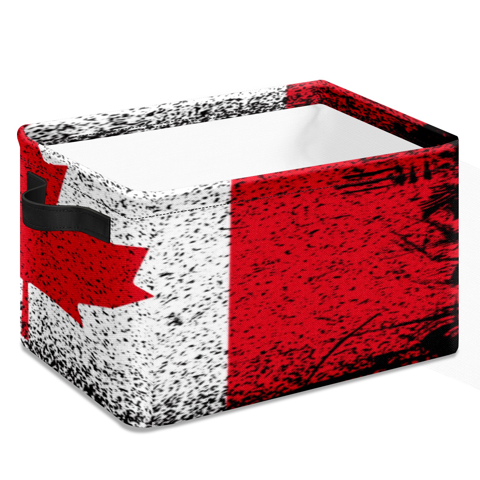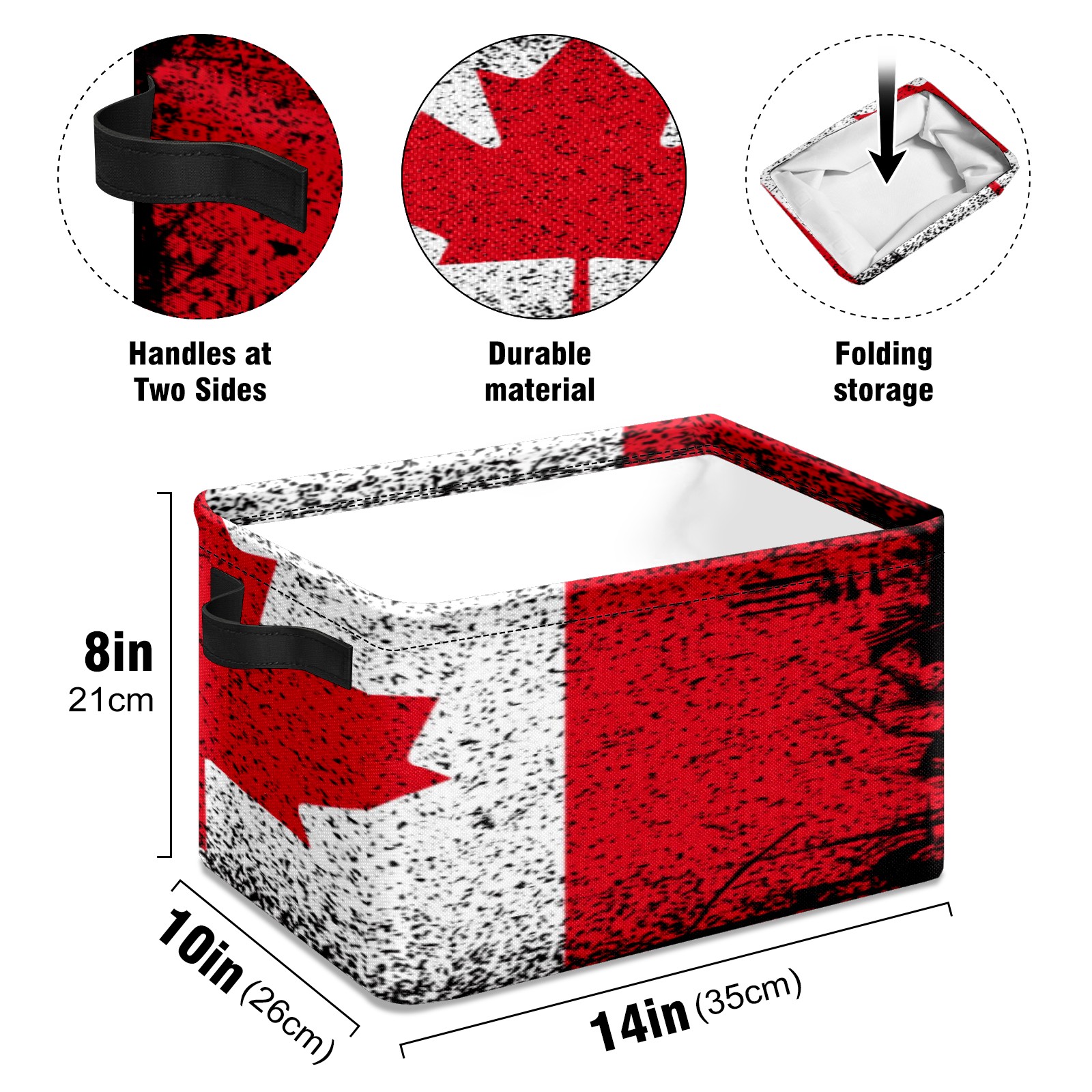 Collapsible 600D Oxford Storage Basket with Canada Grunge Flag Maple Leaf Red White Black - Metal Frame 10"x14"x8" Reinforced Handles, Multi-Purpose Organizer