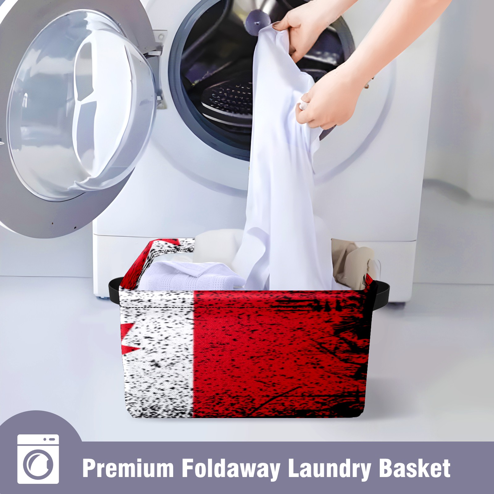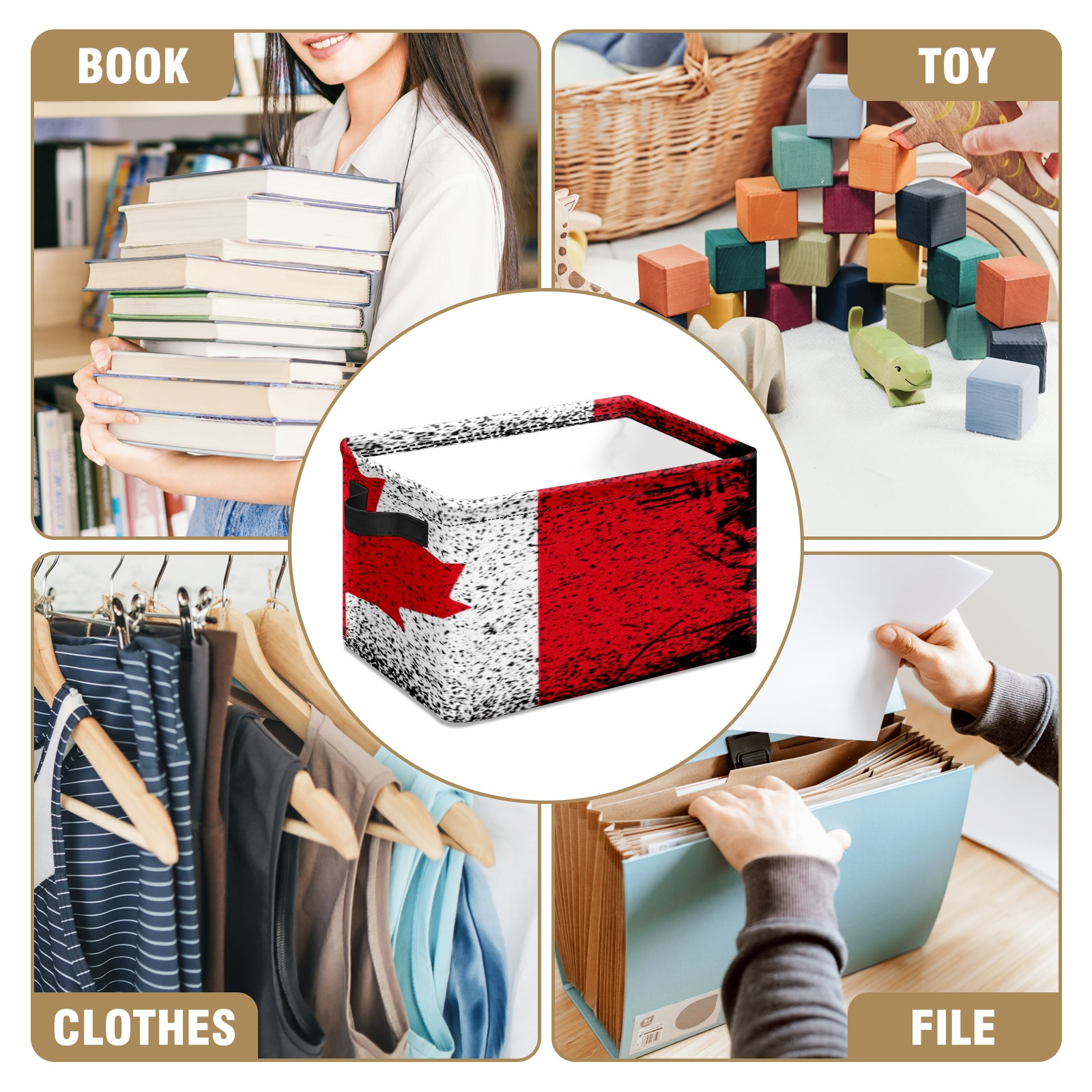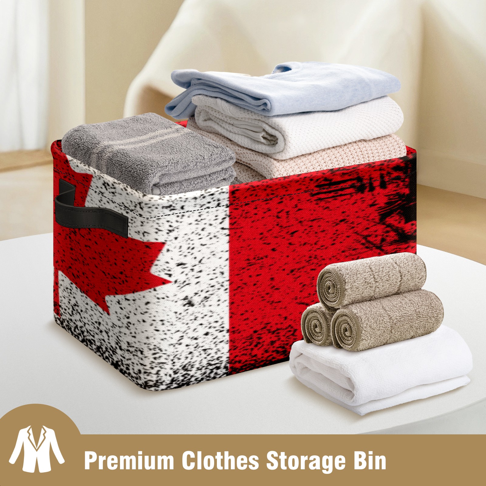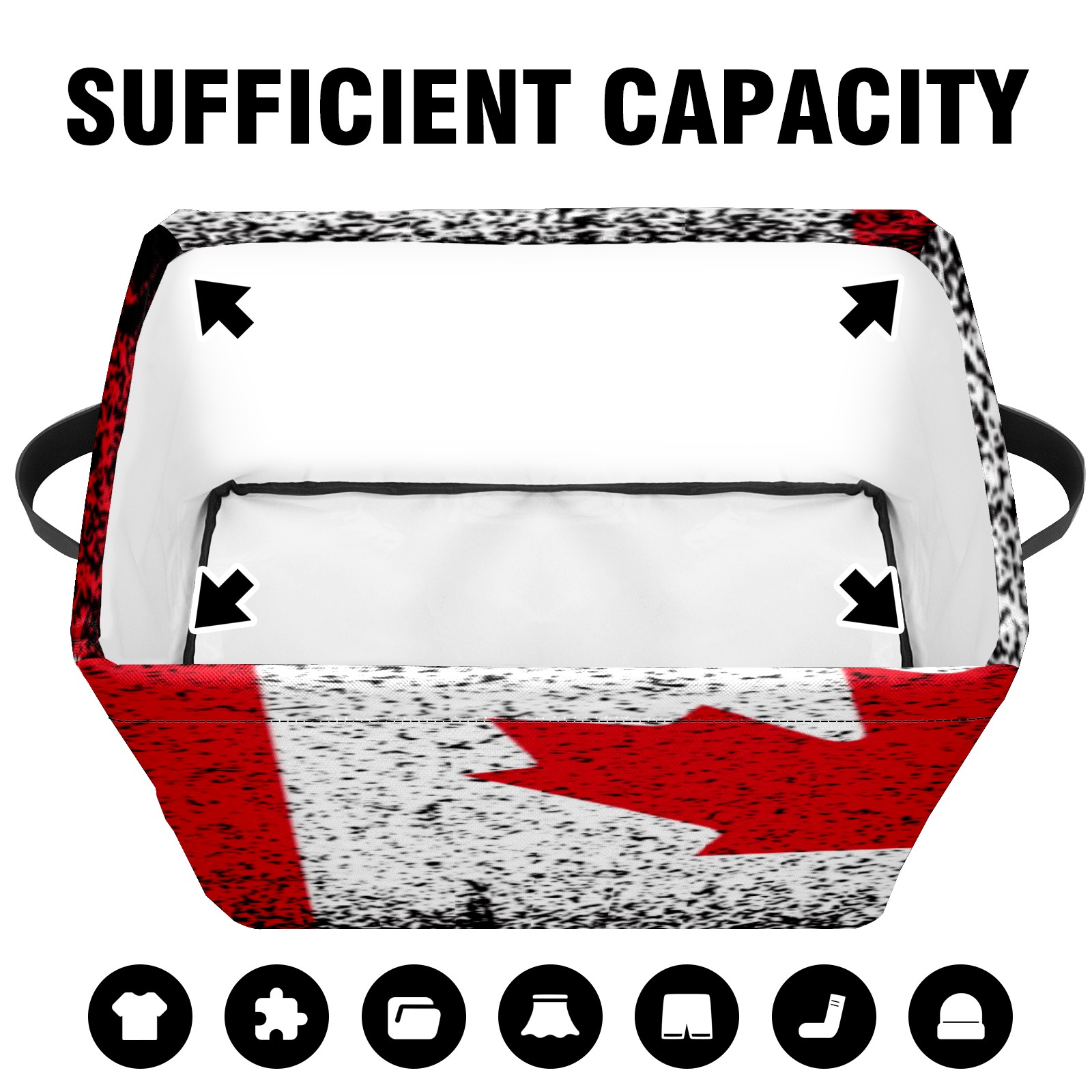 Collapsible 600D Oxford Storage Basket with Canada Grunge Flag Maple Leaf Red White Black - Metal Frame 10"x14"x8" Reinforced Handles, Multi-Purpose Organizer