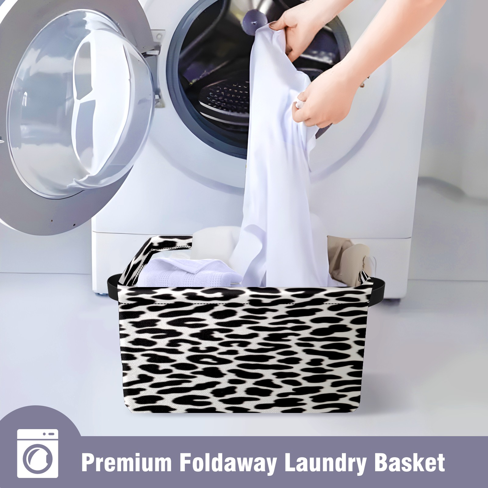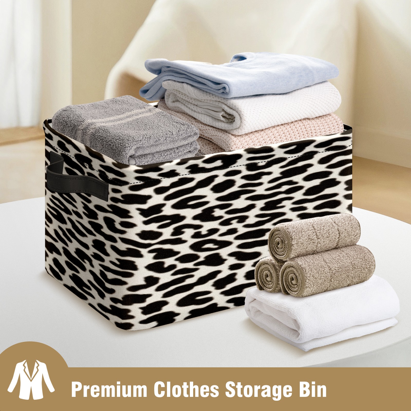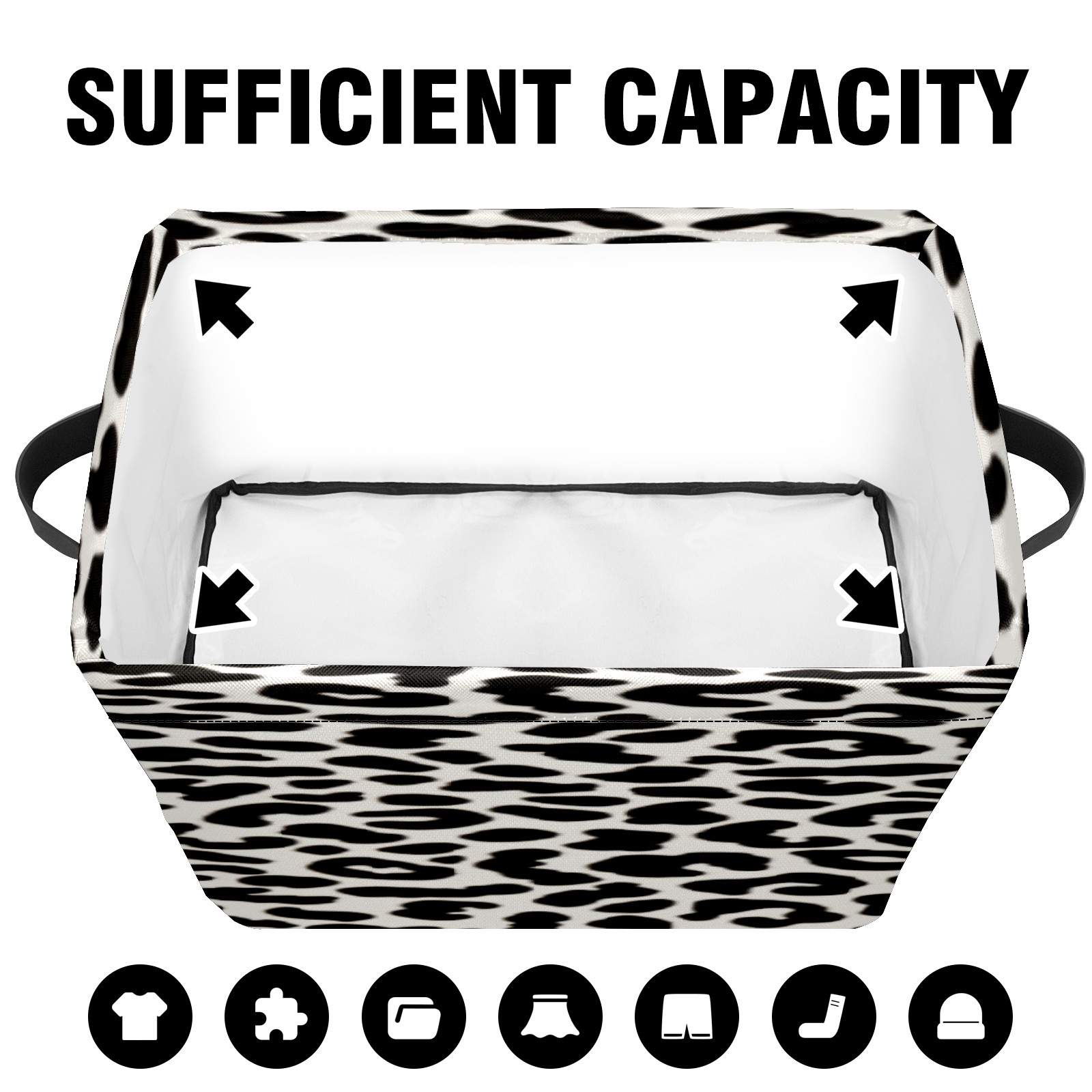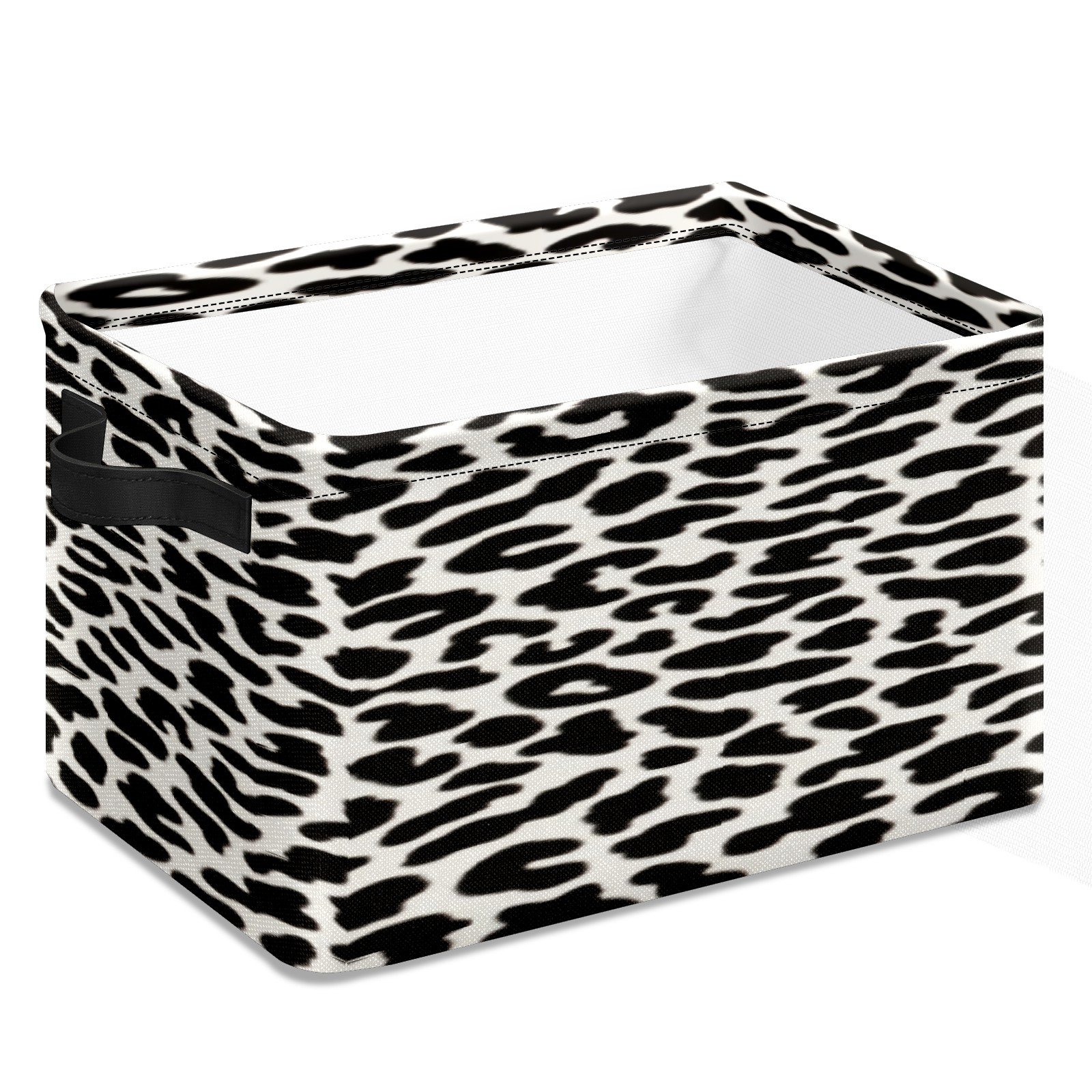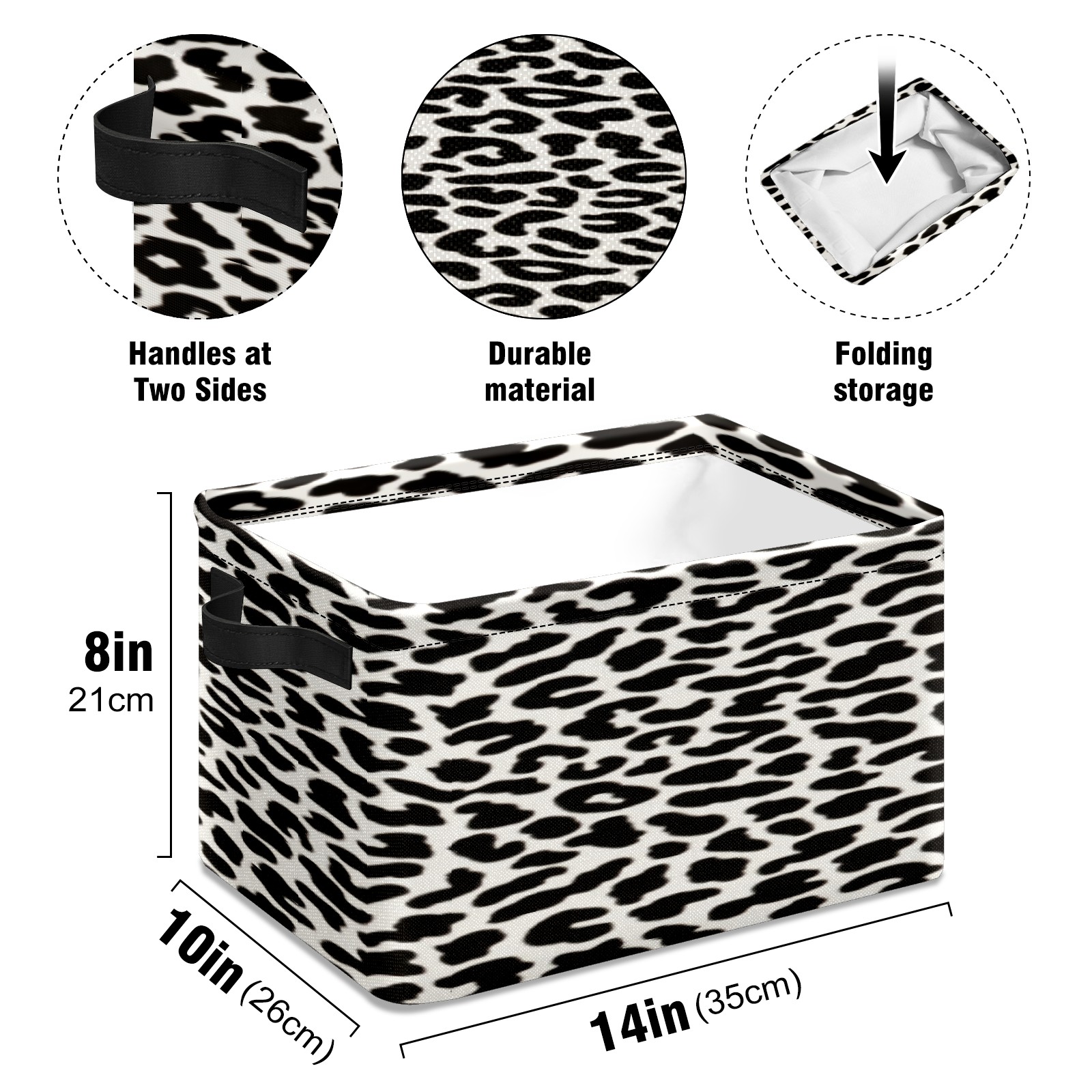 Collapsible 600D Oxford Storage Basket with Black&white Leopard Texture - Metal Frame 10"x14"x8" Reinforced Handles, Multi-Purpose Organizer
