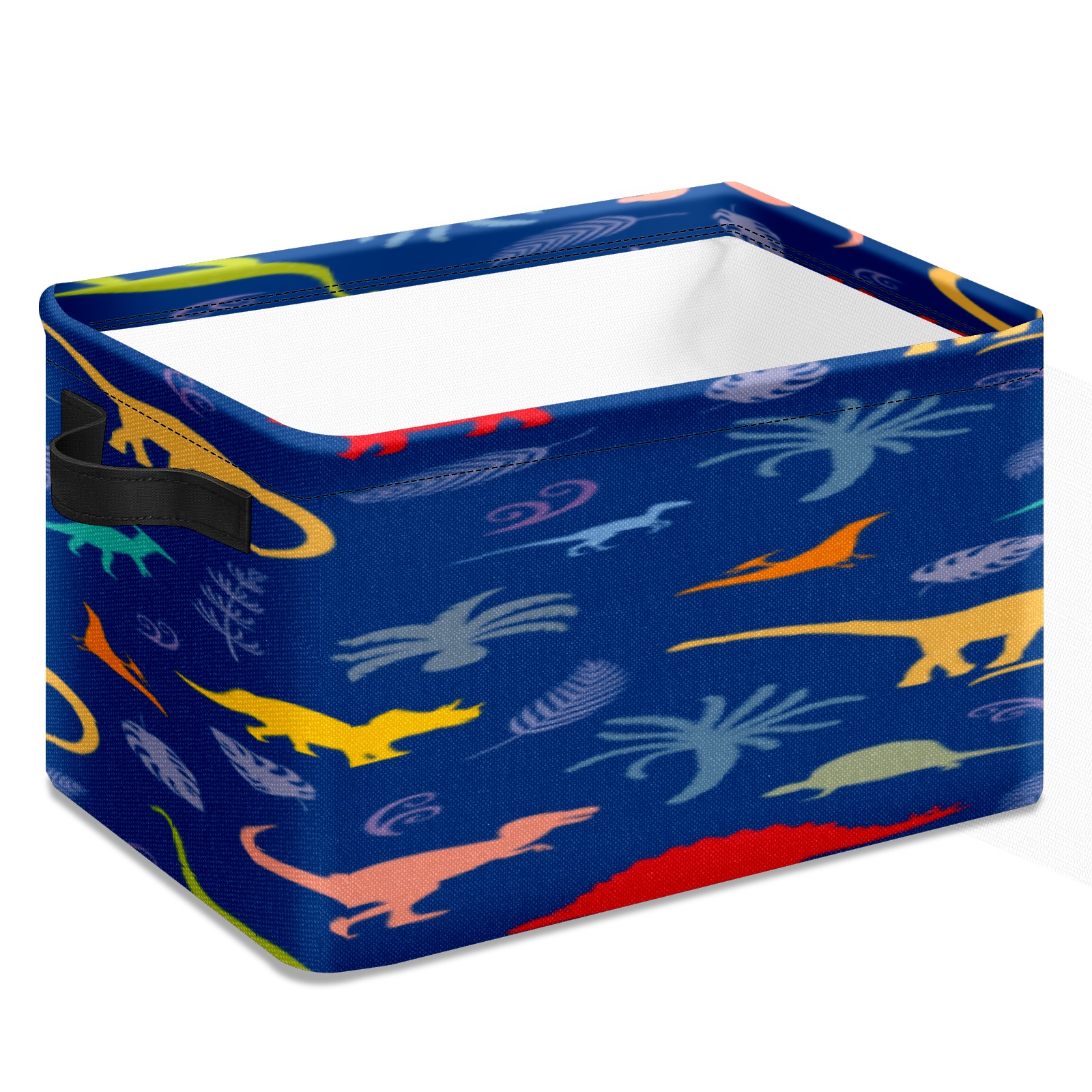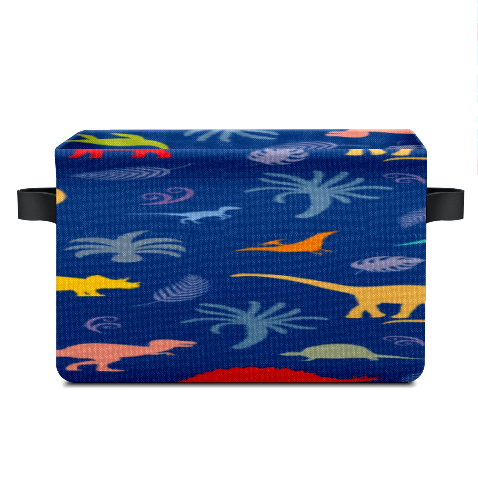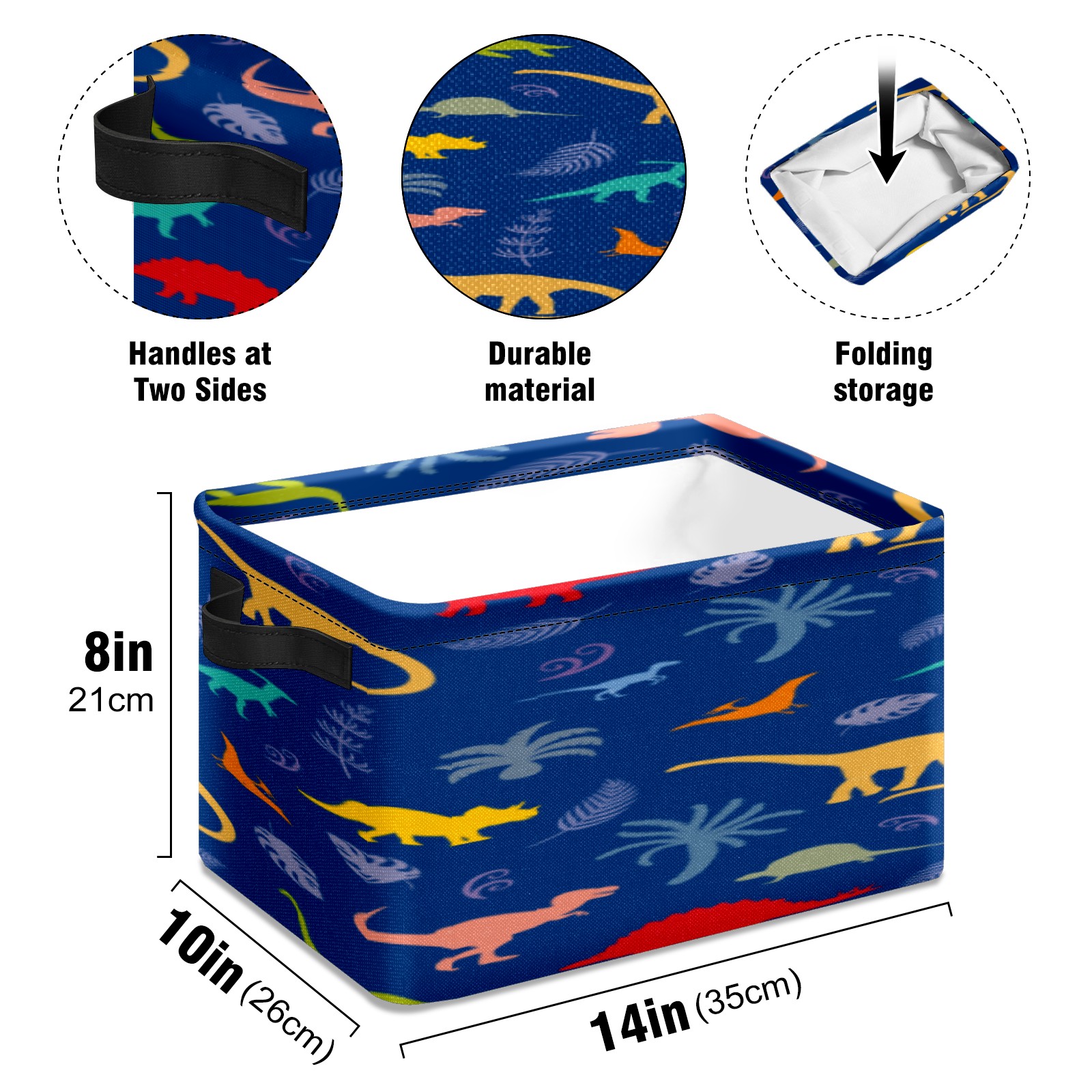 Collapsible 600D Oxford Storage Basket with Dinosaur Pink Yellow - Metal Frame 10"x14"x8" Reinforced Handles, Multi-Purpose Organizer