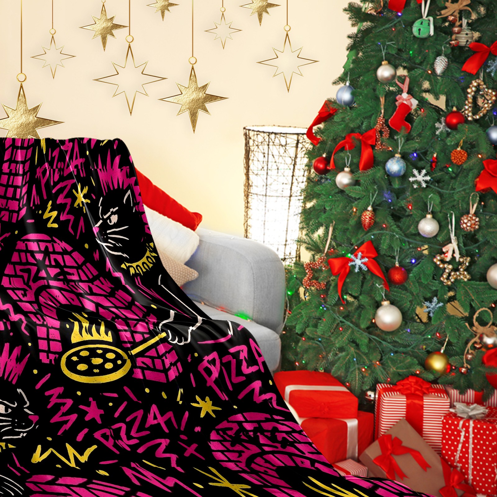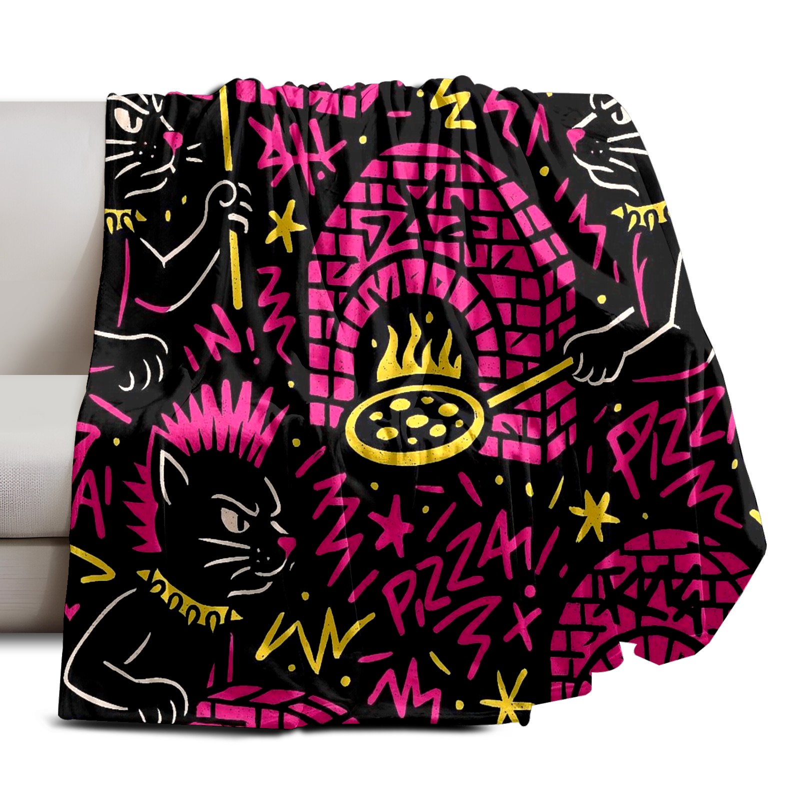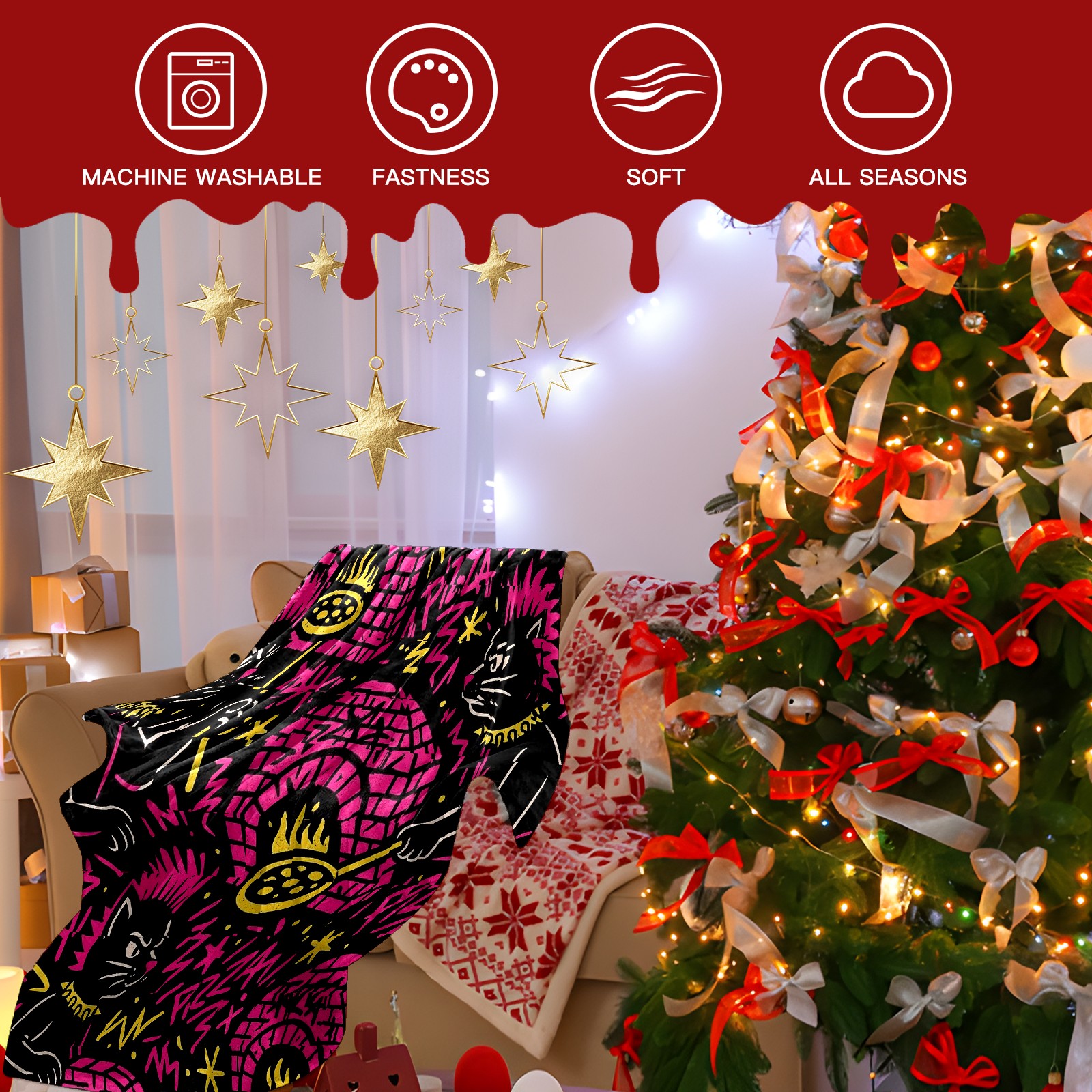 Премиальная фланелевая одеяло Vintage Black Cat Pink
