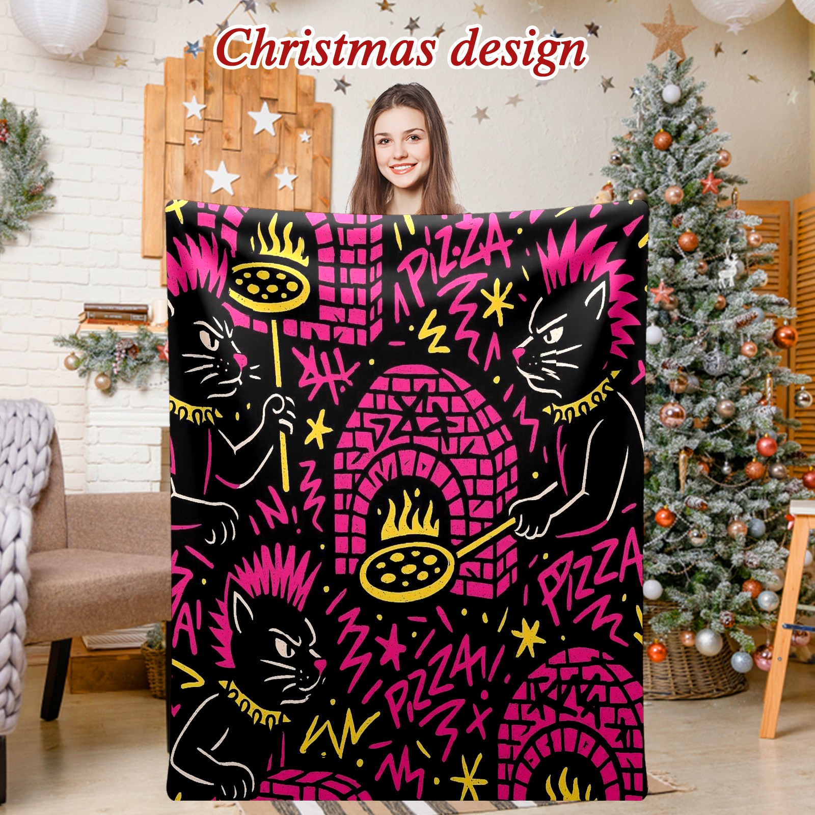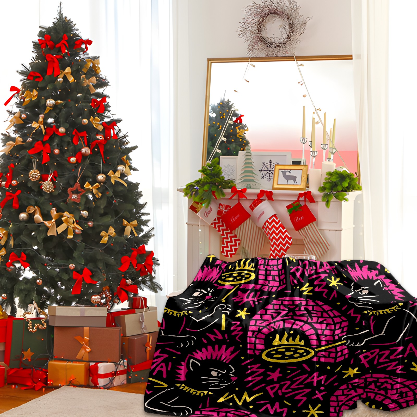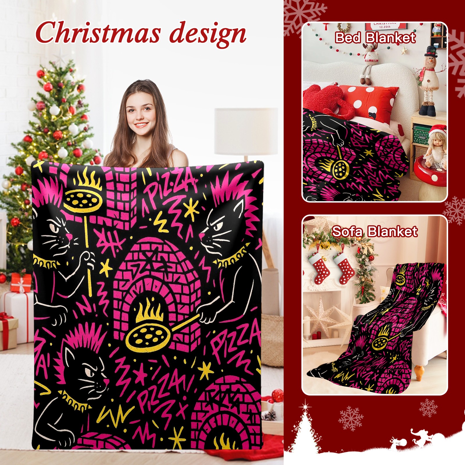 Премиальная фланелевая одеяло Vintage Black Cat Pink