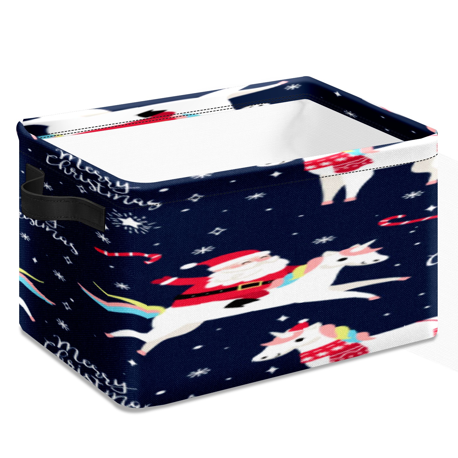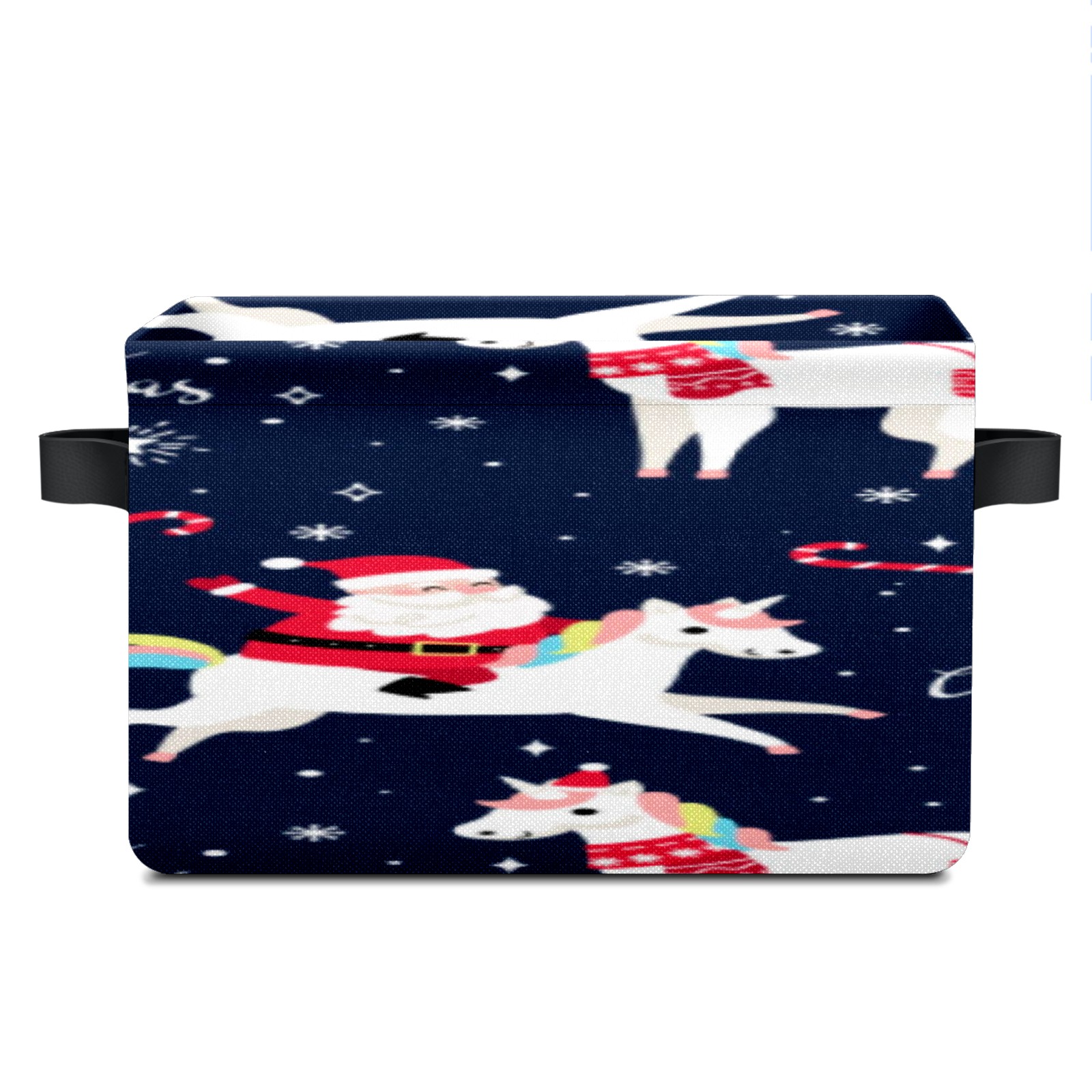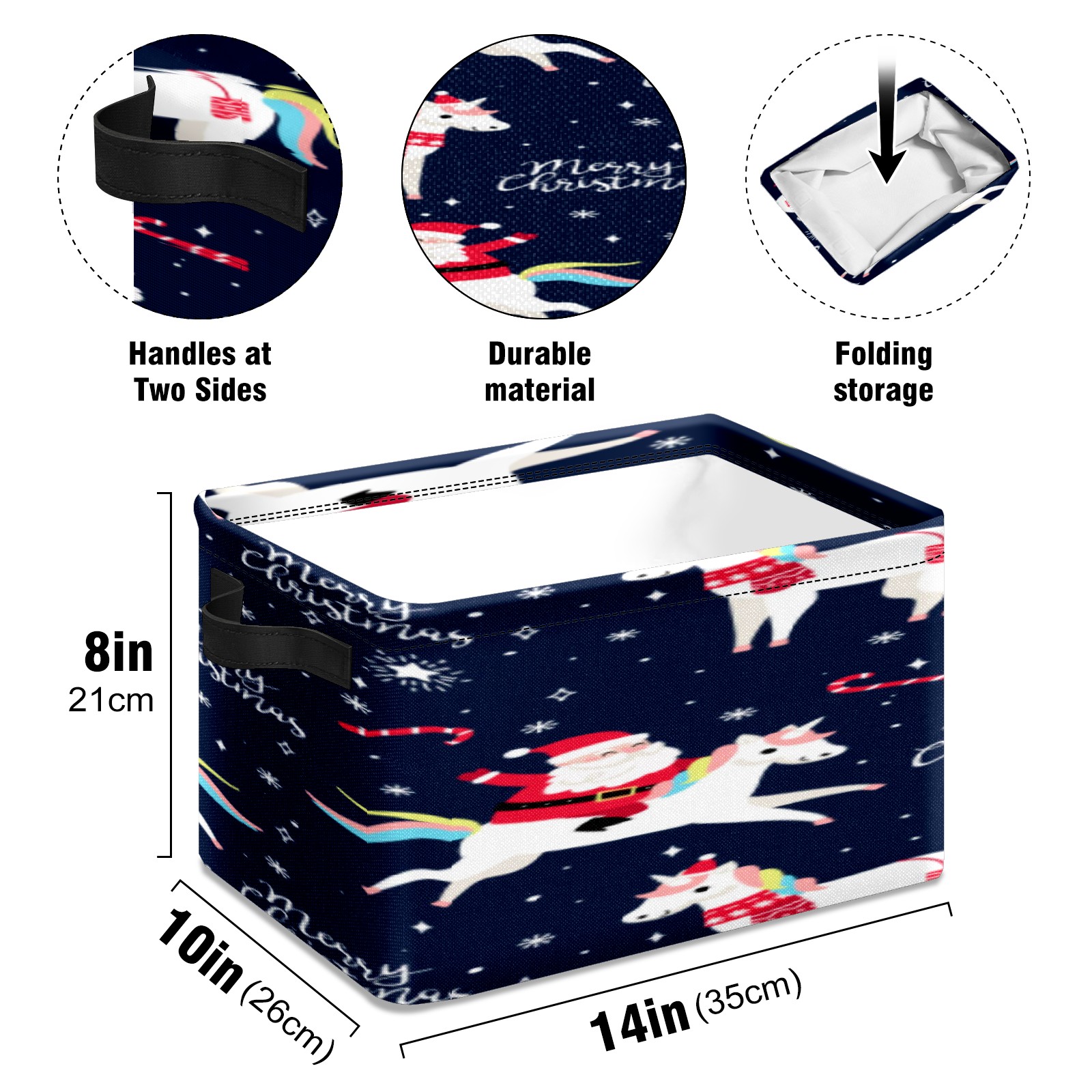 Collapsible 600D Oxford Storage Basket with Funny Christmas Santa Claus - Metal Frame 10"x14"x8" Reinforced Handles, Multi-Purpose Organizer
