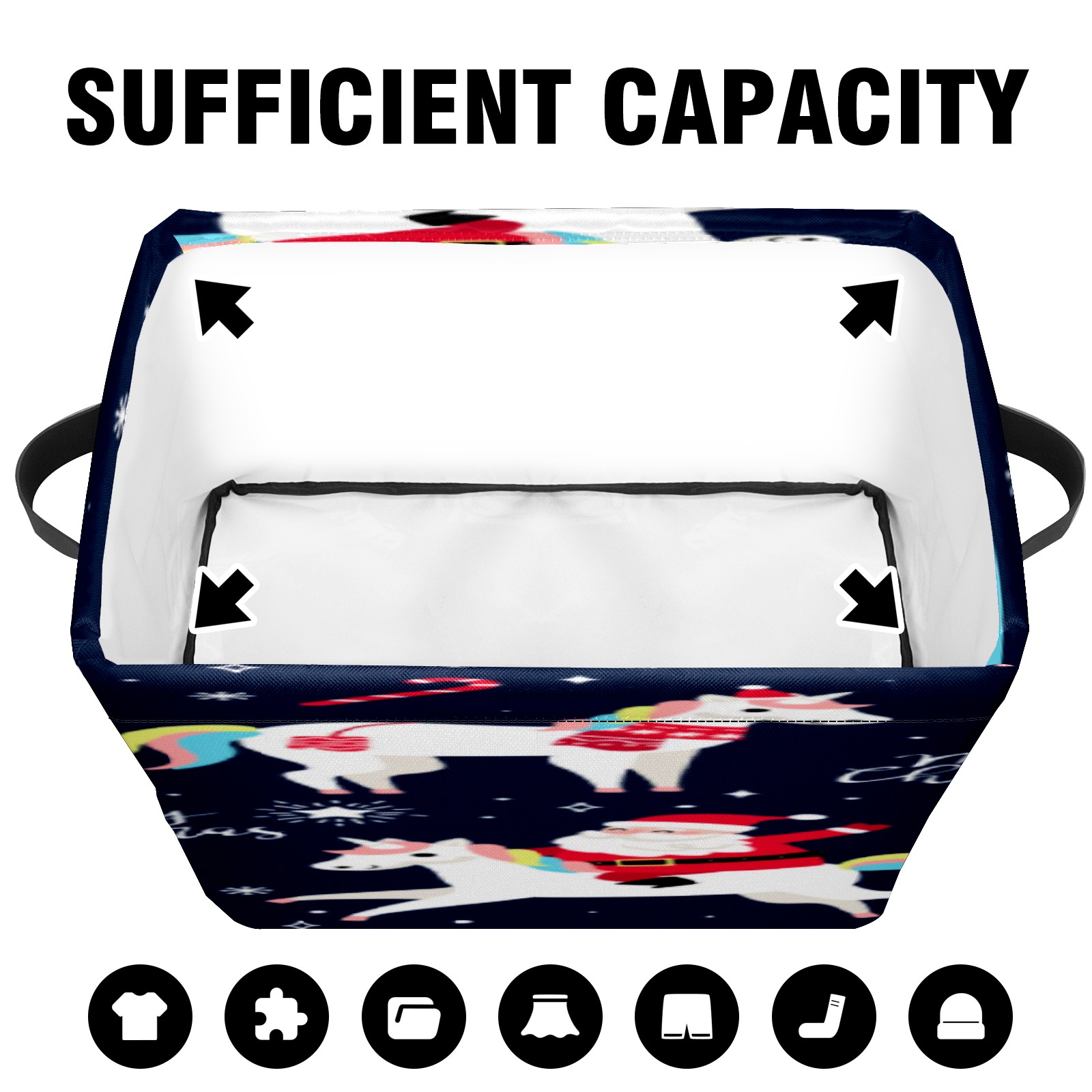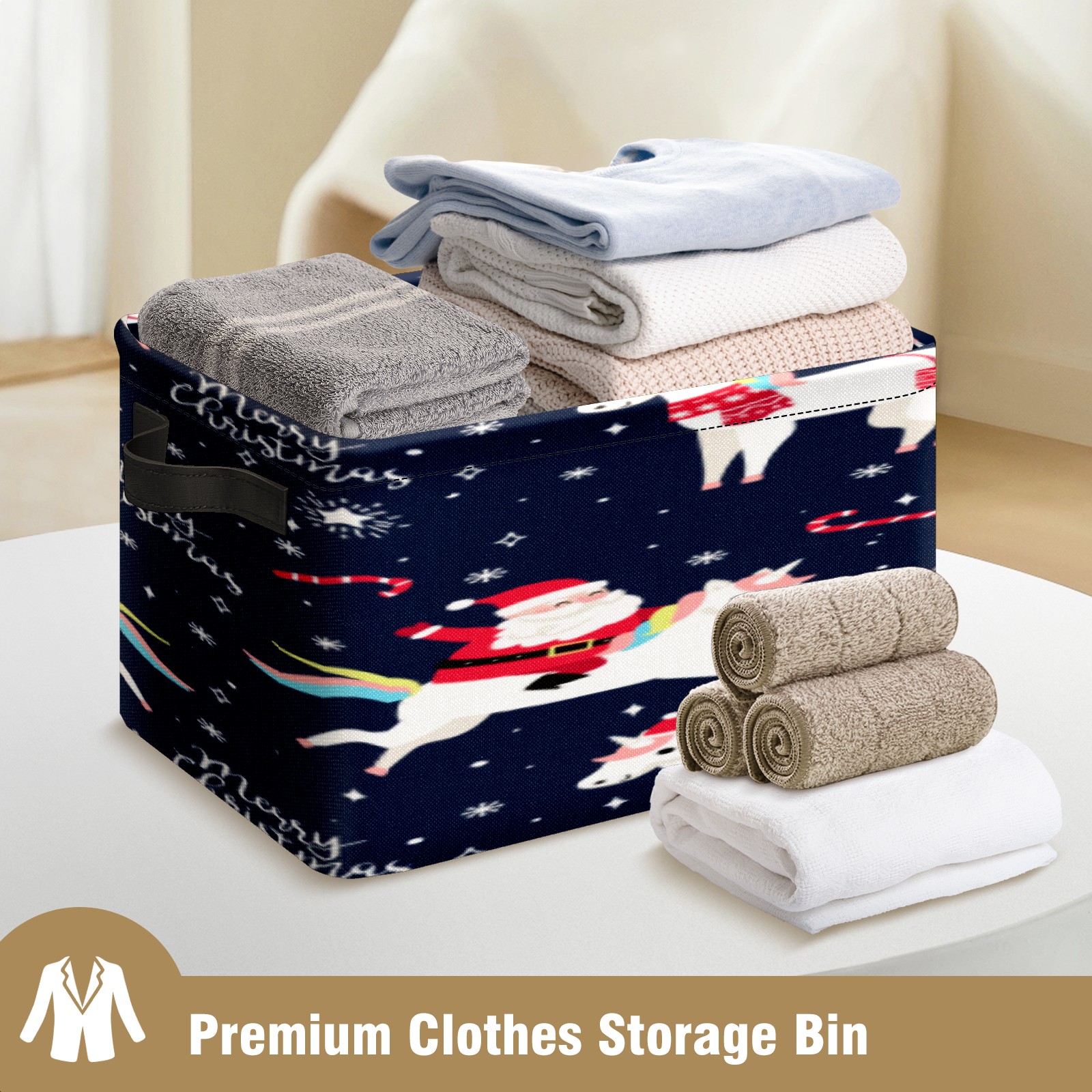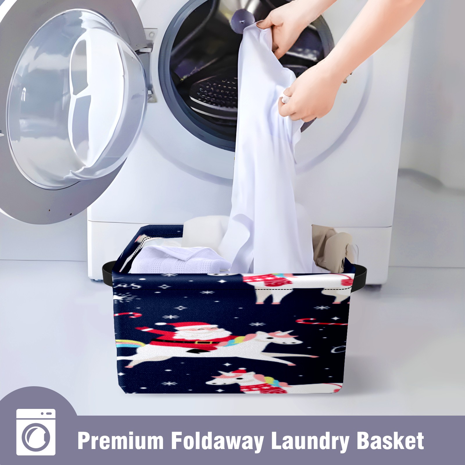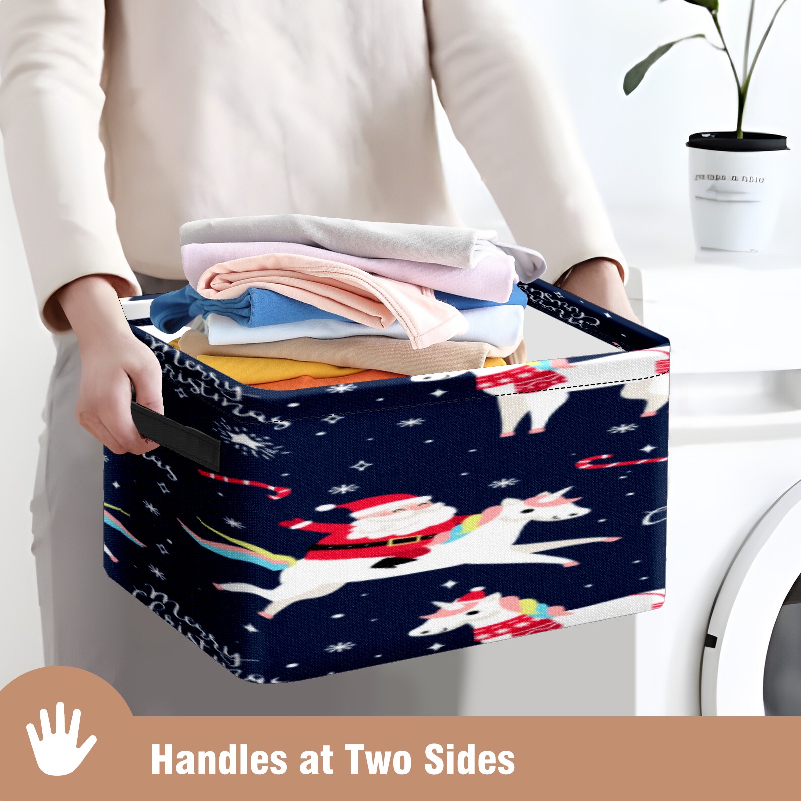 Collapsible 600D Oxford Storage Basket with Funny Christmas Santa Claus - Metal Frame 10"x14"x8" Reinforced Handles, Multi-Purpose Organizer