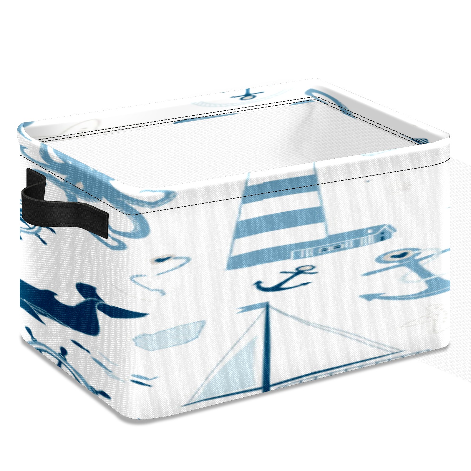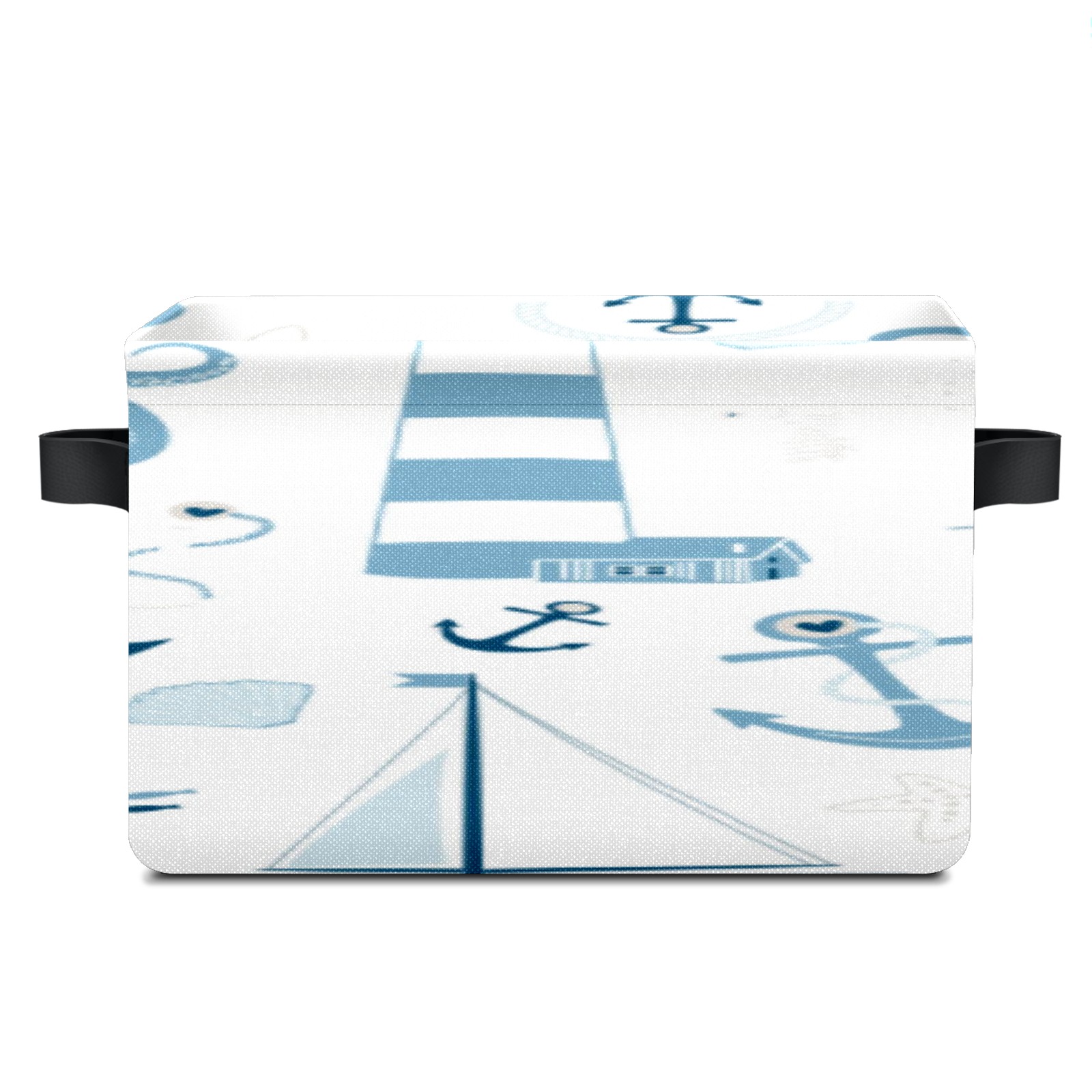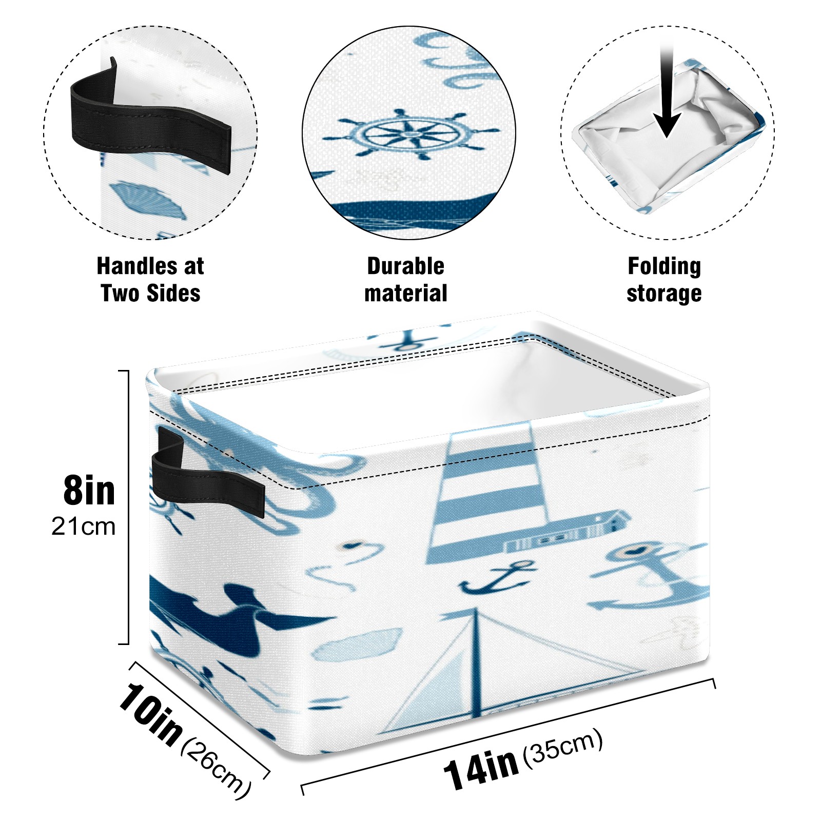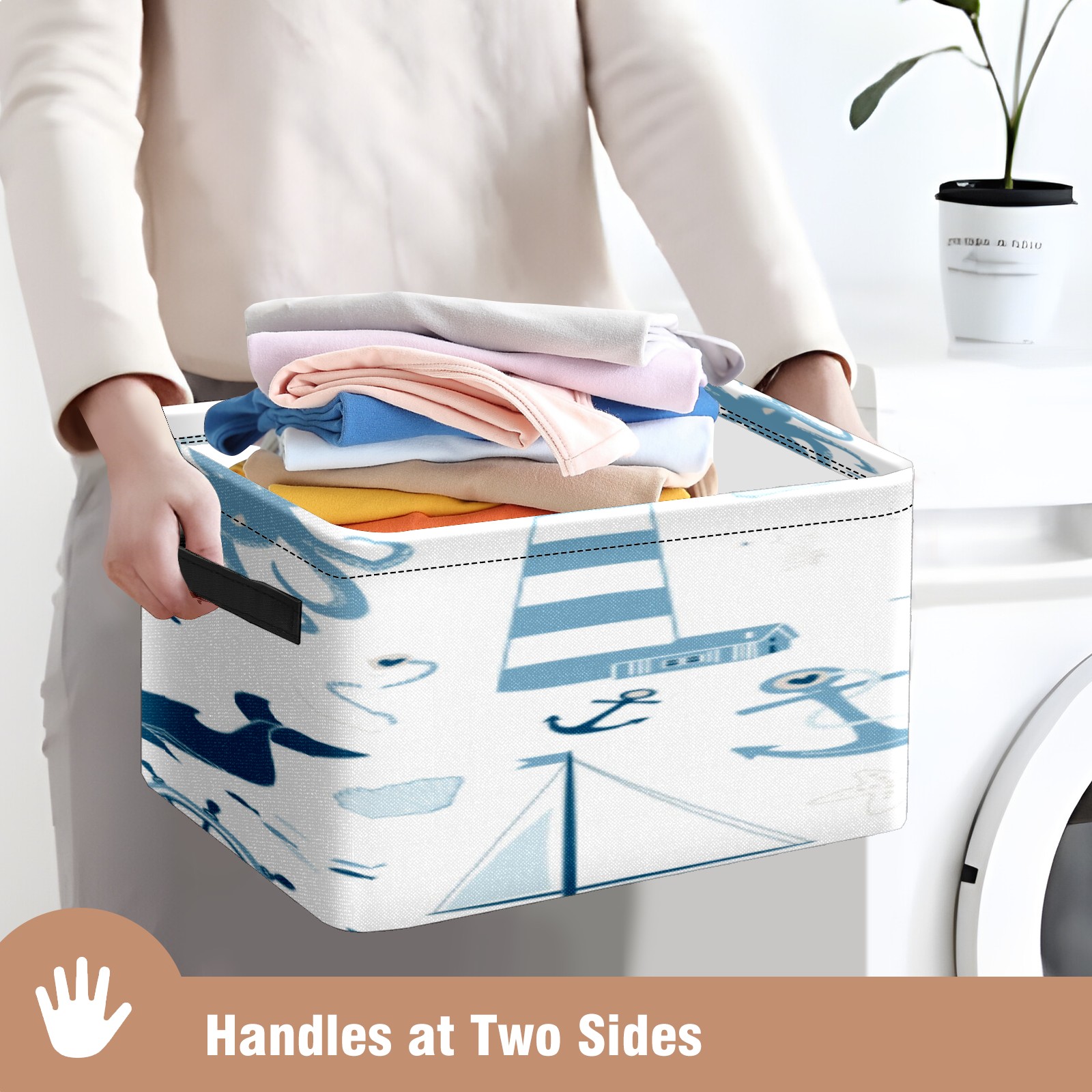 Collapsible 600D Oxford Storage Basket with Nautical Lighthouse Sailboat - Metal Frame 10"x14"x8" Reinforced Handles, Multi-Purpose Organizer