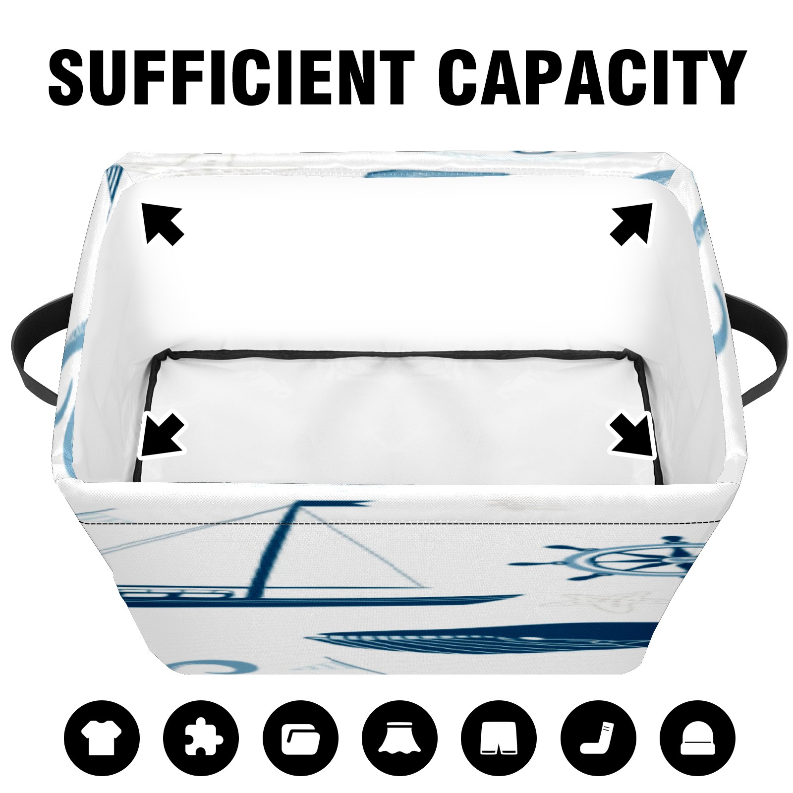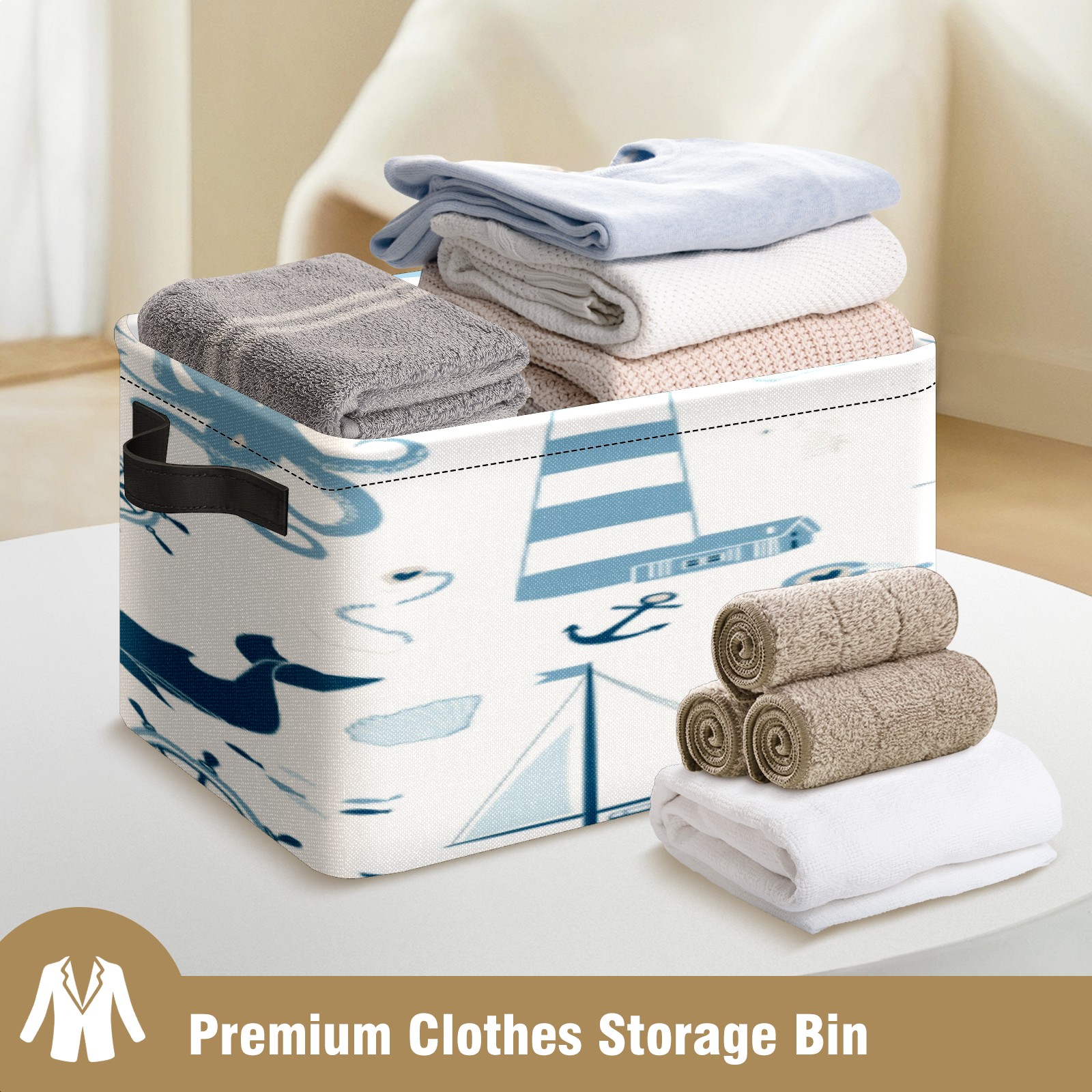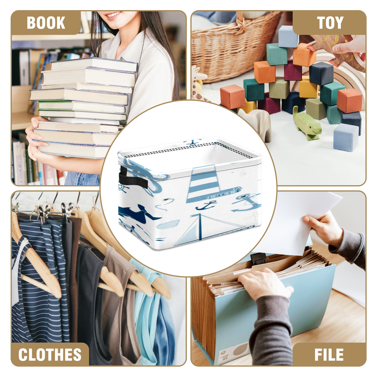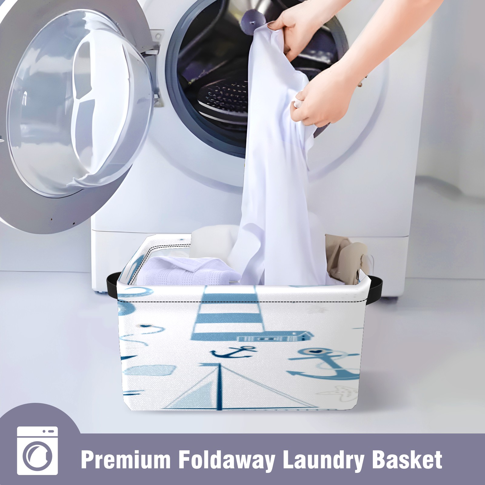 Collapsible 600D Oxford Storage Basket with Nautical Lighthouse Sailboat - Metal Frame 10"x14"x8" Reinforced Handles, Multi-Purpose Organizer
