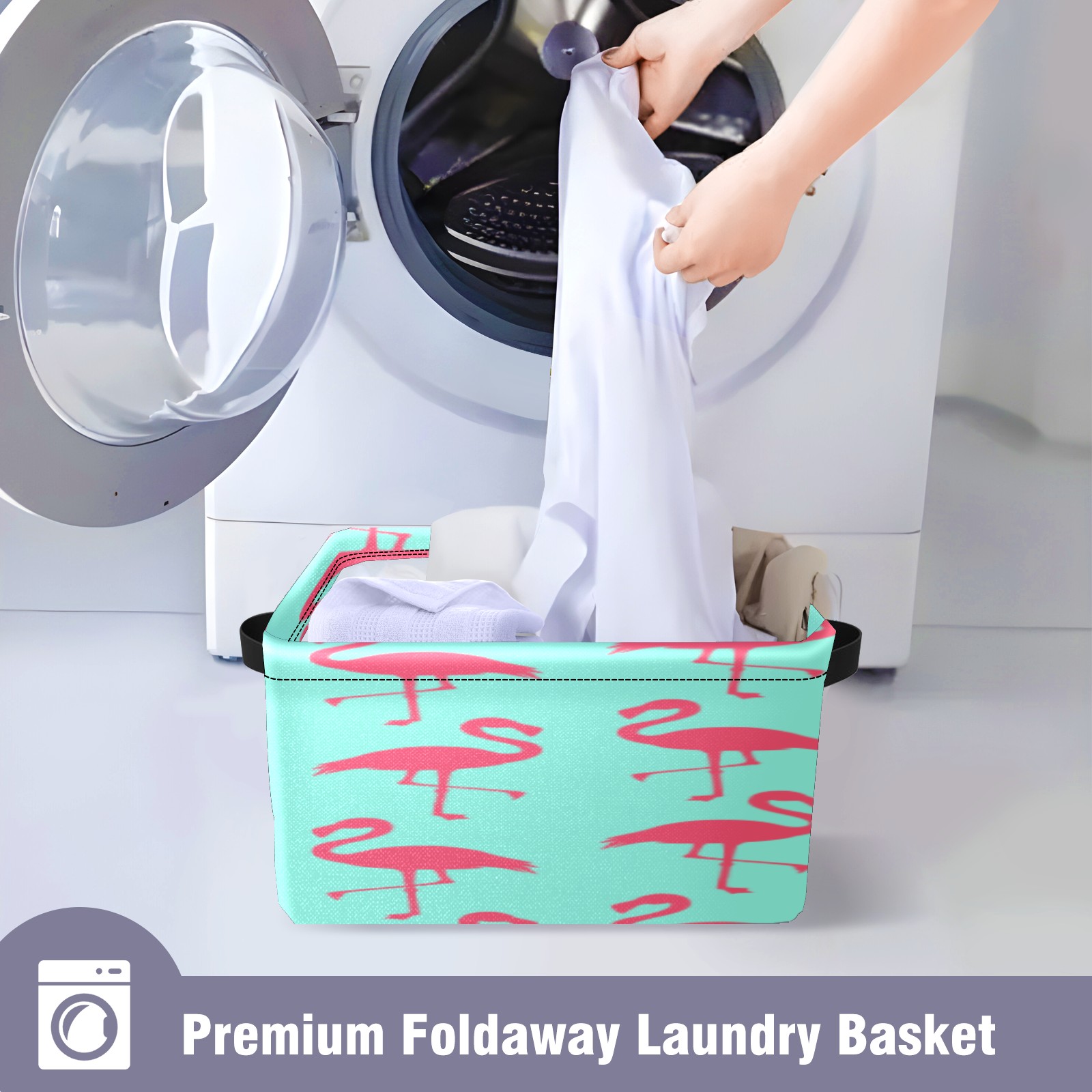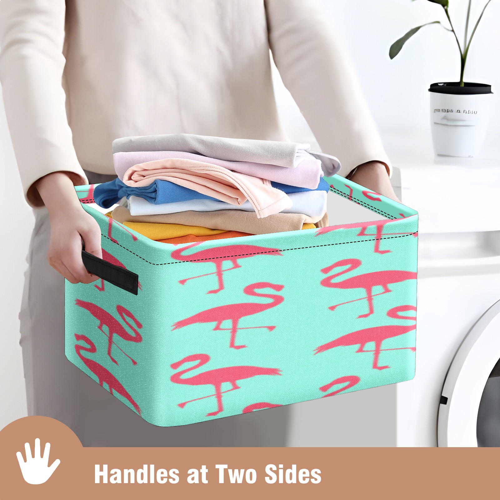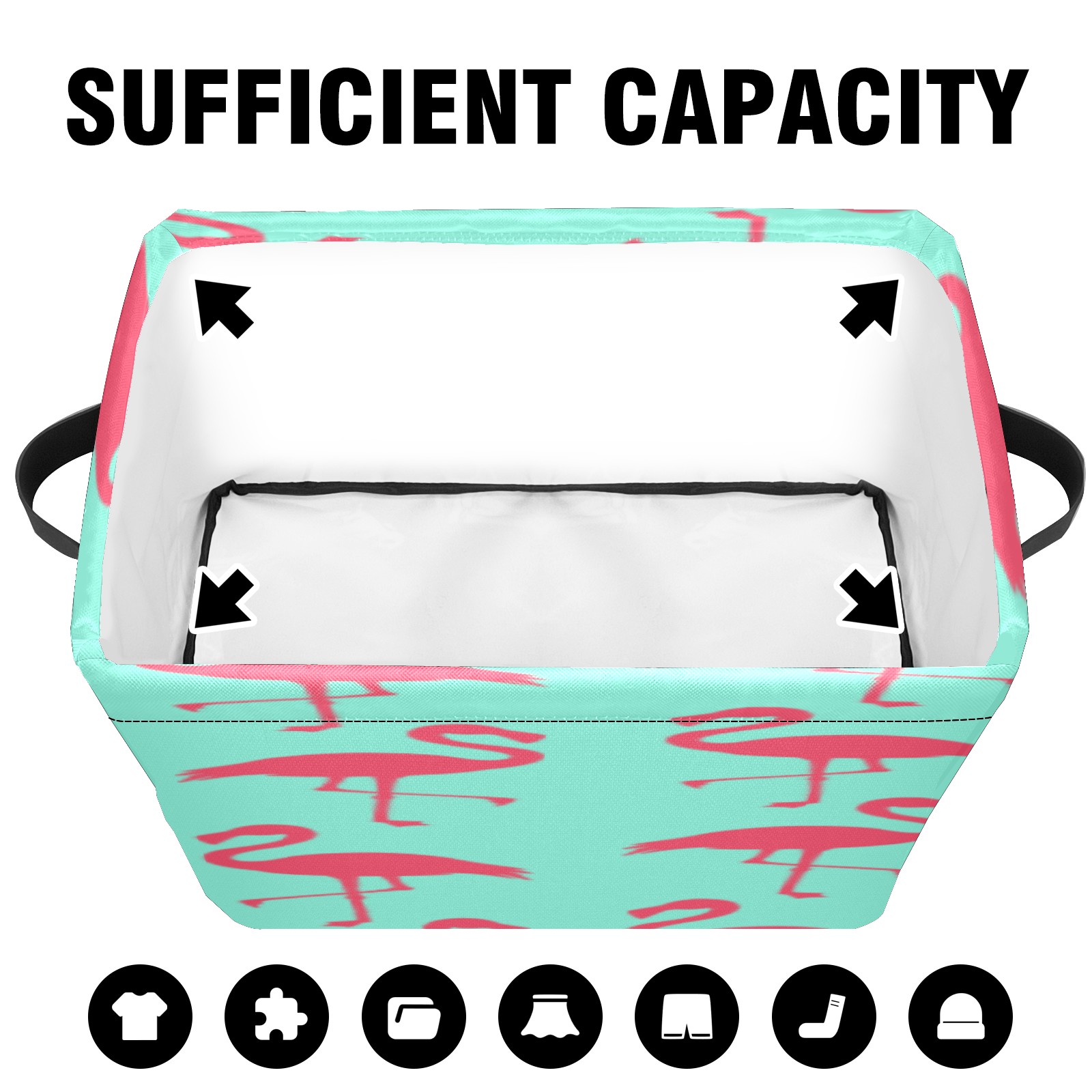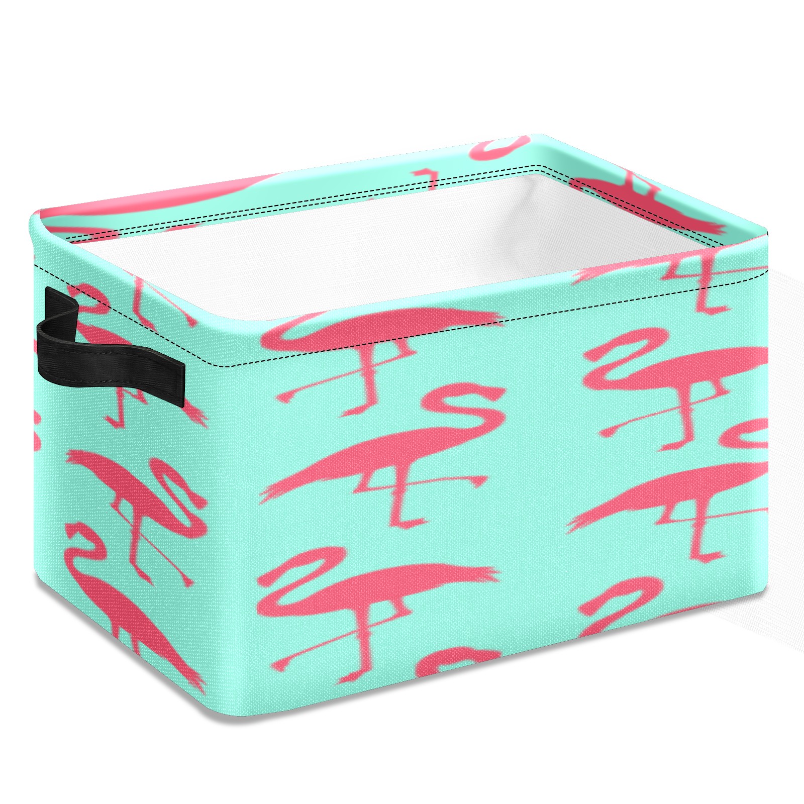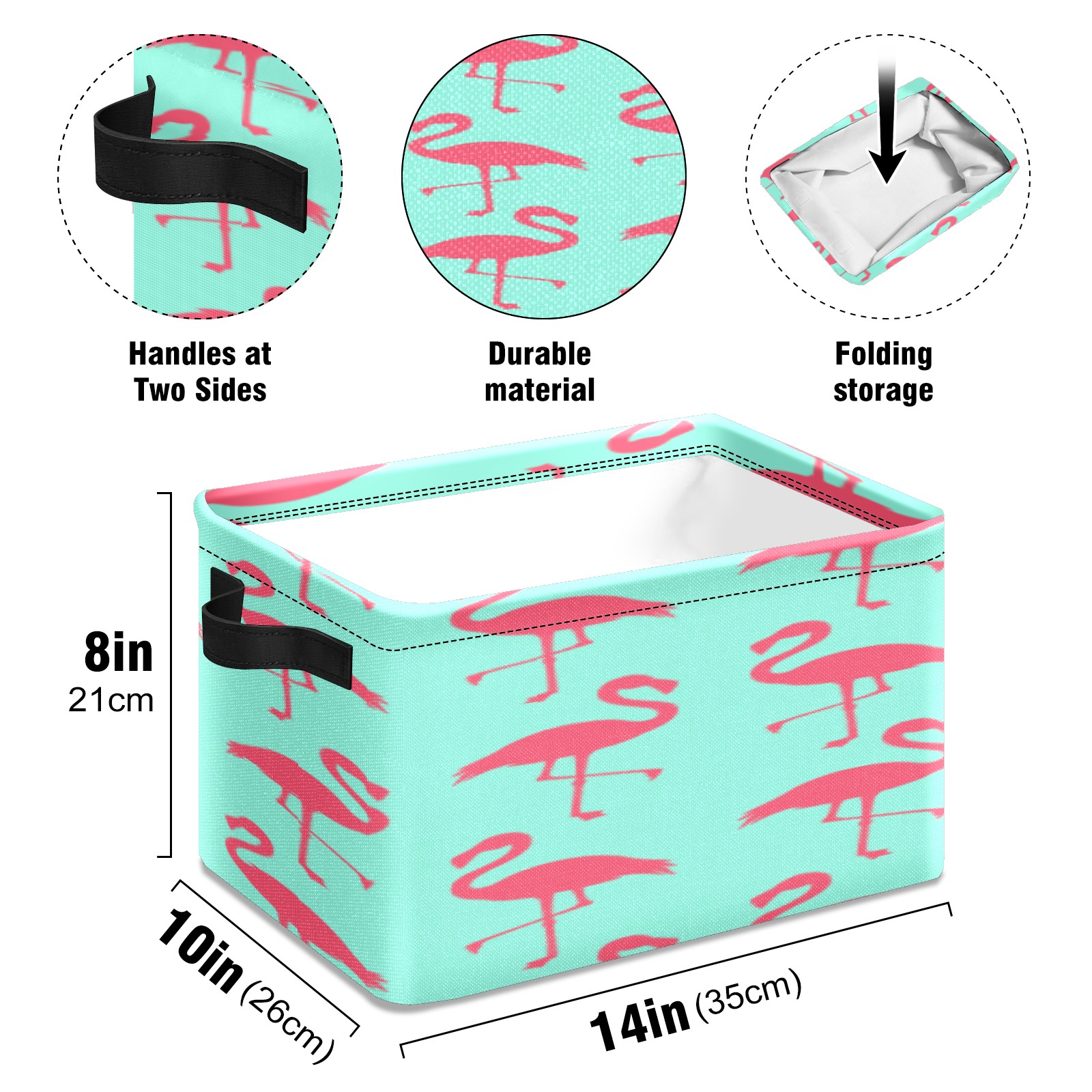 Collapsible 600D Oxford Storage Basket with Flamingos Pattern - Metal Frame 10"x14"x8" Reinforced Handles, Multi-Purpose Organizer