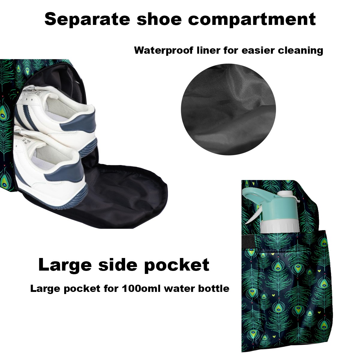 • Превосходные характеристики и материалы: Доступен в нескольких размерах: 22 см × 48 см × 35 см / 8,7 дюймов × 18,9 дюймов × 13,8 дюймов. Изготовлен из высококачественной саржевой ткани, легкий, прочный и долговечный. Научно организованное хранение: Просторное основное отделение вмещает одежду и обувь; удобный карман для хранения мелких предметов, таких как наушники и телефоны; вентилируемое отделение для обуви (подходит для обуви 10-го размера) + водонепроницаемый мешок для разделения сухих и влажных вещей и предотвращения запаха. Универсальность: Может использоваться как спортивная сумка, дорожная сумка или повседневная сумка, удовлетворяя различные потребности, такие как игра в пиклбол, поездки на выходные и ночевки в больнице. Идеальная интеграция для фитнеса и поездок на работу: Разработан для активного образа жизни, подходит для всего, от занятий на велотренажерах и силовых тренировок до послешкольных обедов и коротких деловых поездок. Сочетание функциональности и эстетики: оптимизированное расположение карманов уравновешивает практичность и стиль, удовлетворяя как функциональные, так и эстетические потребности.
