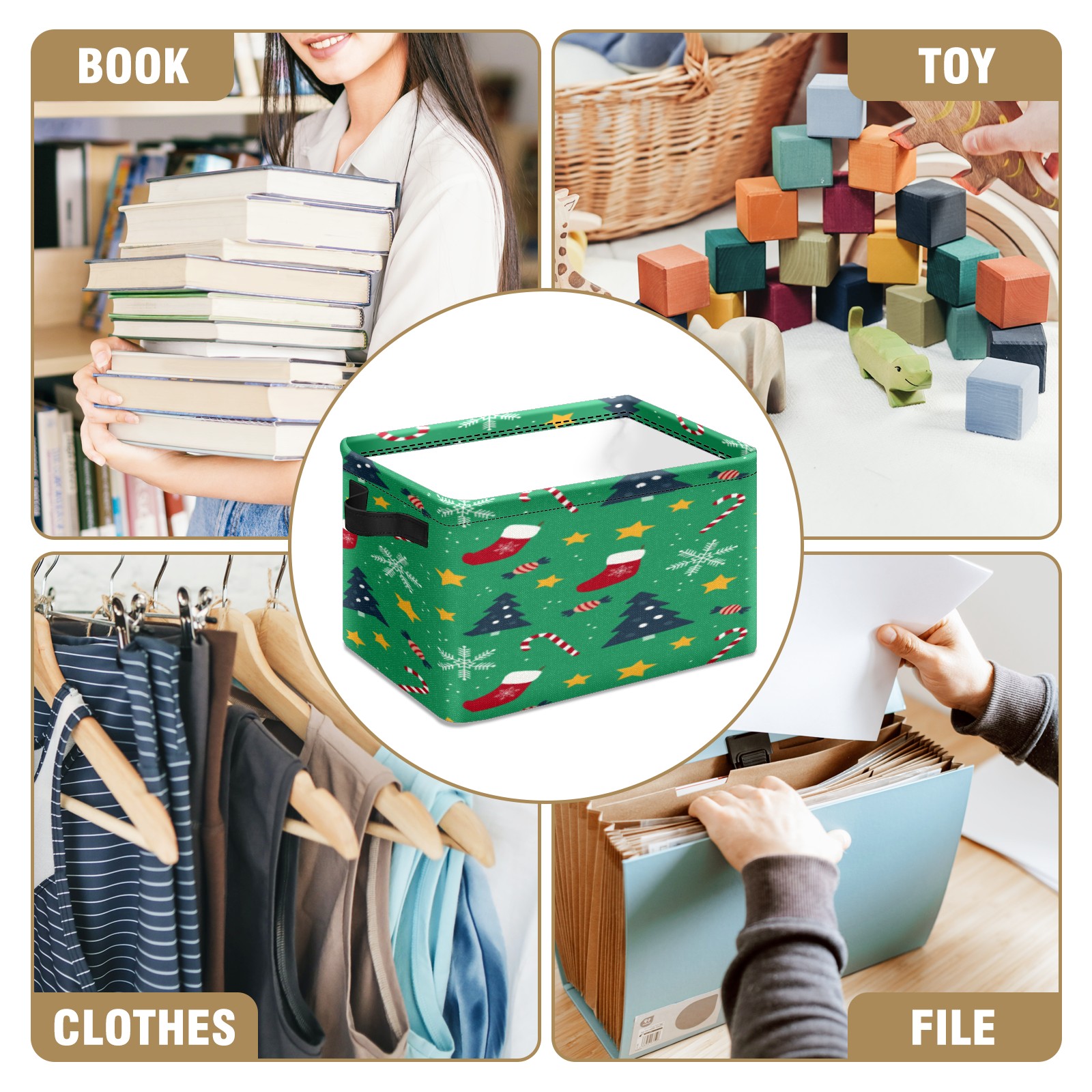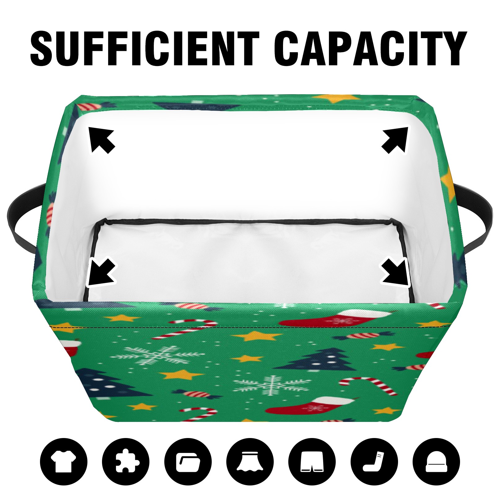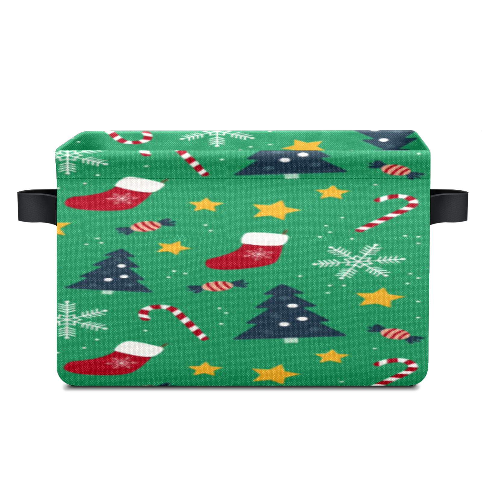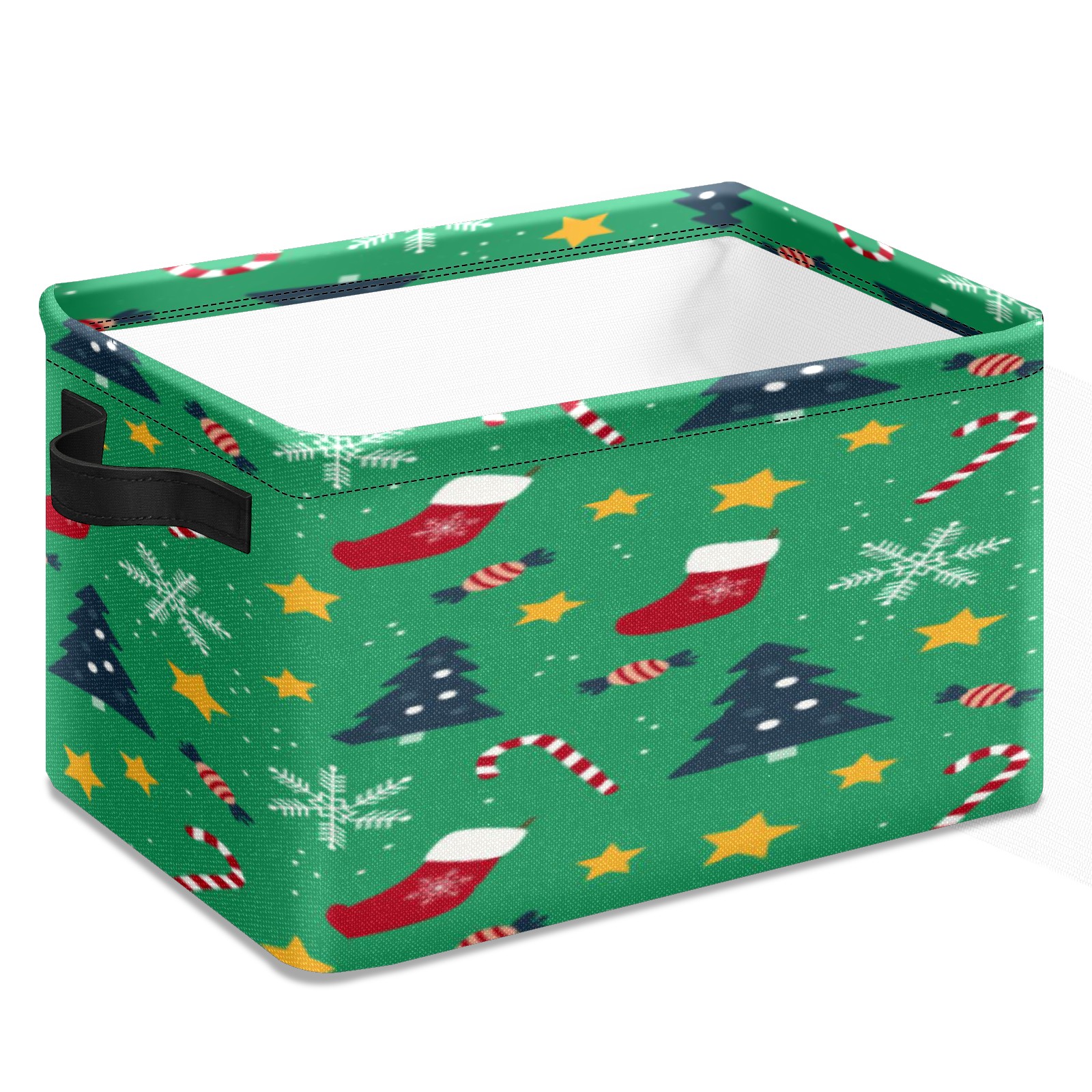 Collapsible 600D Oxford Storage Basket with Christmas Tree Hat Element - Metal Frame 10"x14"x8" Reinforced Handles, Multi-Purpose Organizer