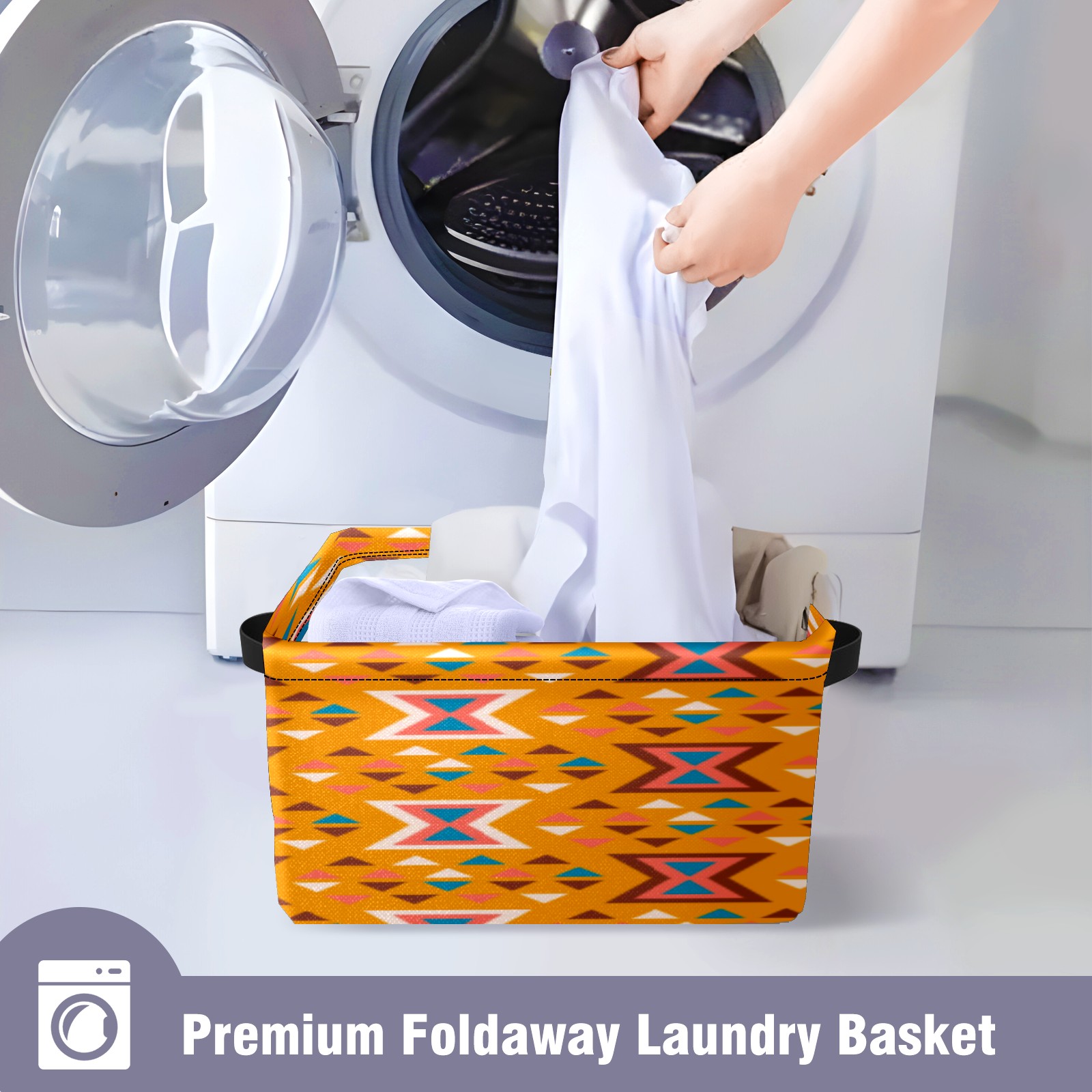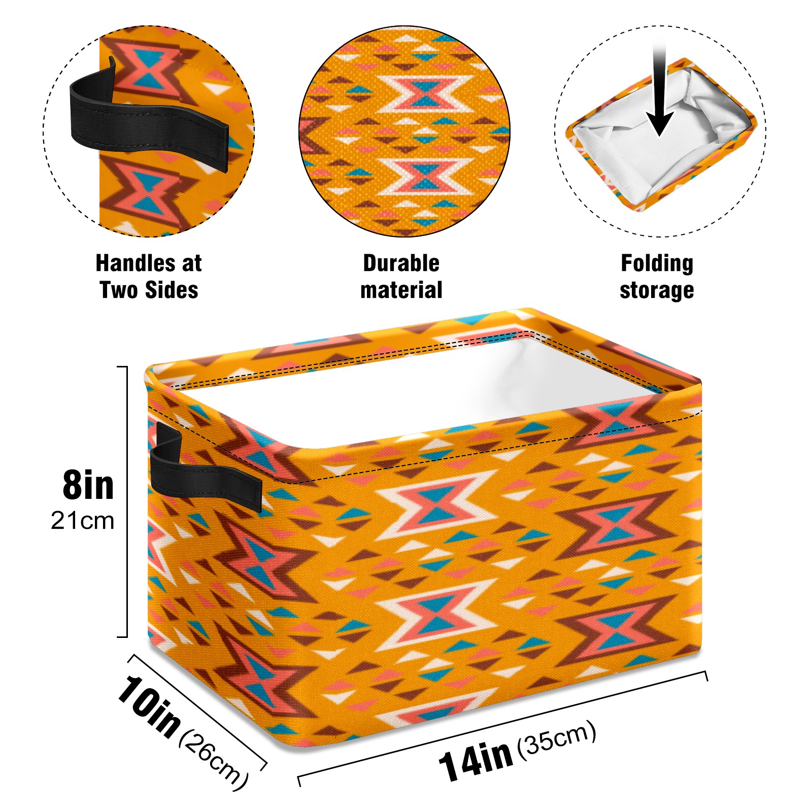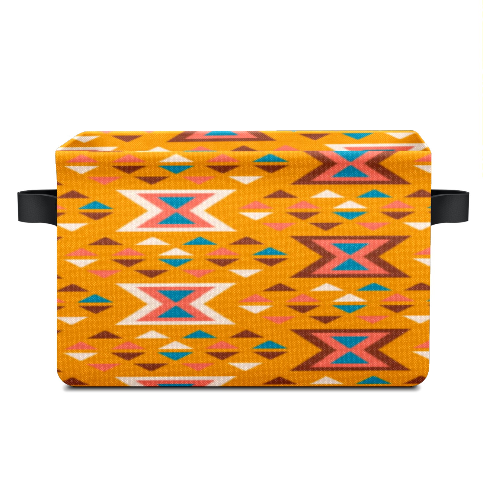 Collapsible 600D Oxford Storage Basket with African Original Ethnic Diamond Pattern - Metal Frame 10"x14"x8" Reinforced Handles, Multi-Purpose Organizer
