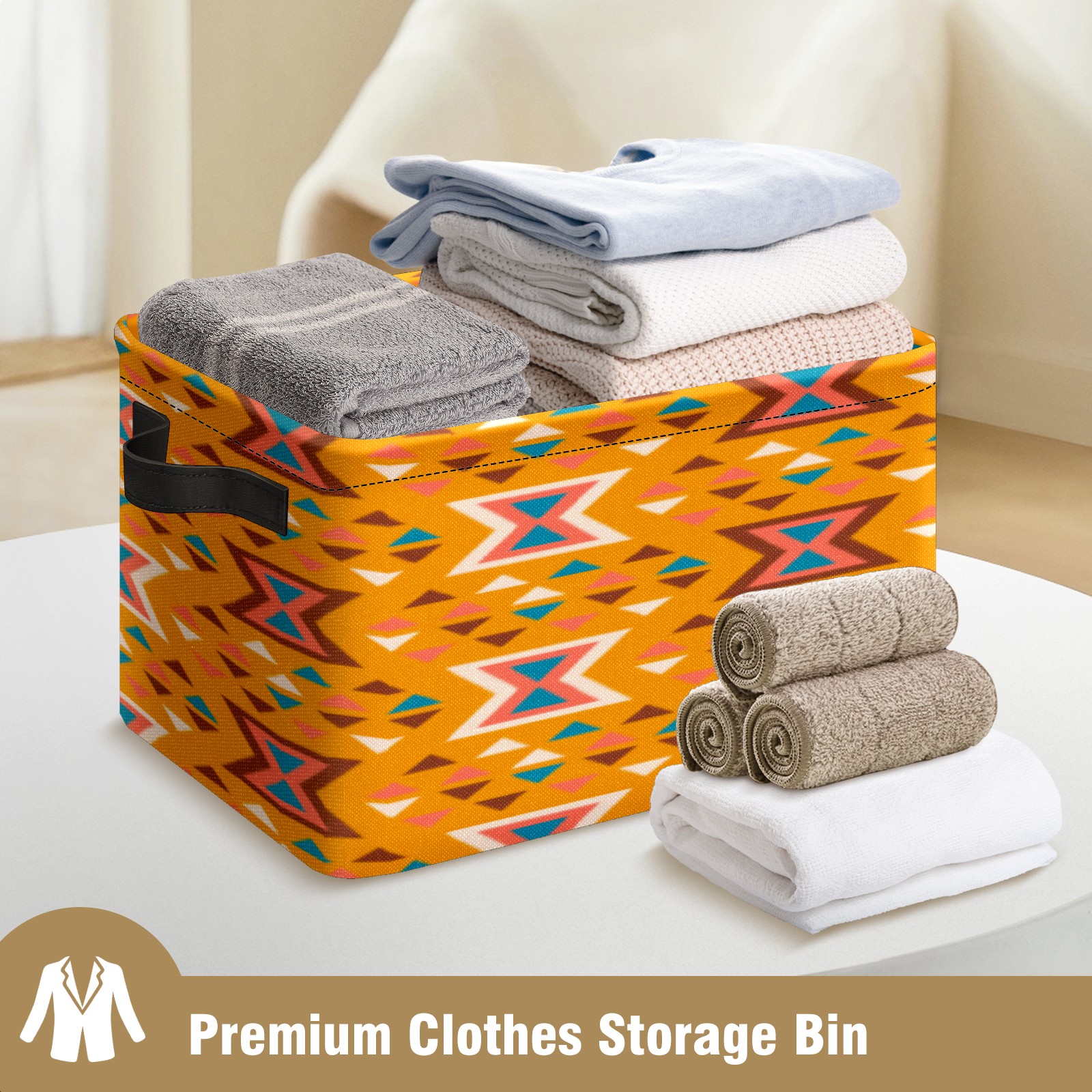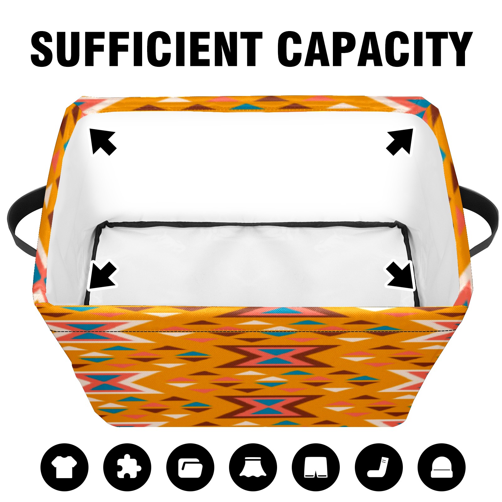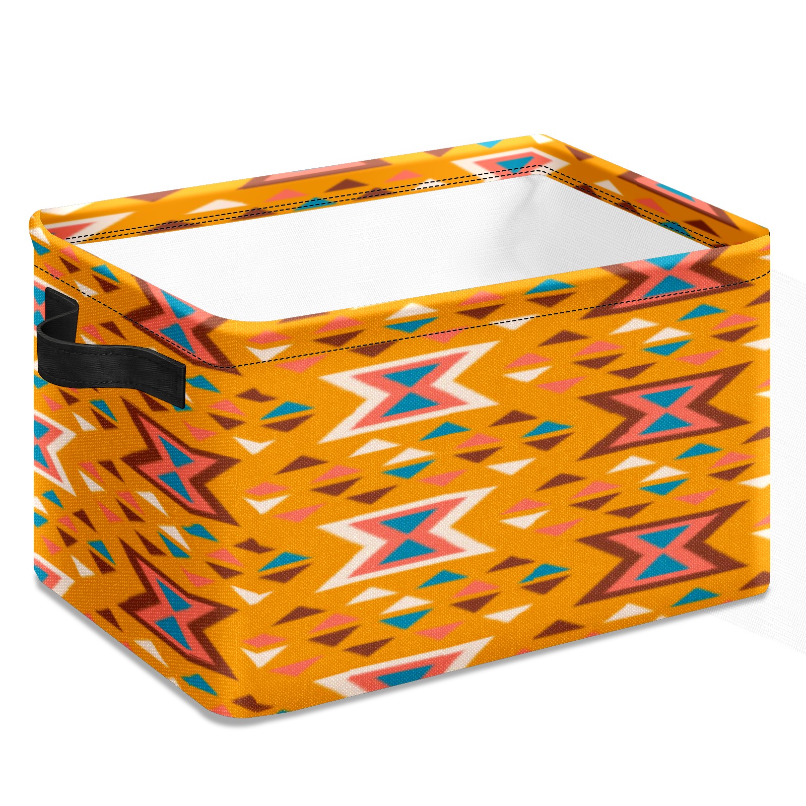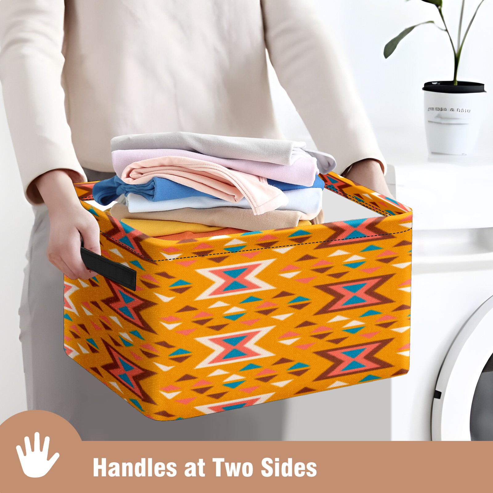 Collapsible 600D Oxford Storage Basket with African Original Ethnic Diamond Pattern - Metal Frame 10"x14"x8" Reinforced Handles, Multi-Purpose Organizer