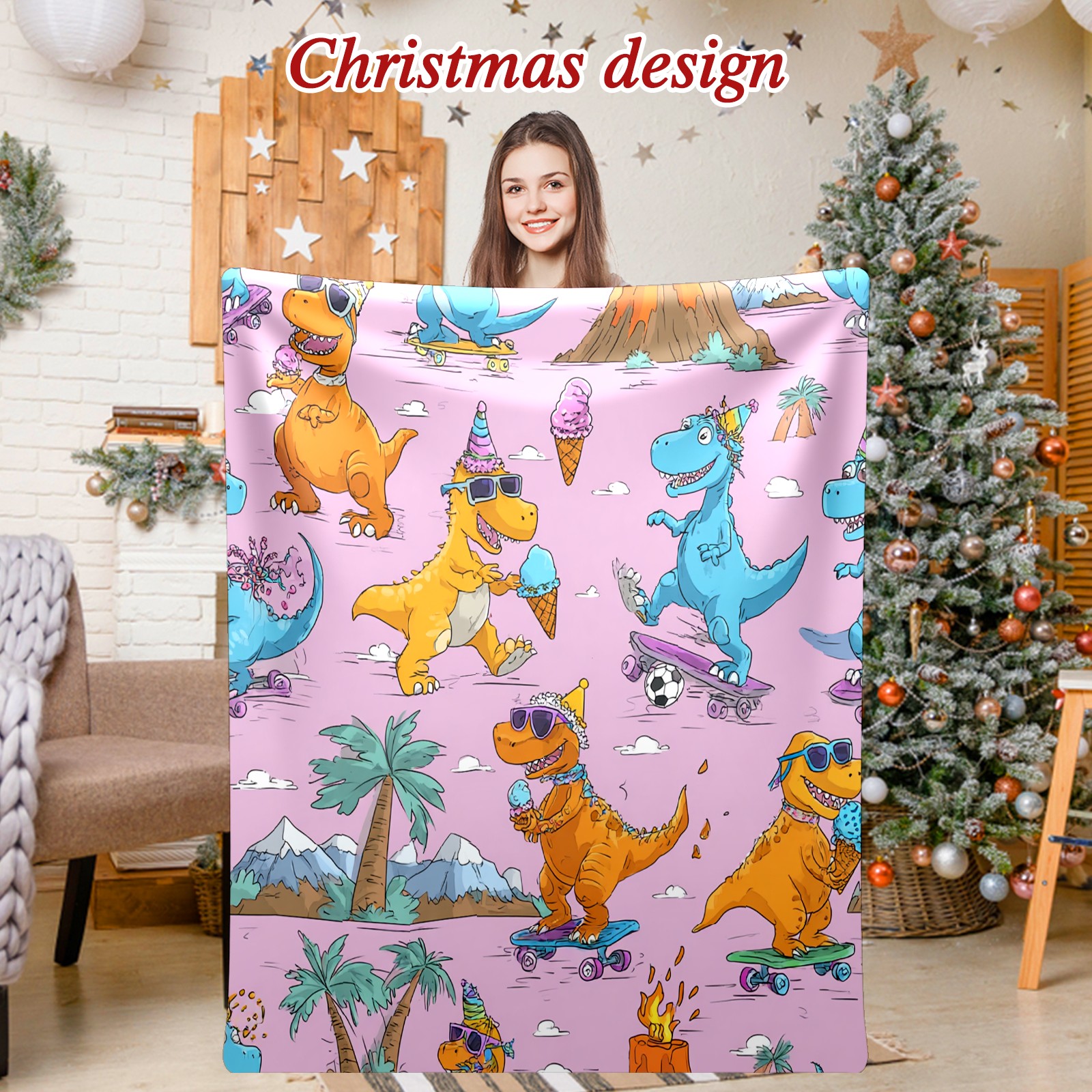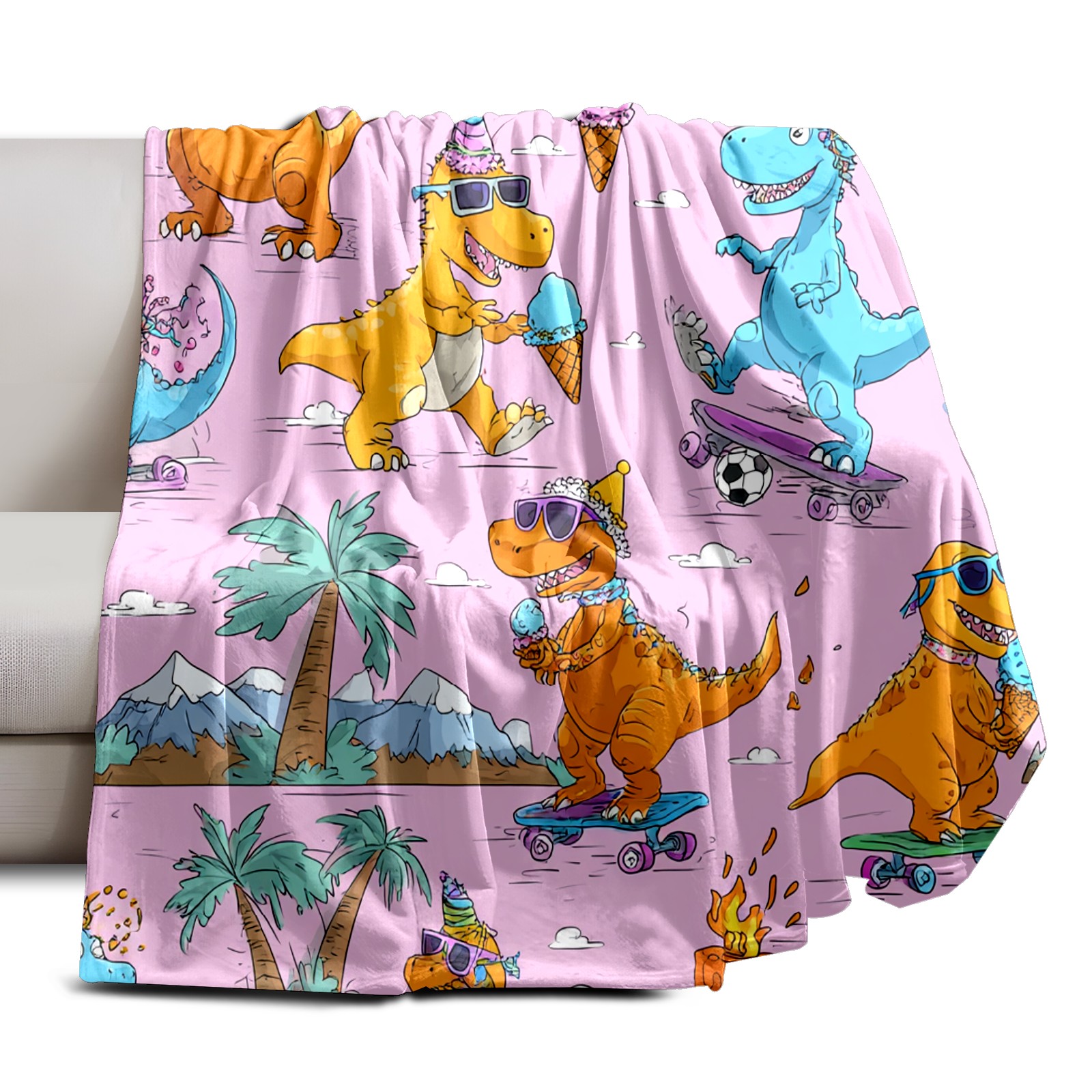 Премиальная фланелевая одеяло Playful Dinosaur Pink