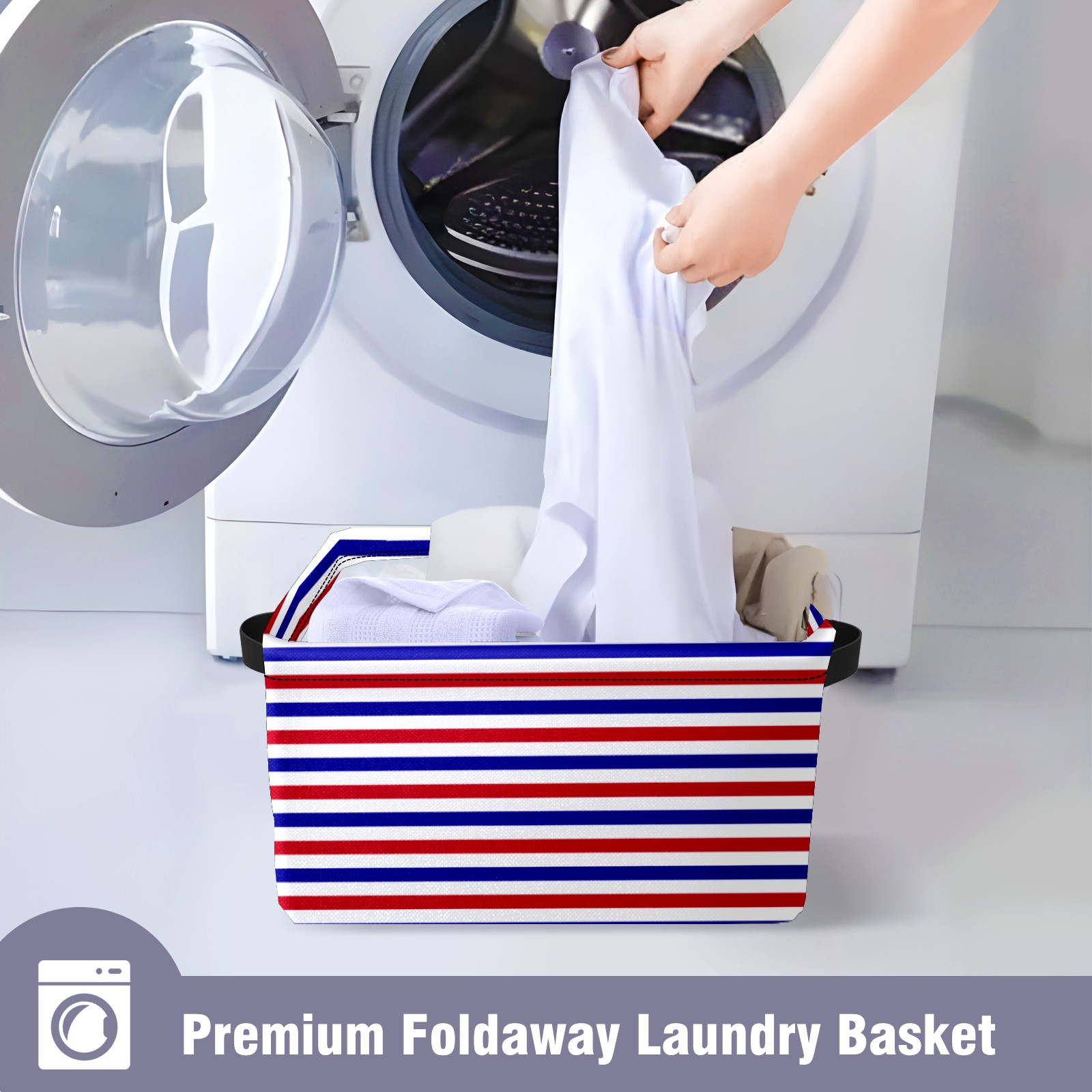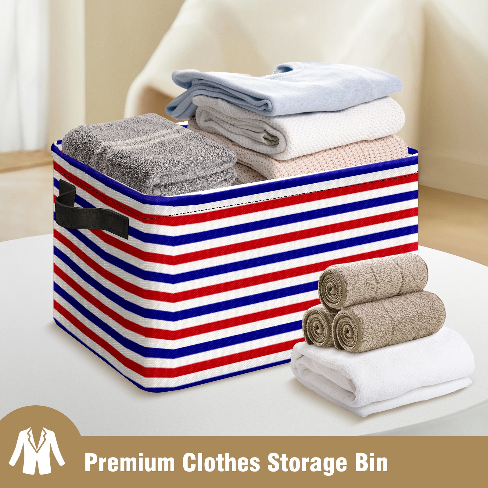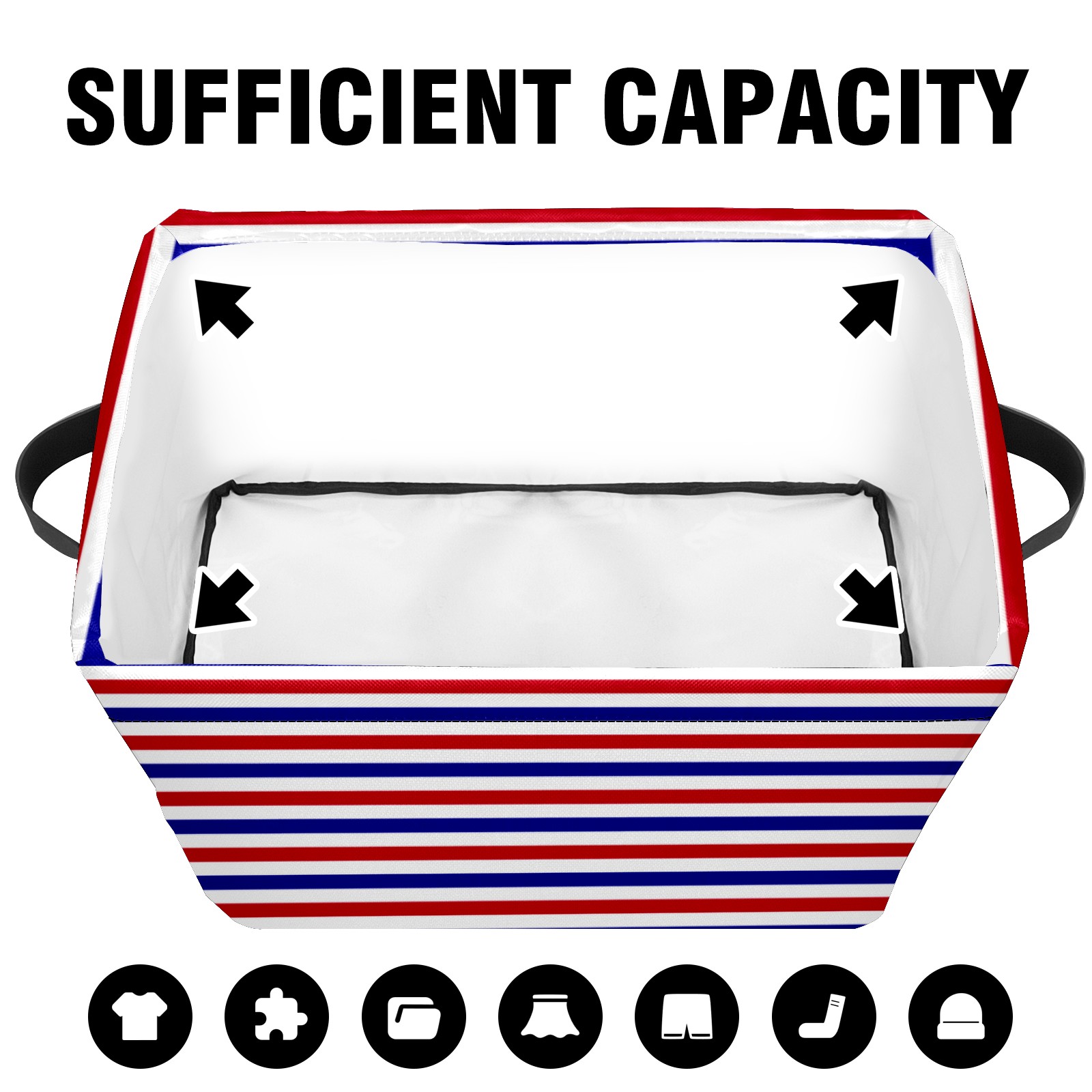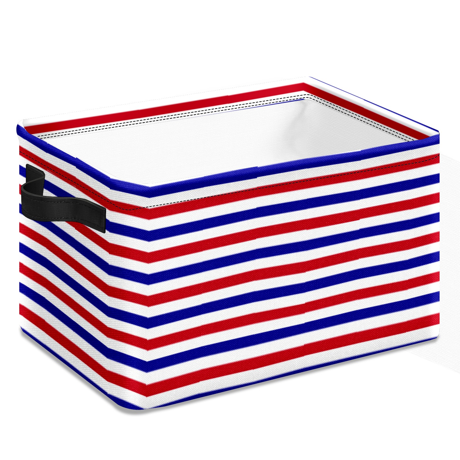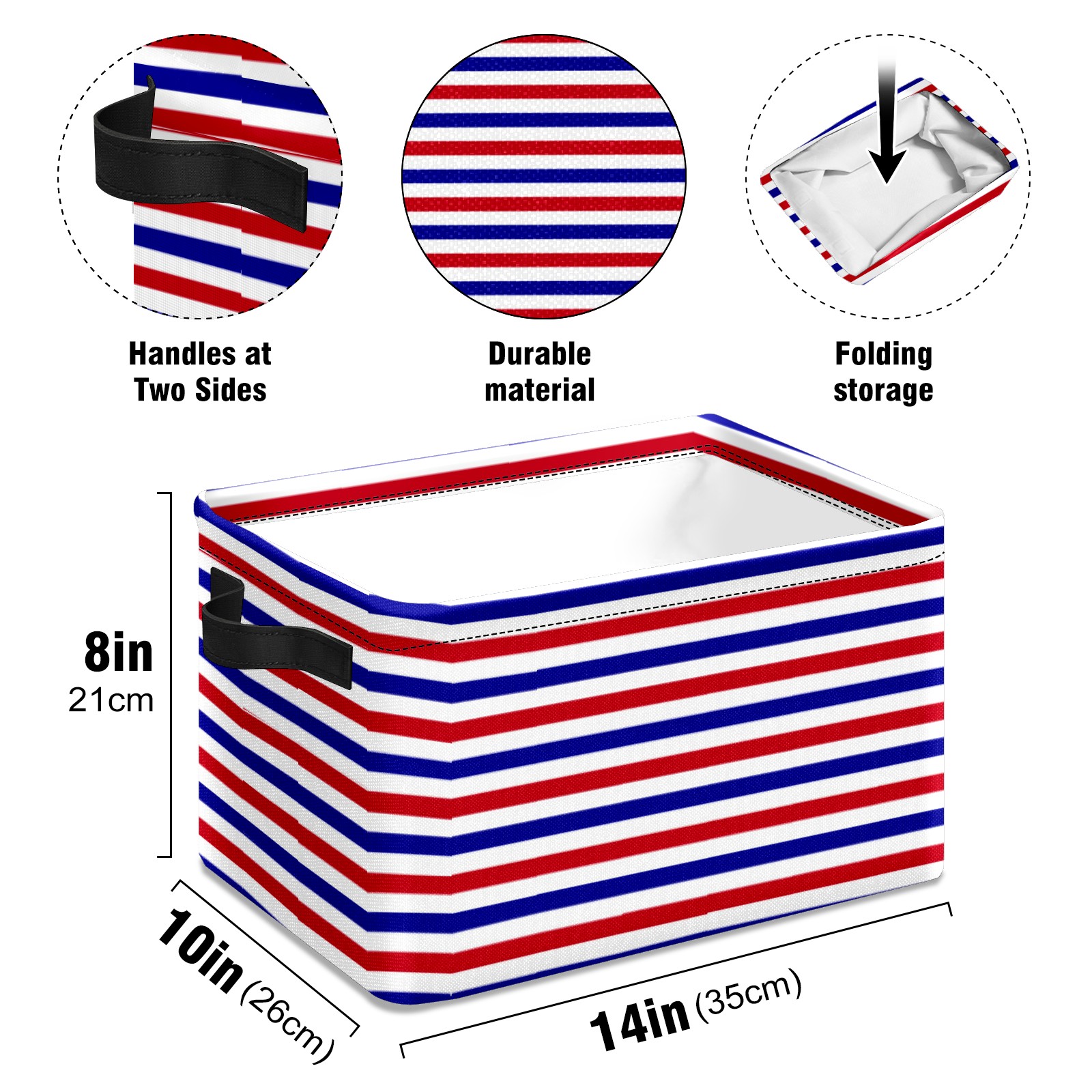 Collapsible 600D Oxford Storage Basket with Navy Blue Red White Striped - Metal Frame 10"x14"x8" Reinforced Handles, Multi-Purpose Organizer
