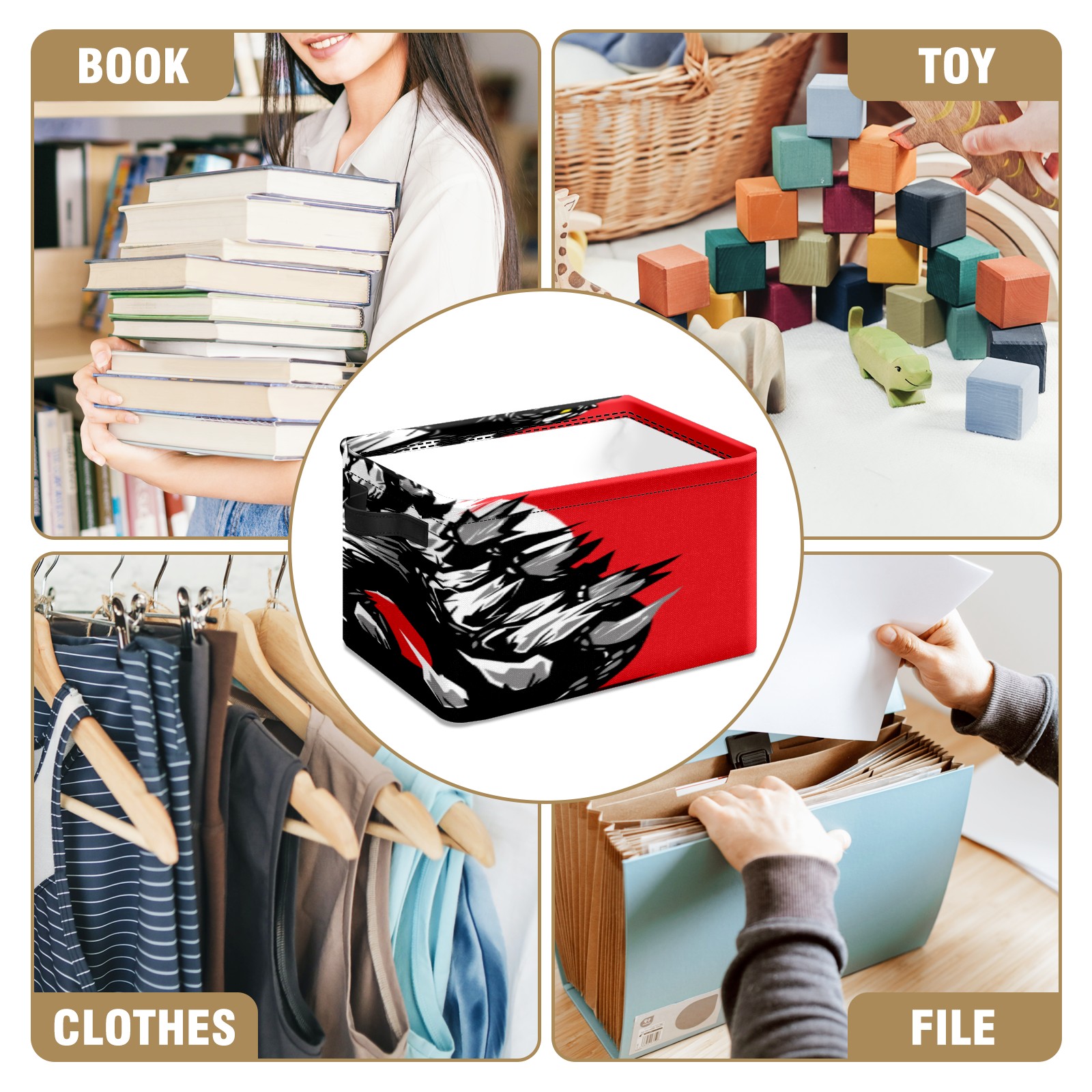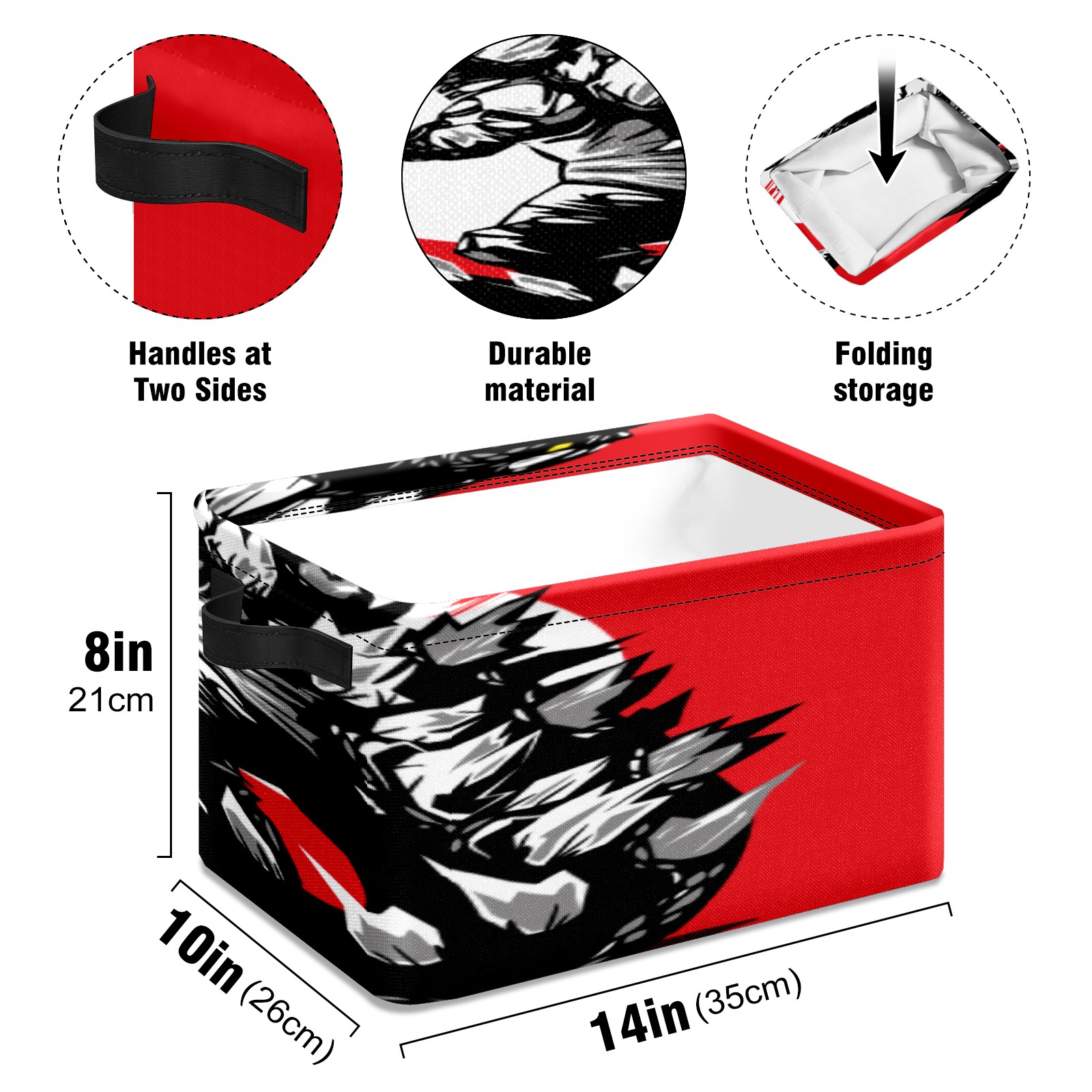 Collapsible 600D Oxford Storage Basket with Godzilla Dinosaur - Metal Frame 10"x14"x8" Reinforced Handles, Multi-Purpose Organizer