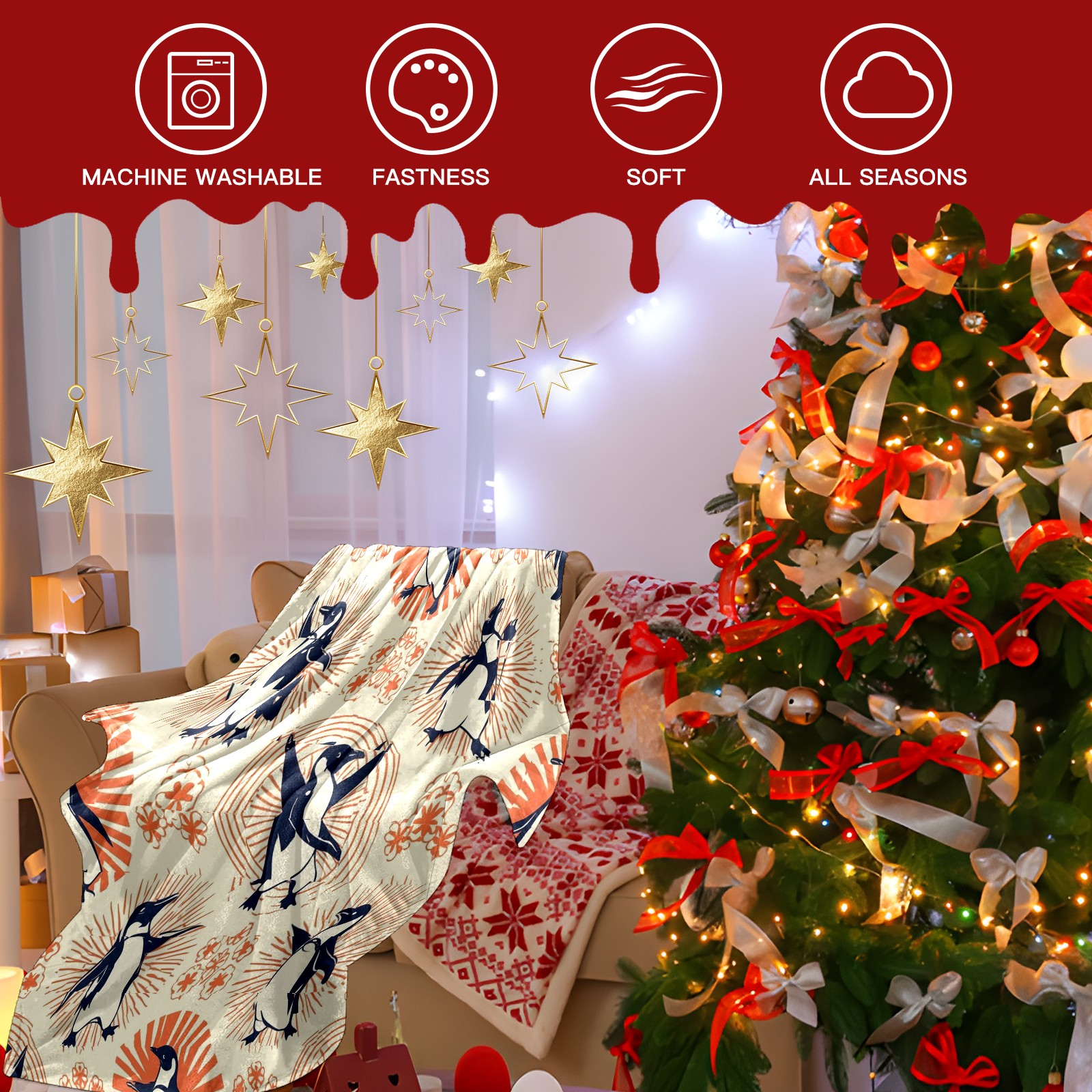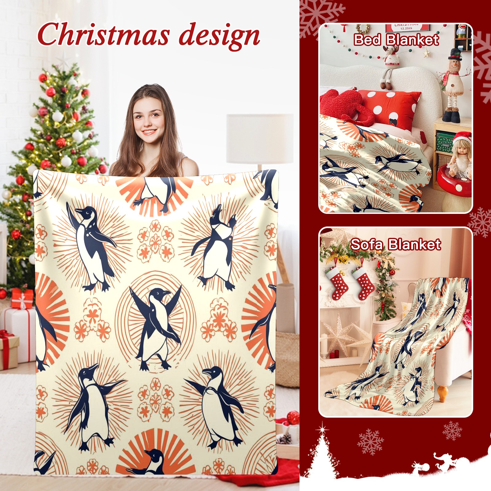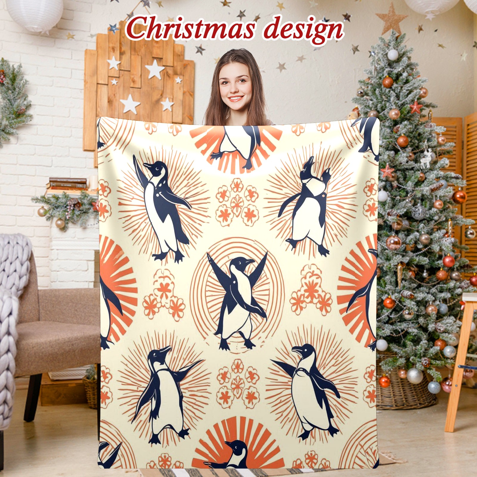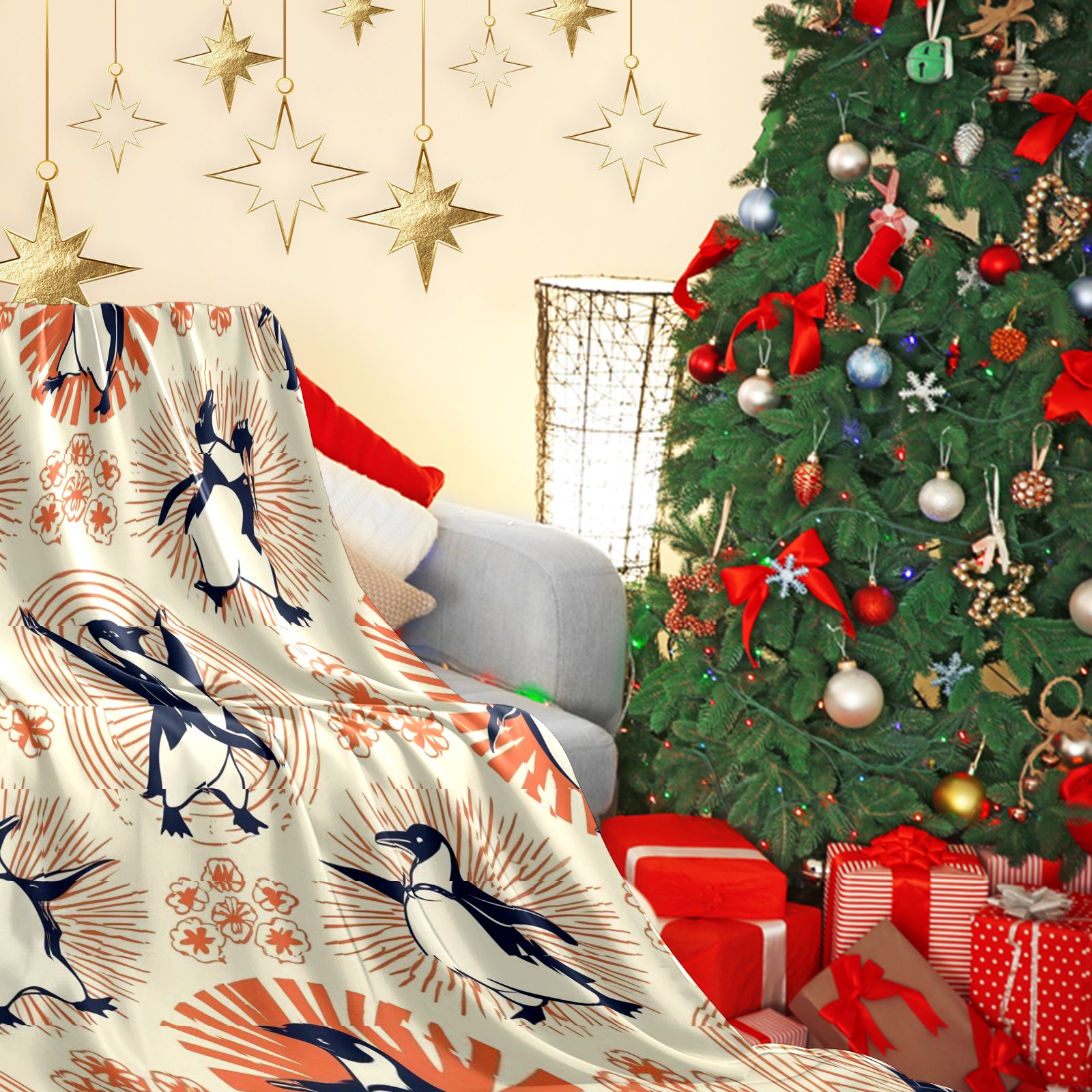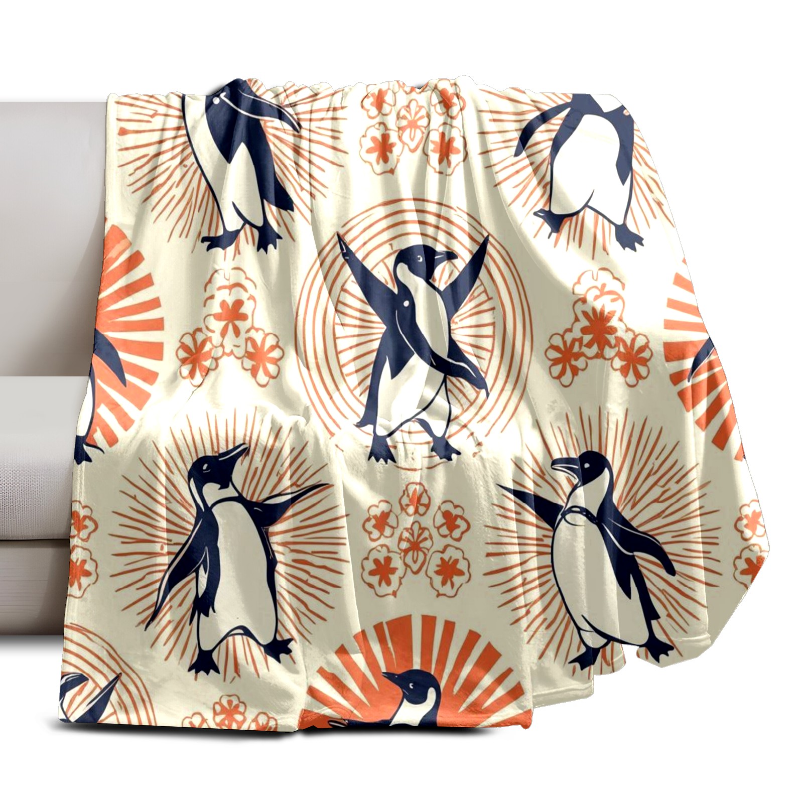 Премиальная фланелевая одеяло Playful Penguin Orange