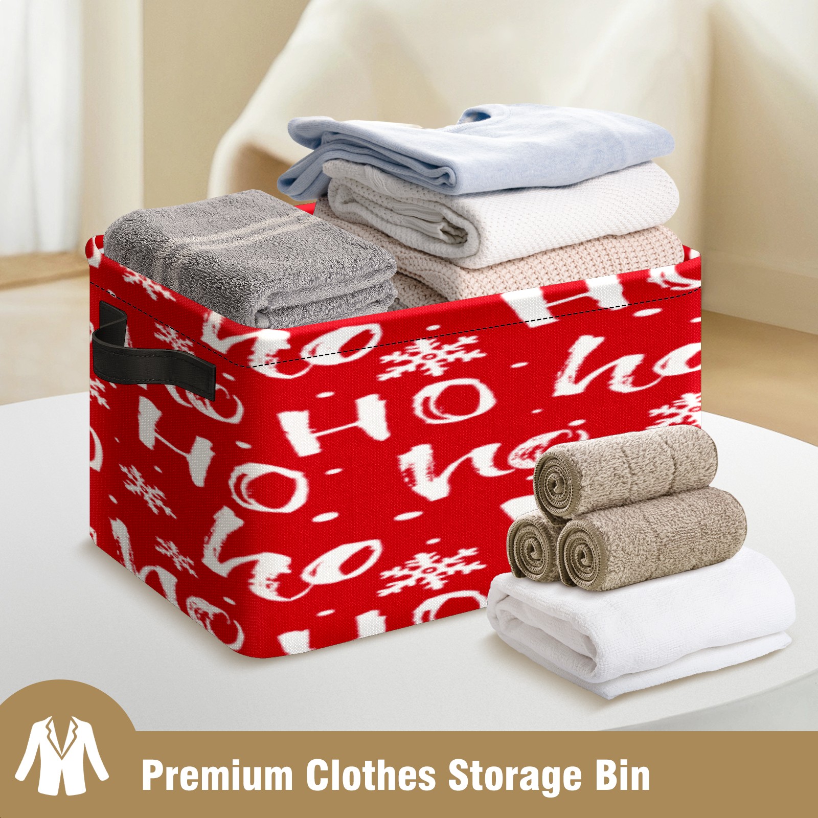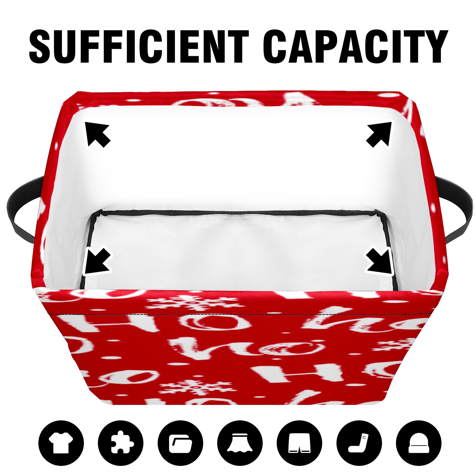 Collapsible 600D Oxford Storage Basket with Red Christmas Hohoho Santa Snowflake - Metal Frame 10"x14"x8" Reinforced Handles, Multi-Purpose Organizer