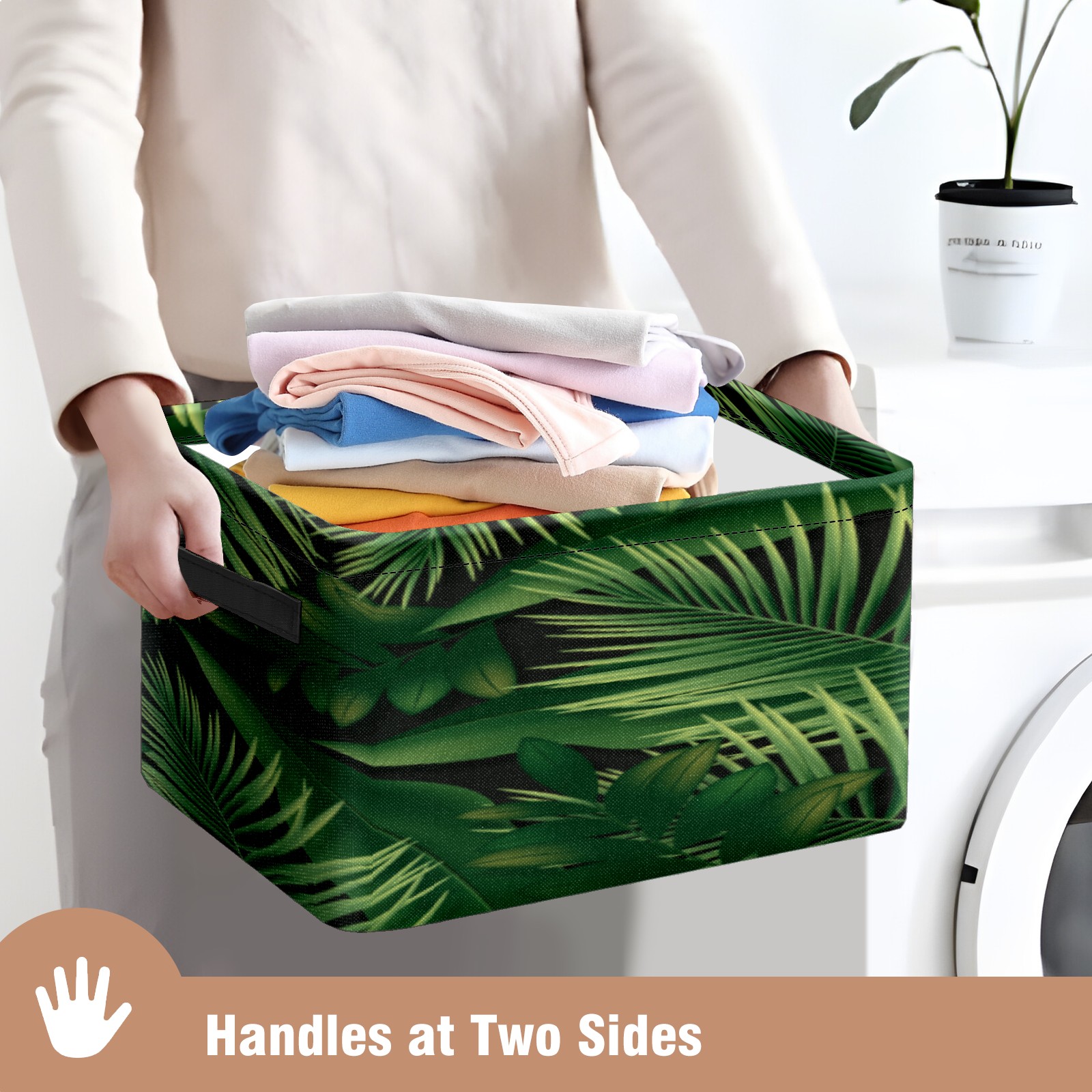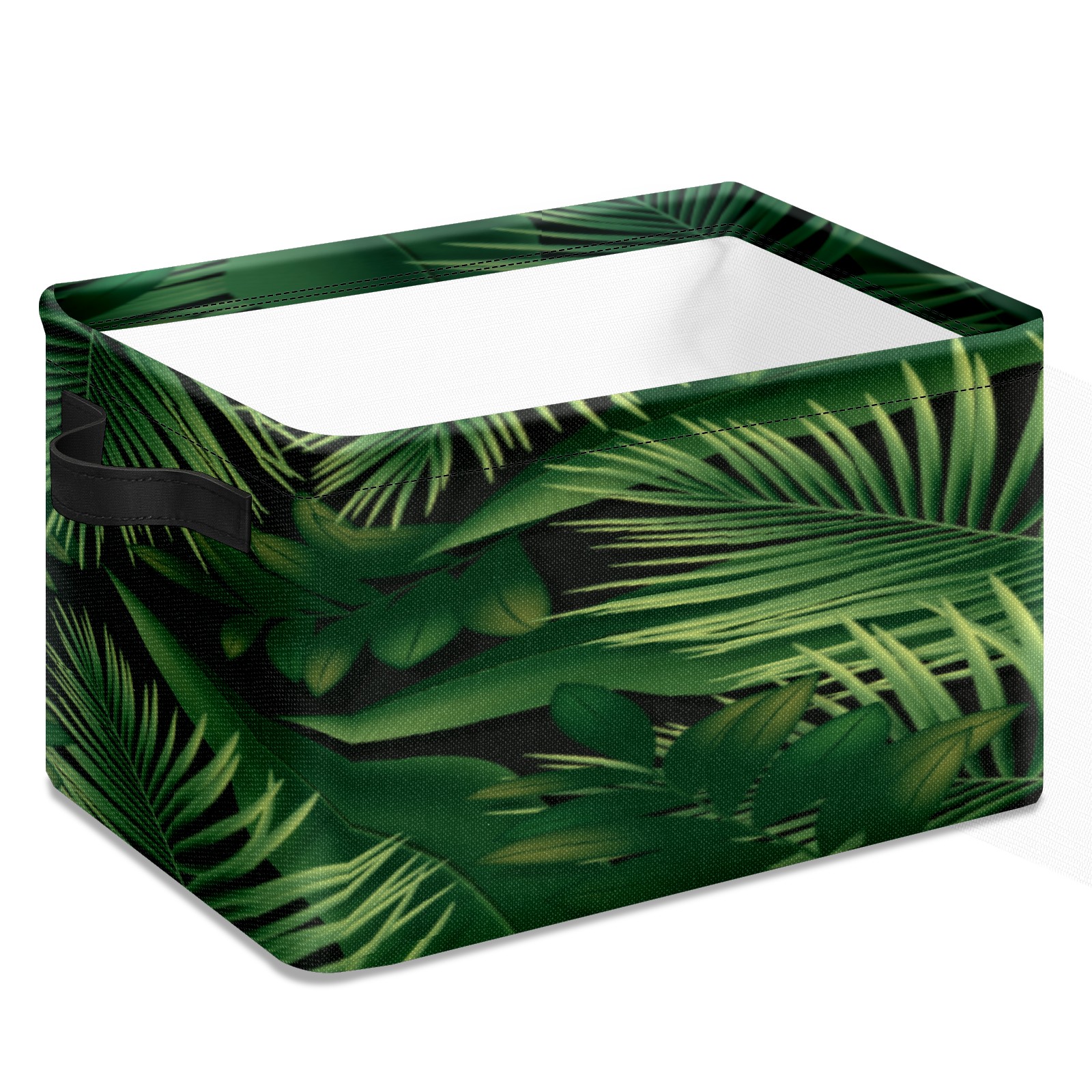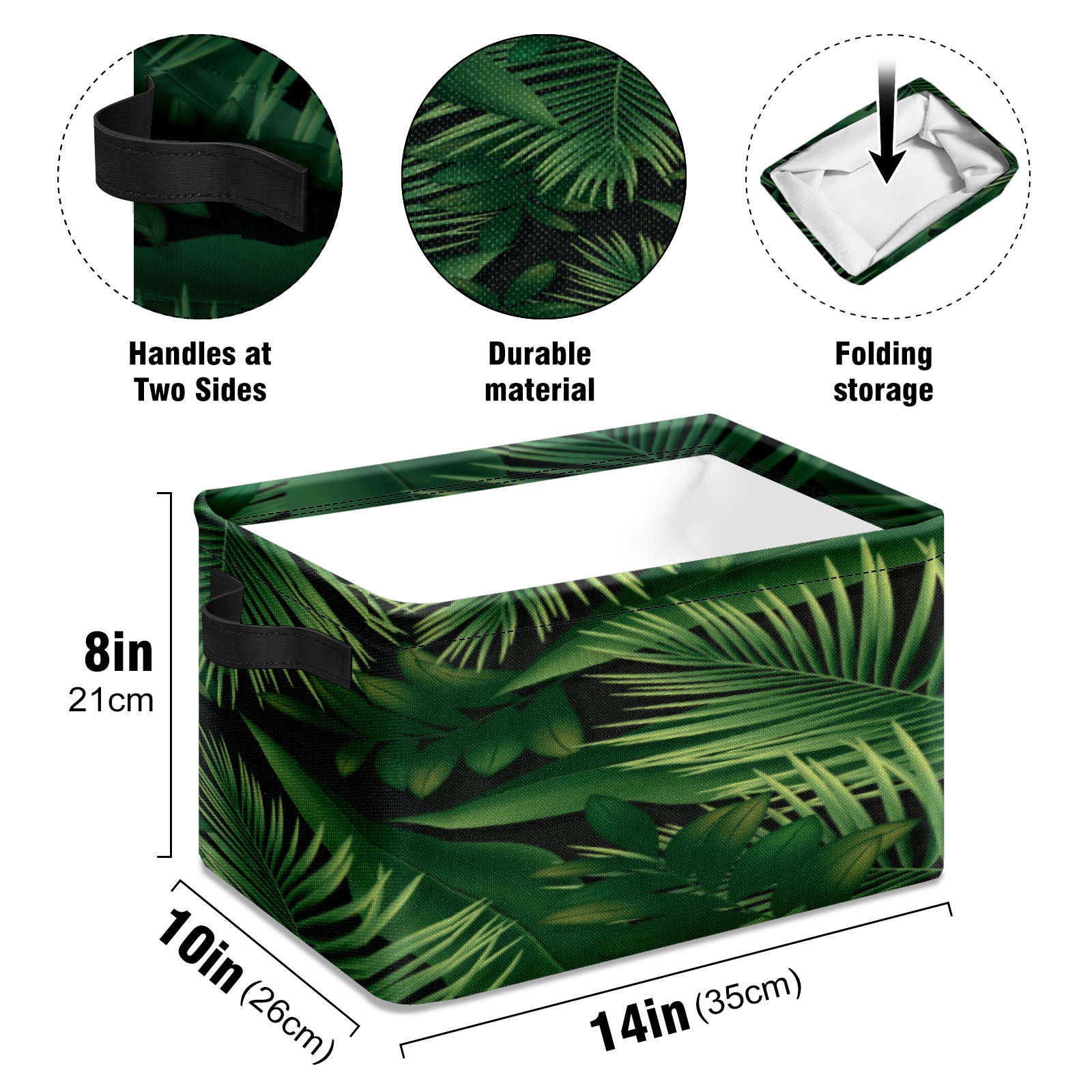 Collapsible 600D Oxford Storage Basket with Green Leaves Foliage Plant - Metal Frame 10"x14"x8" Reinforced Handles, Multi-Purpose Organizer