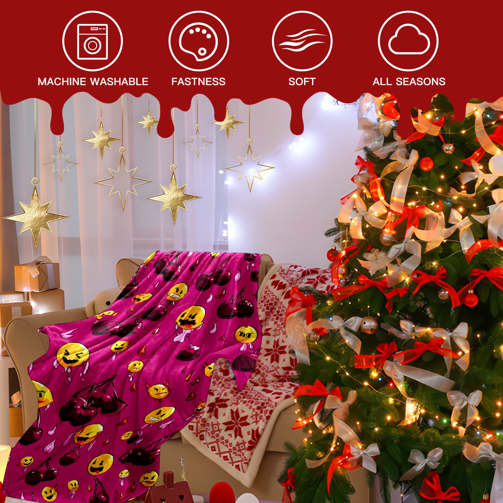 Премиальная фланелевая одеяло Cheerful Emoji Red