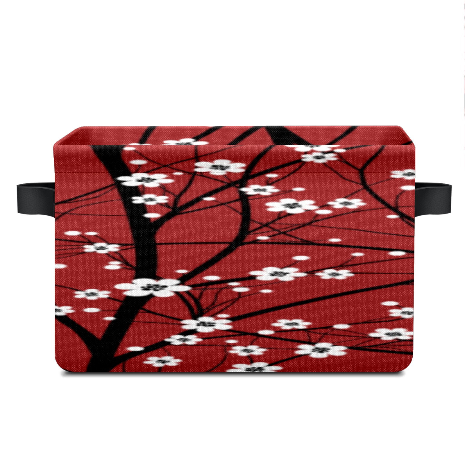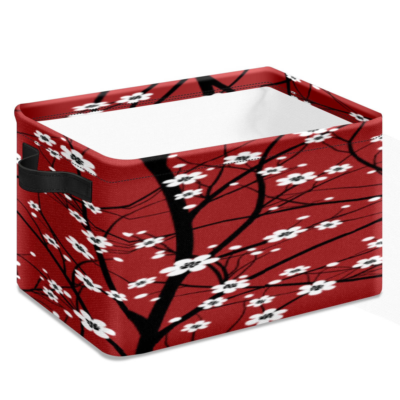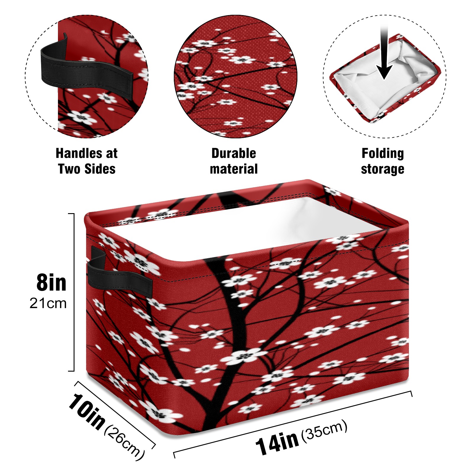 Collapsible 600D Oxford Storage Basket with Japanese Cherry Blossom Tree Red - Metal Frame 10"x14"x8" Reinforced Handles, Multi-Purpose Organizer