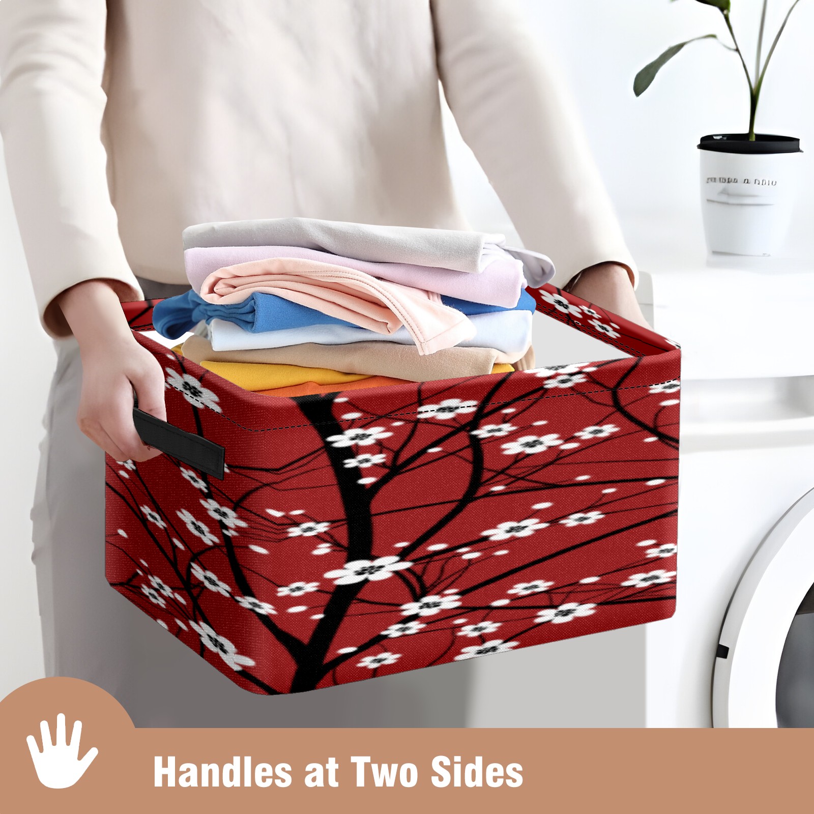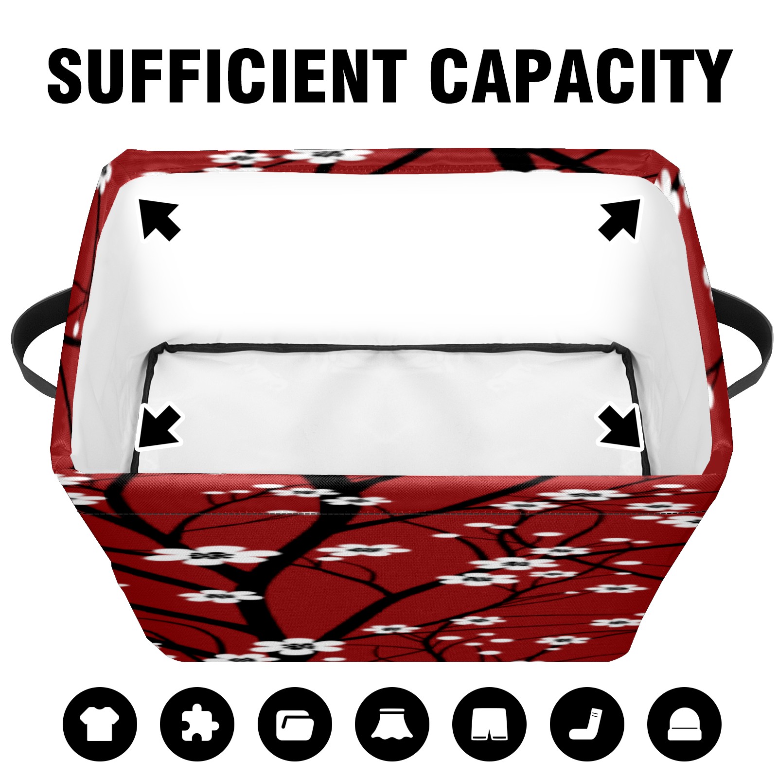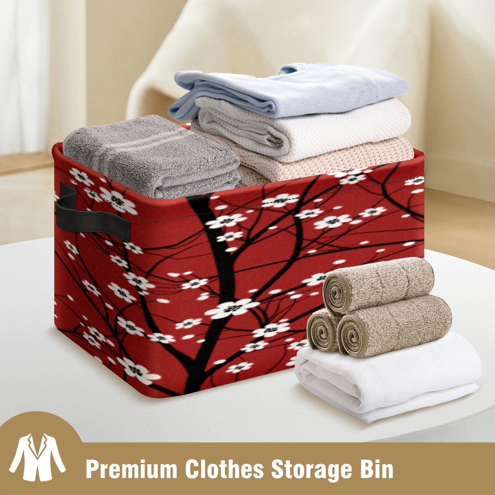 Collapsible 600D Oxford Storage Basket with Japanese Cherry Blossom Tree Red - Metal Frame 10"x14"x8" Reinforced Handles, Multi-Purpose Organizer