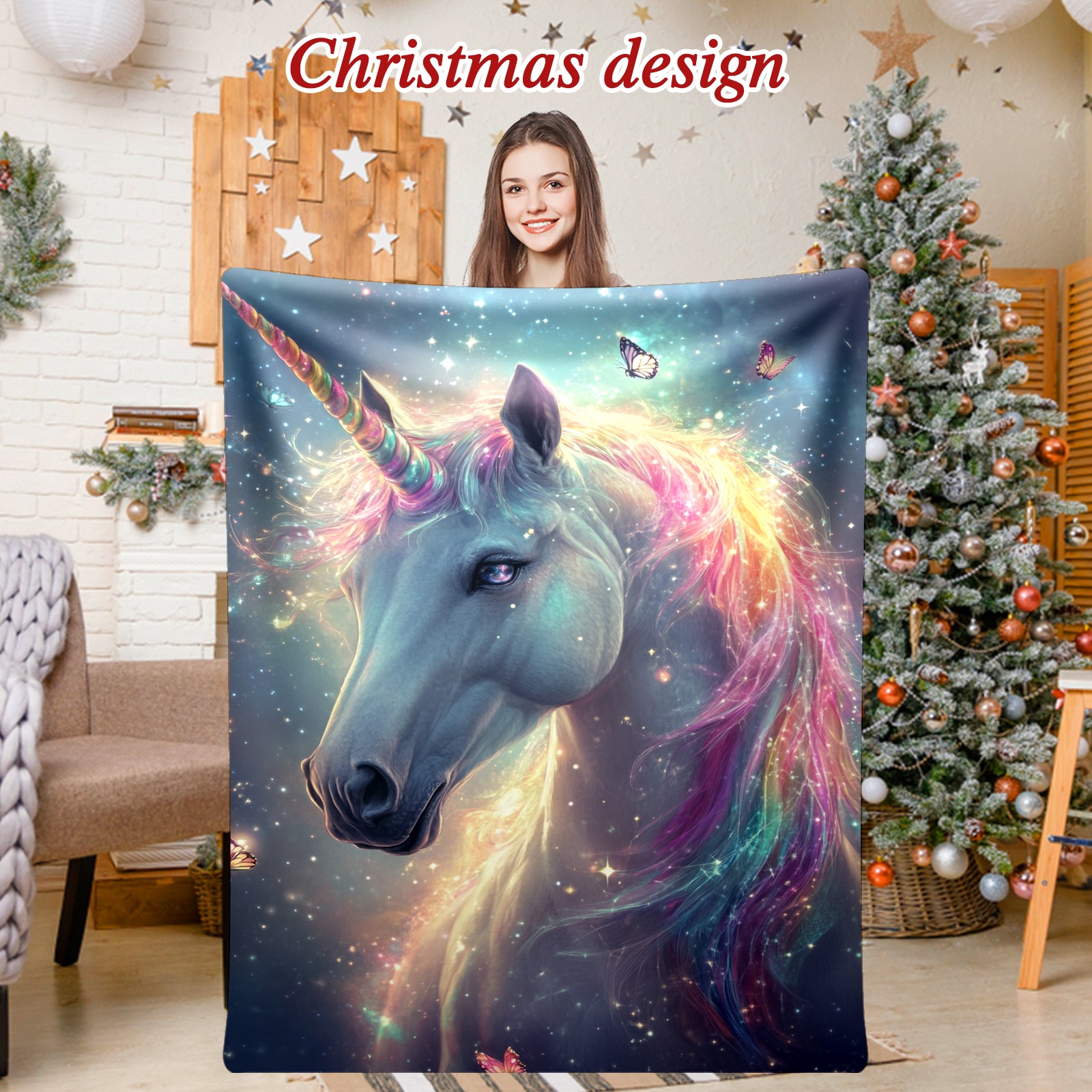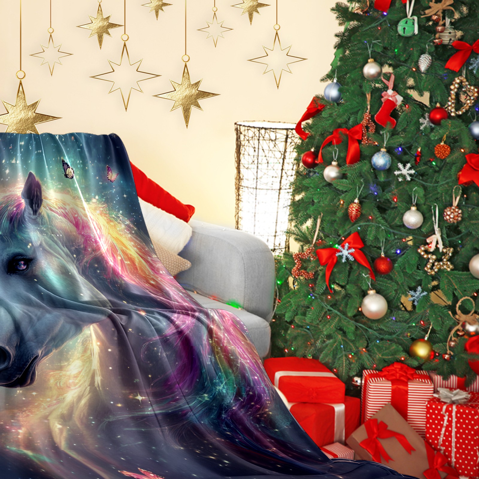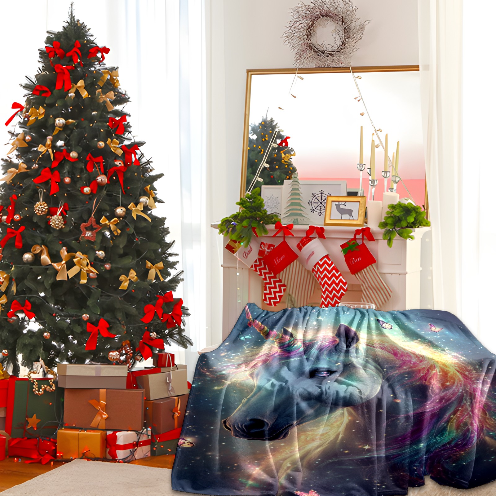 Премиальная фланелевая одеяло Dreamy Unicorn Purple