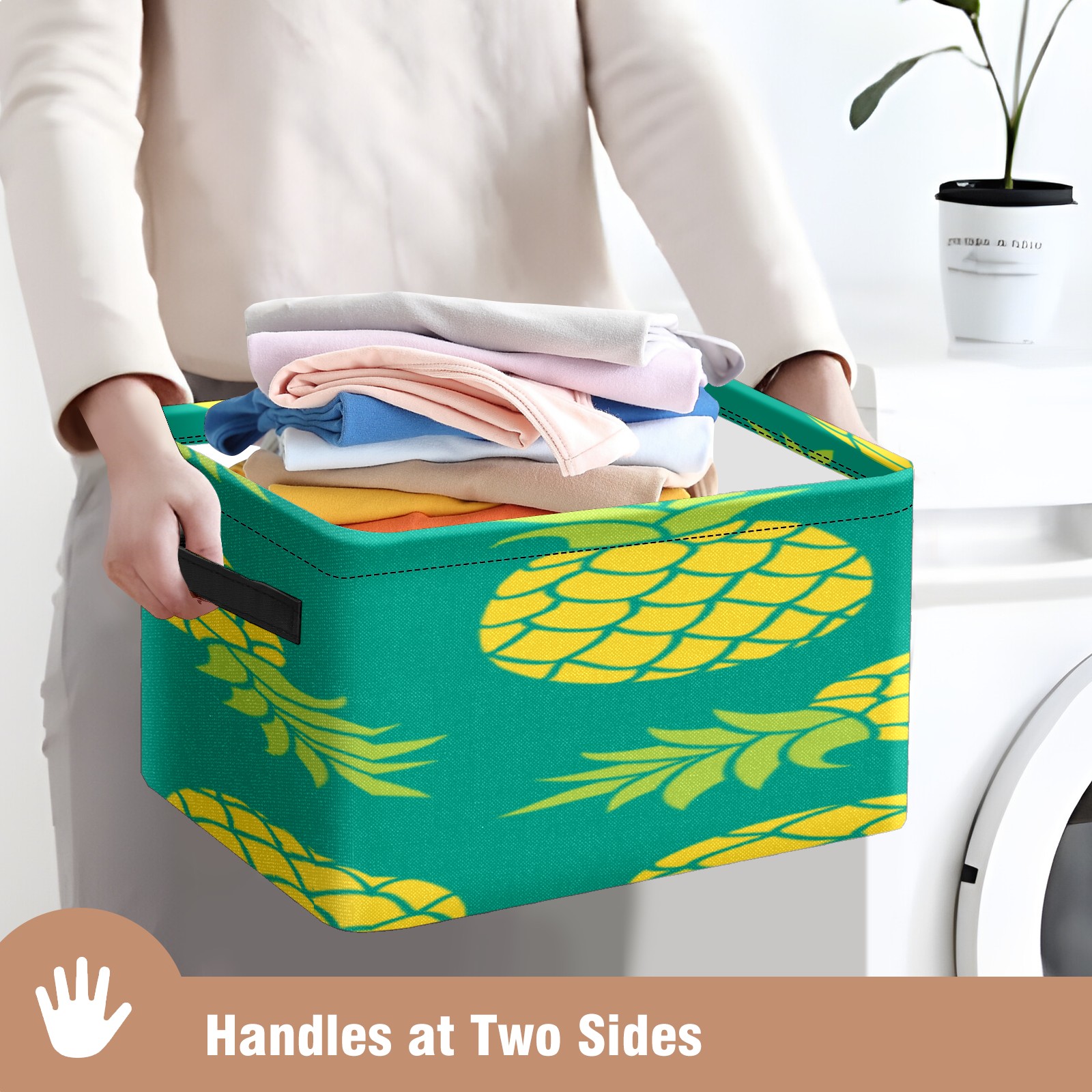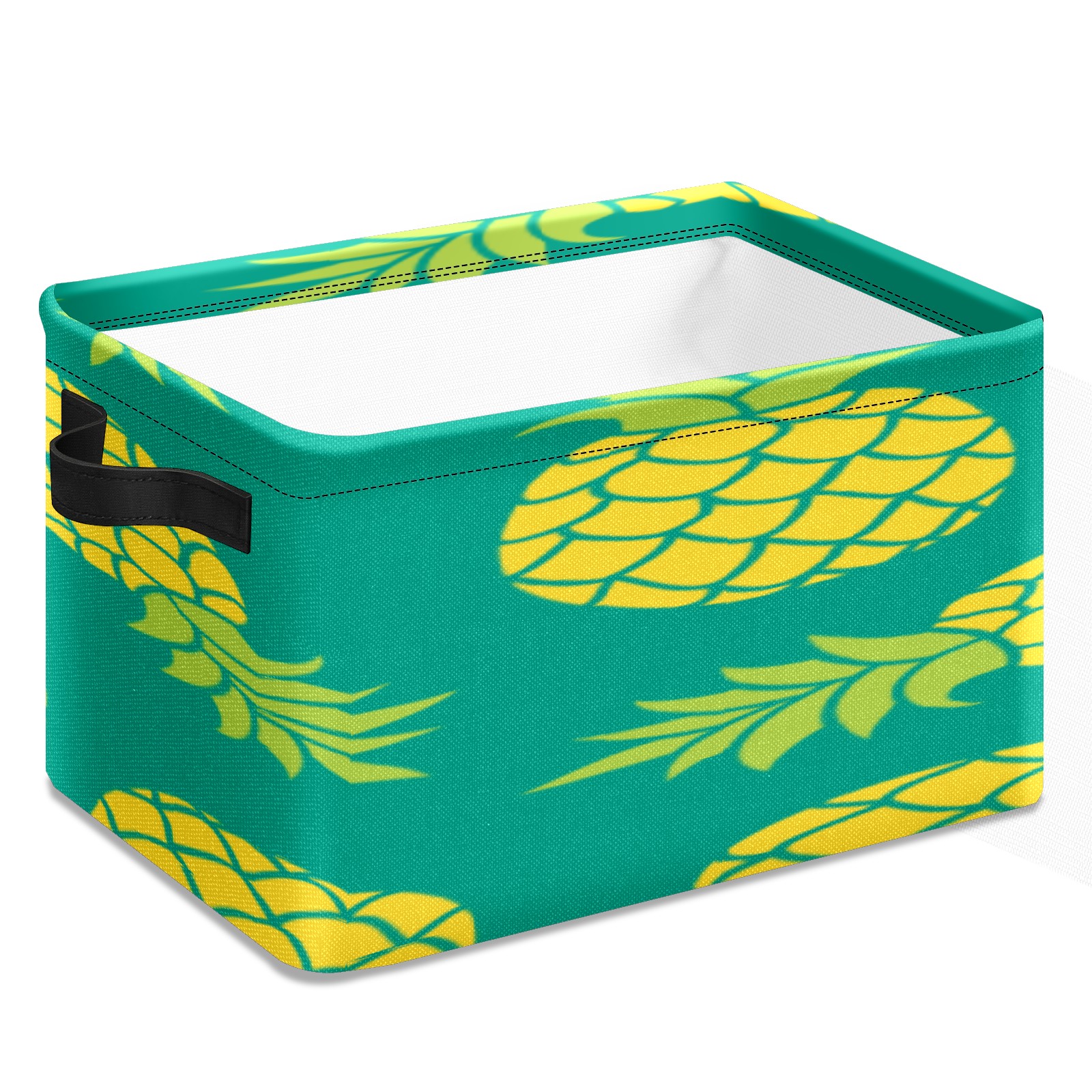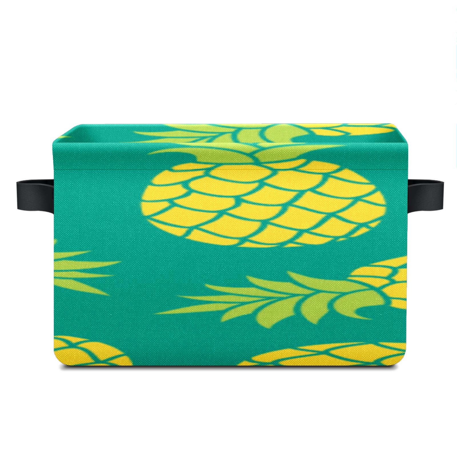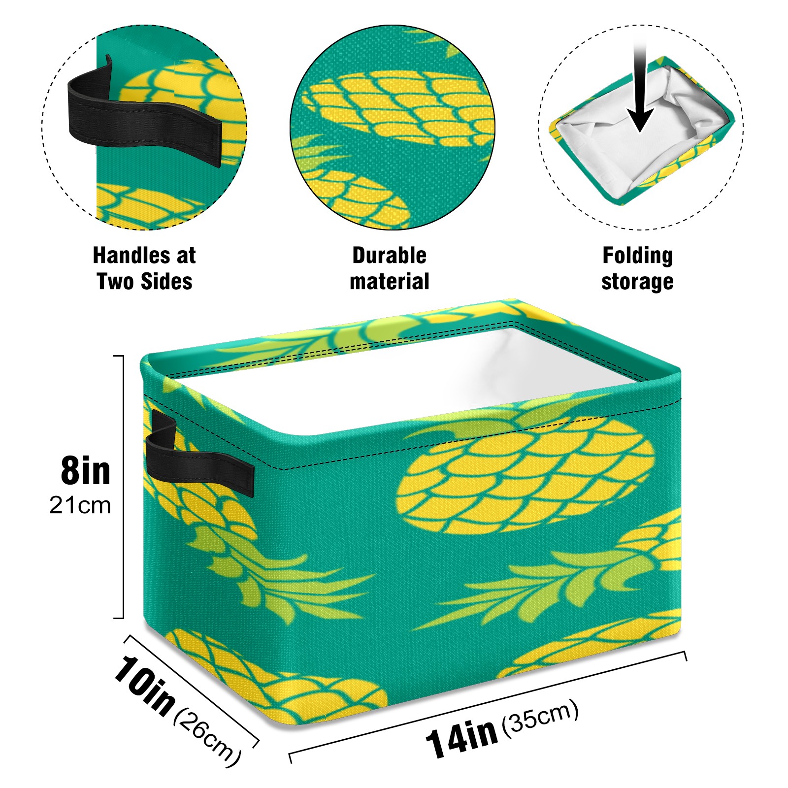 Collapsible 600D Oxford Storage Basket with Fruit Pineapple Pattern - Metal Frame 10"x14"x8" Reinforced Handles, Multi-Purpose Organizer