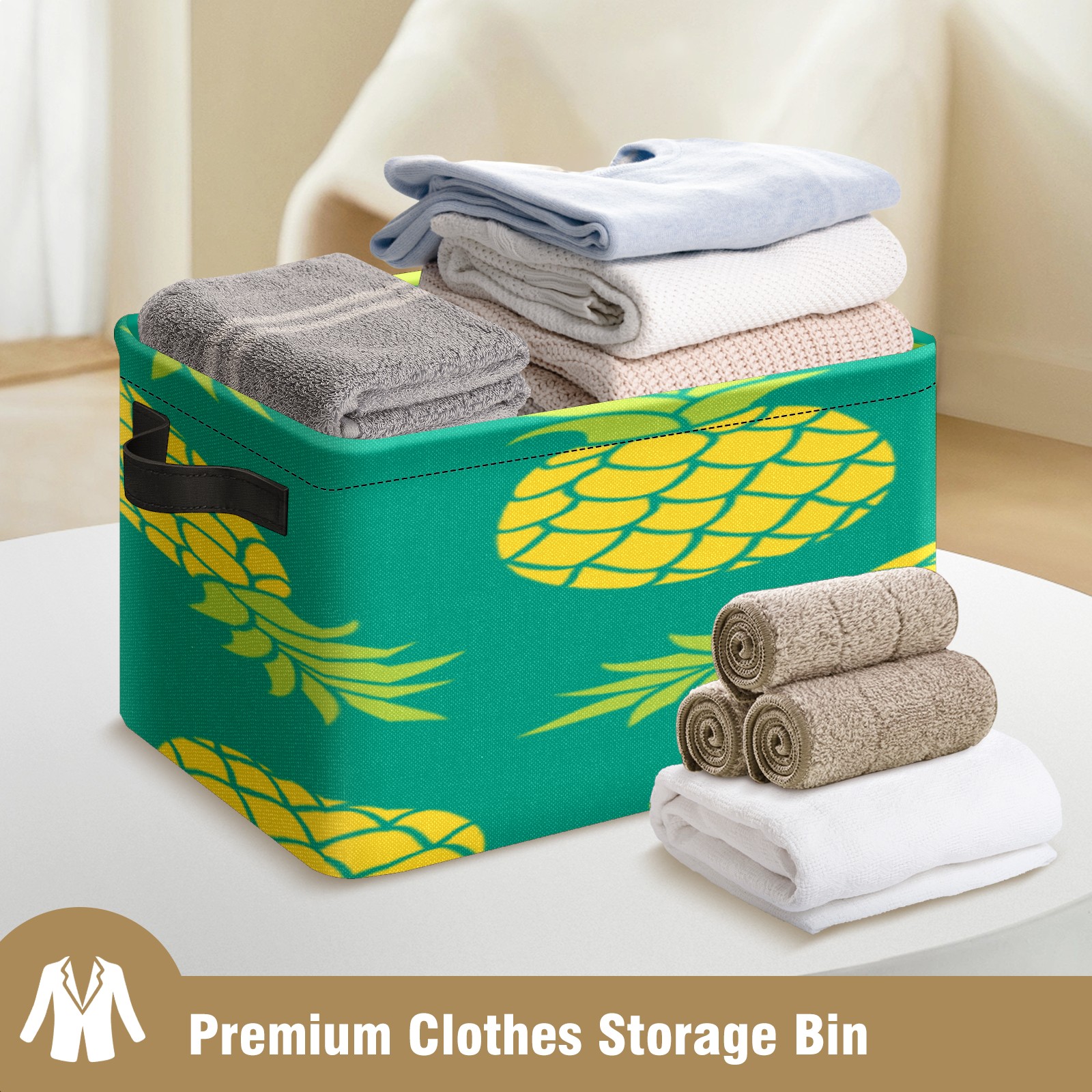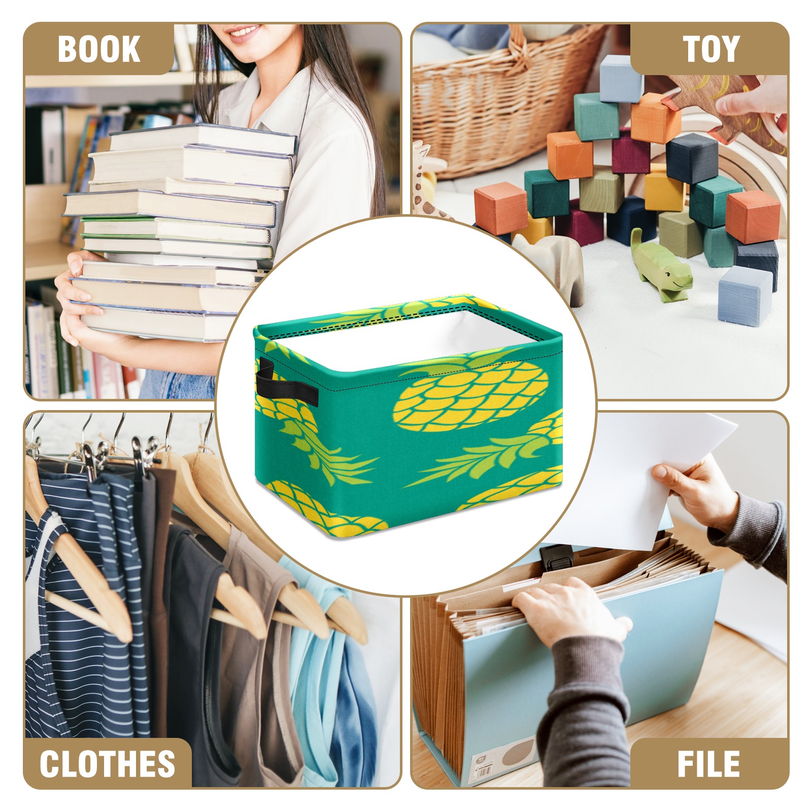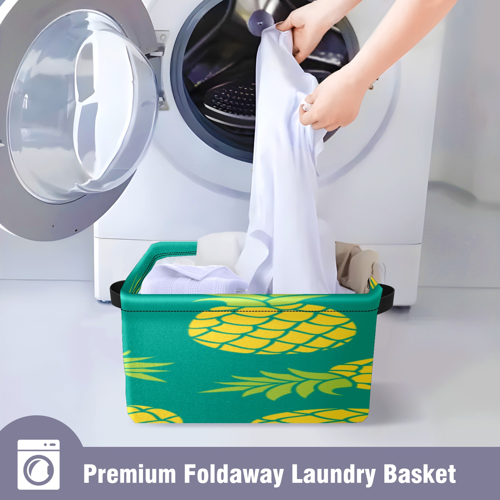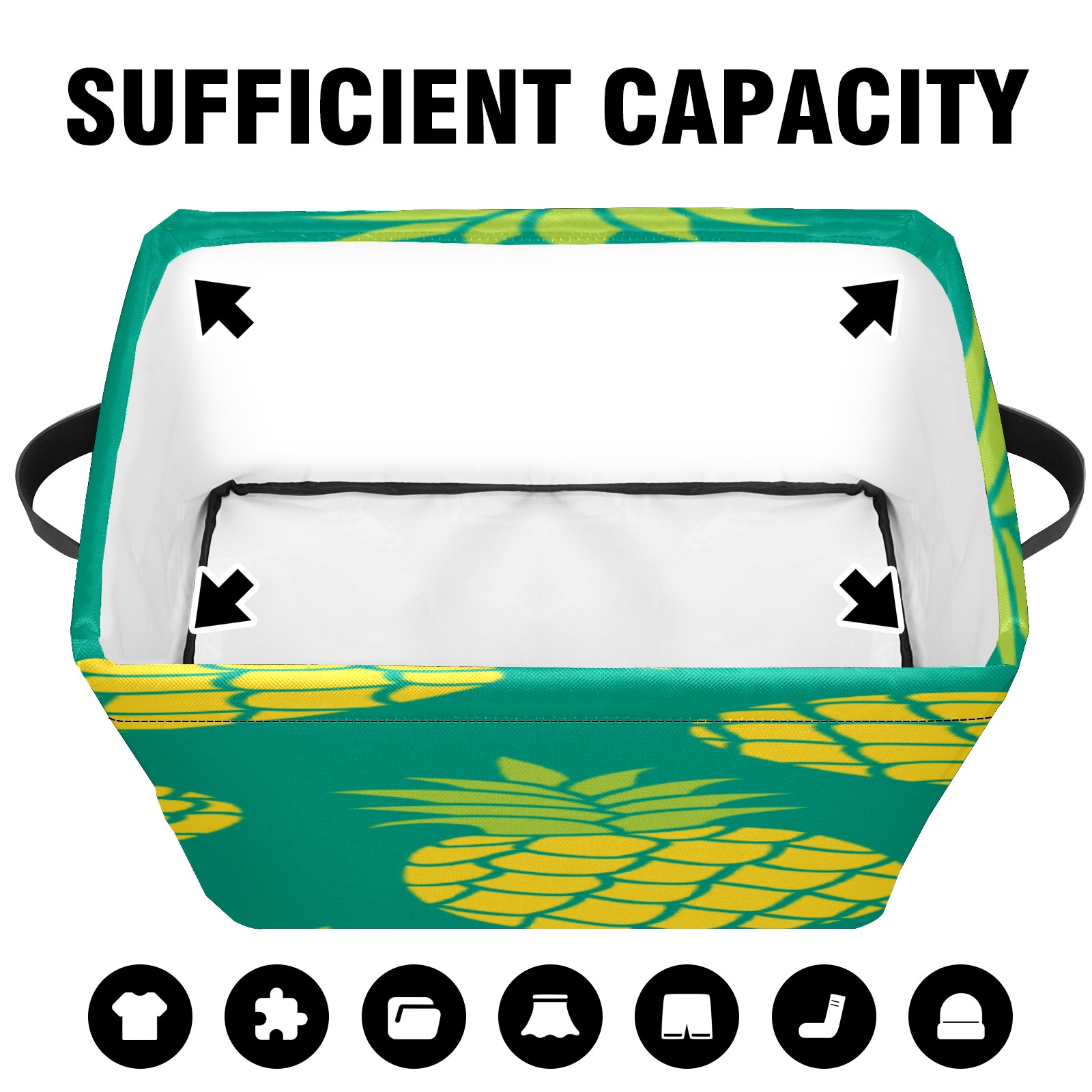 Collapsible 600D Oxford Storage Basket with Fruit Pineapple Pattern - Metal Frame 10"x14"x8" Reinforced Handles, Multi-Purpose Organizer