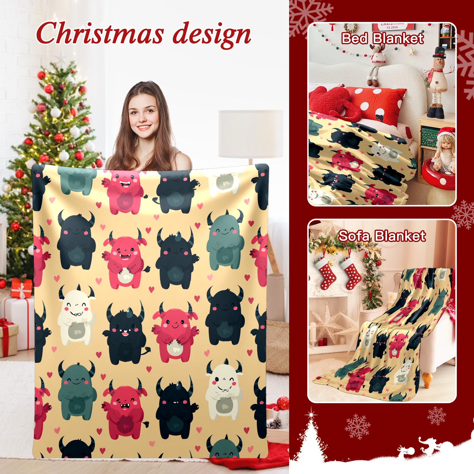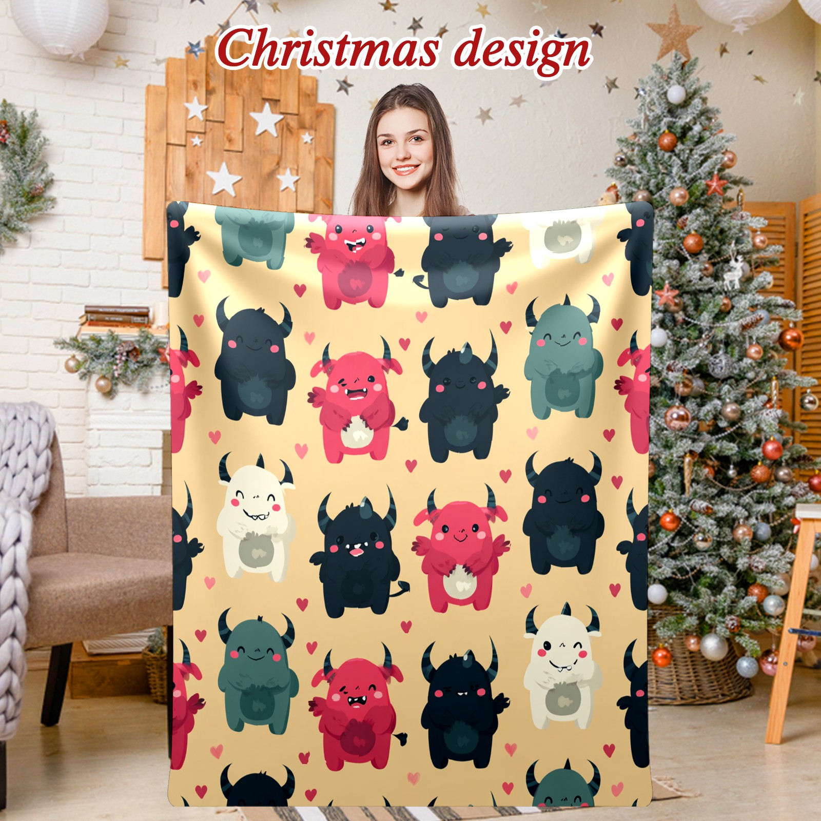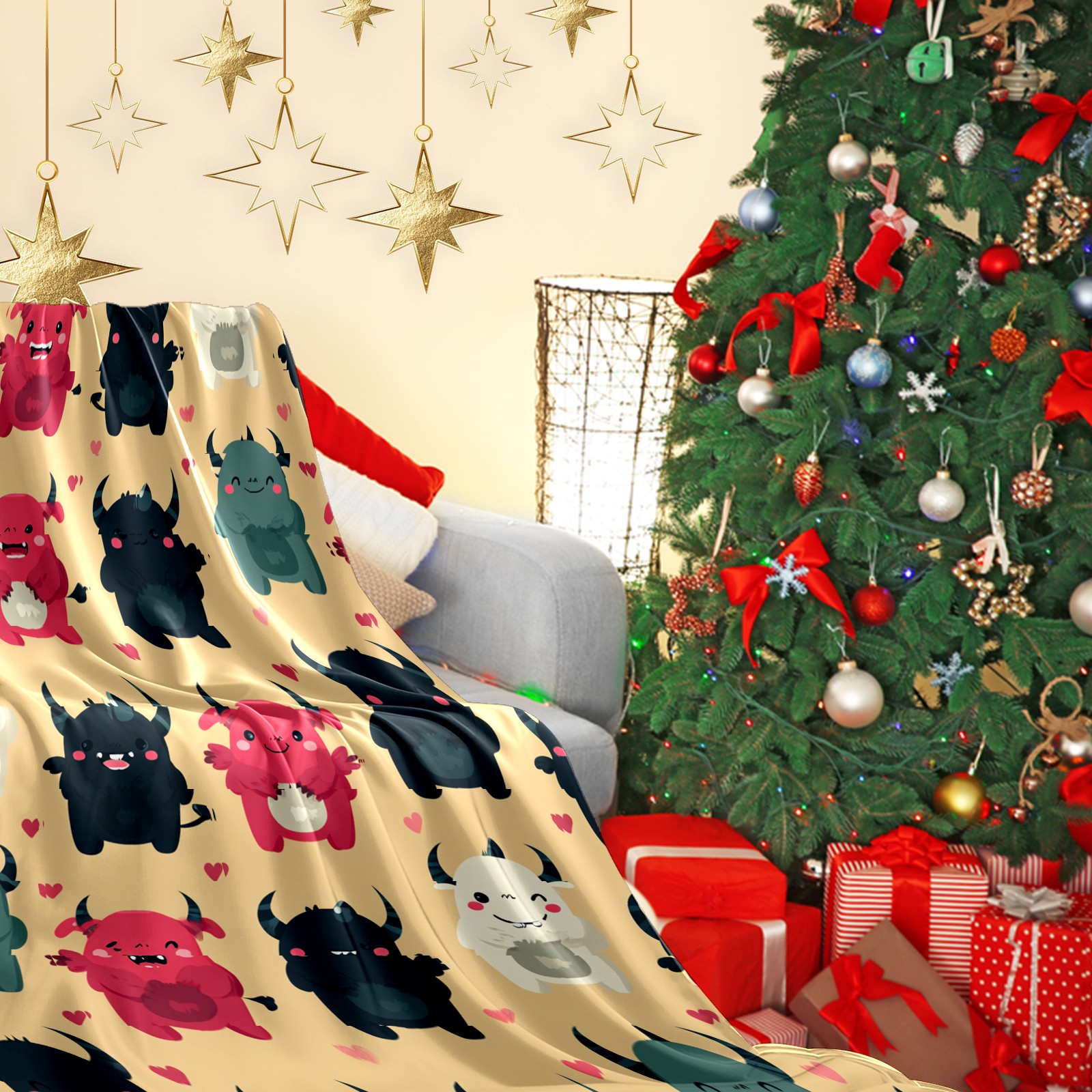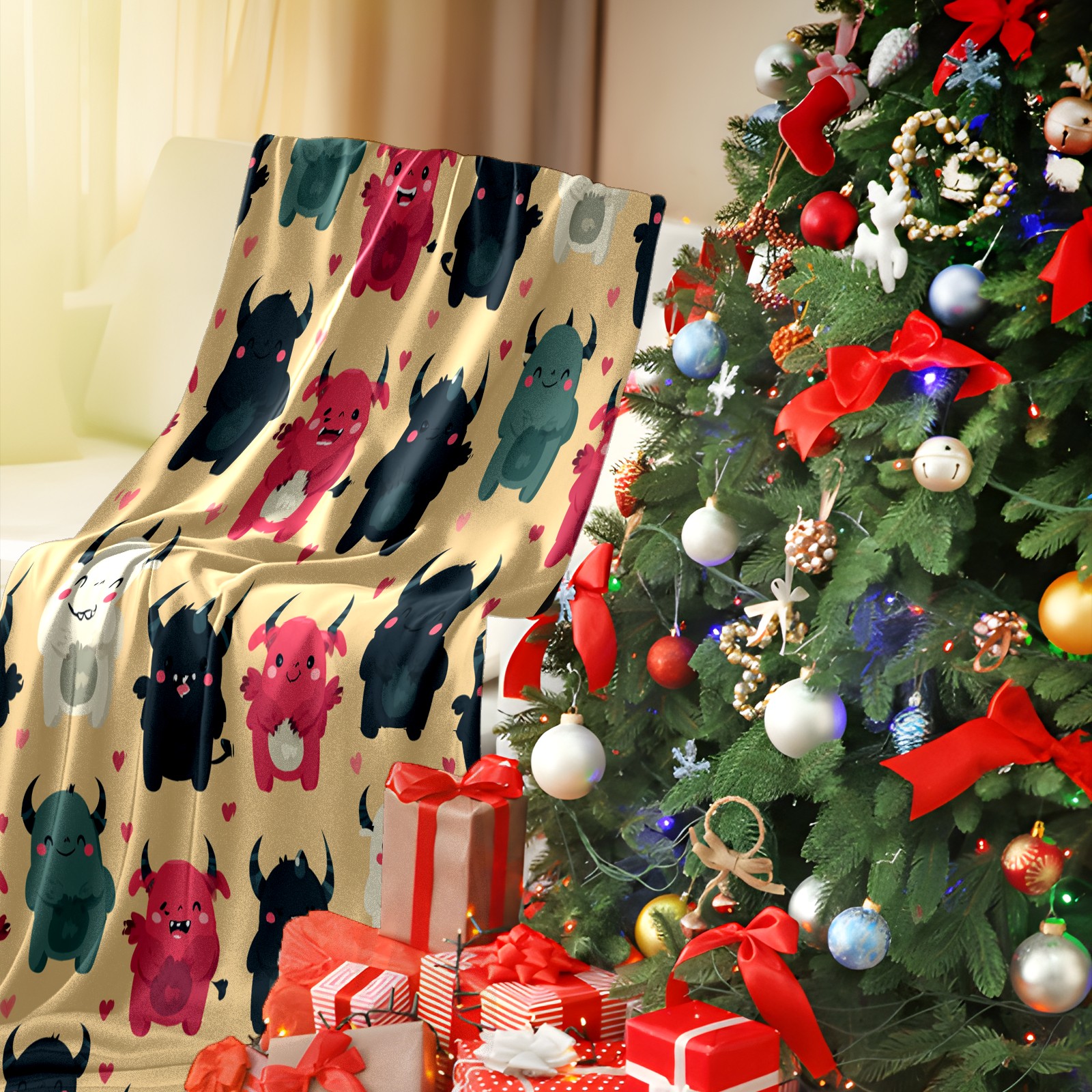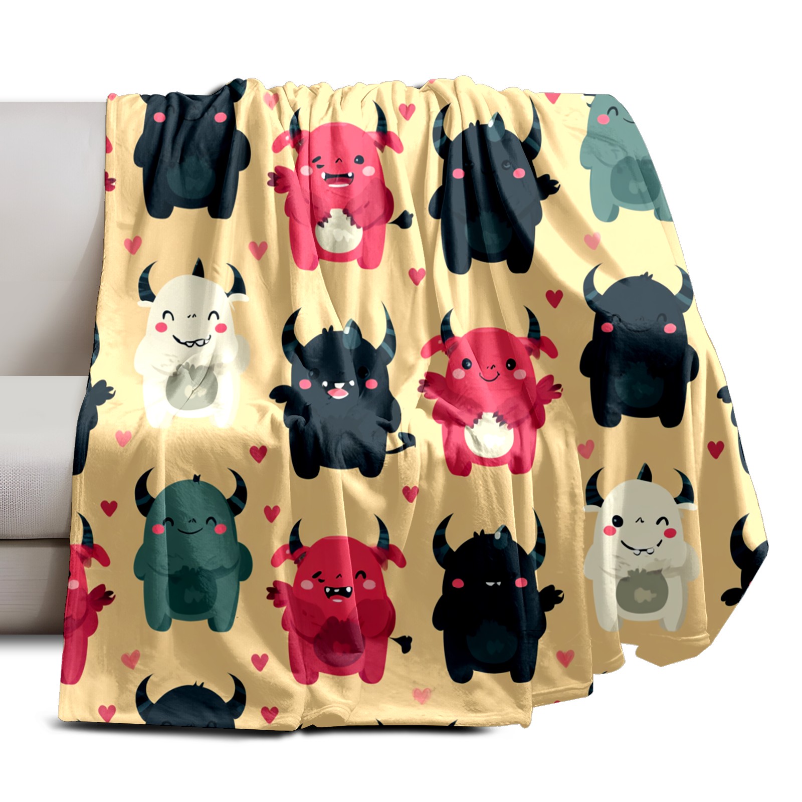 Премиальная фланелевая одеяло Colorful Monster Yellow