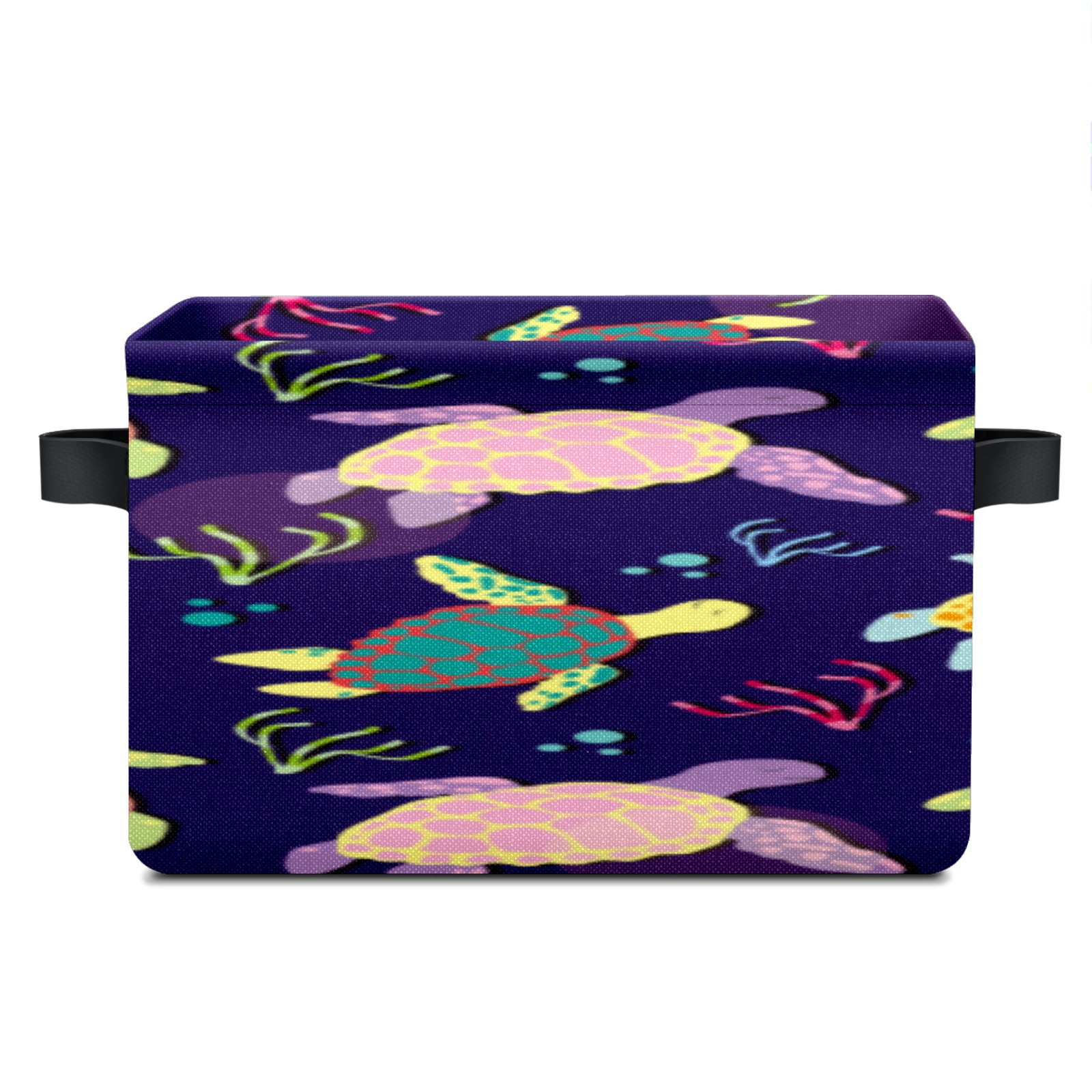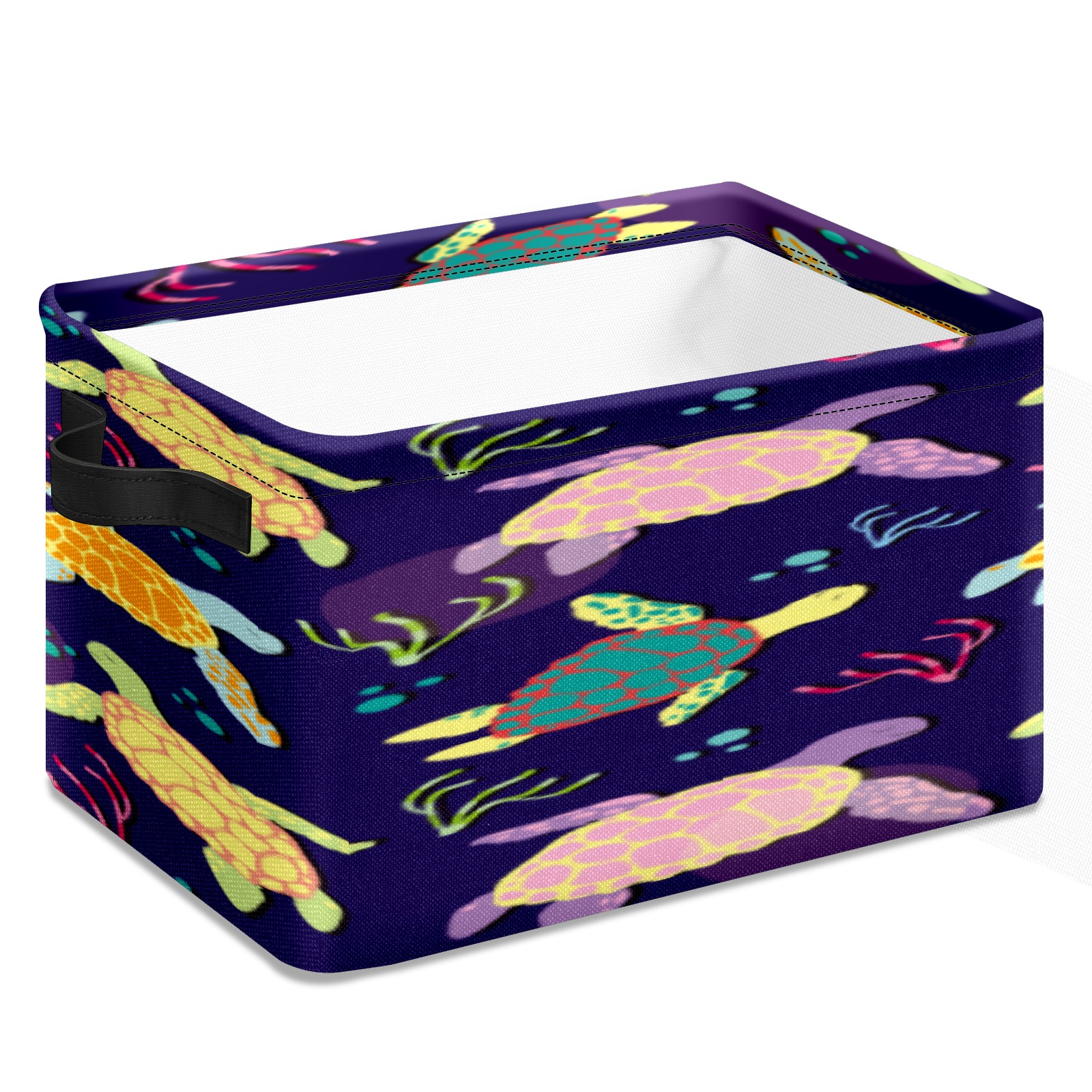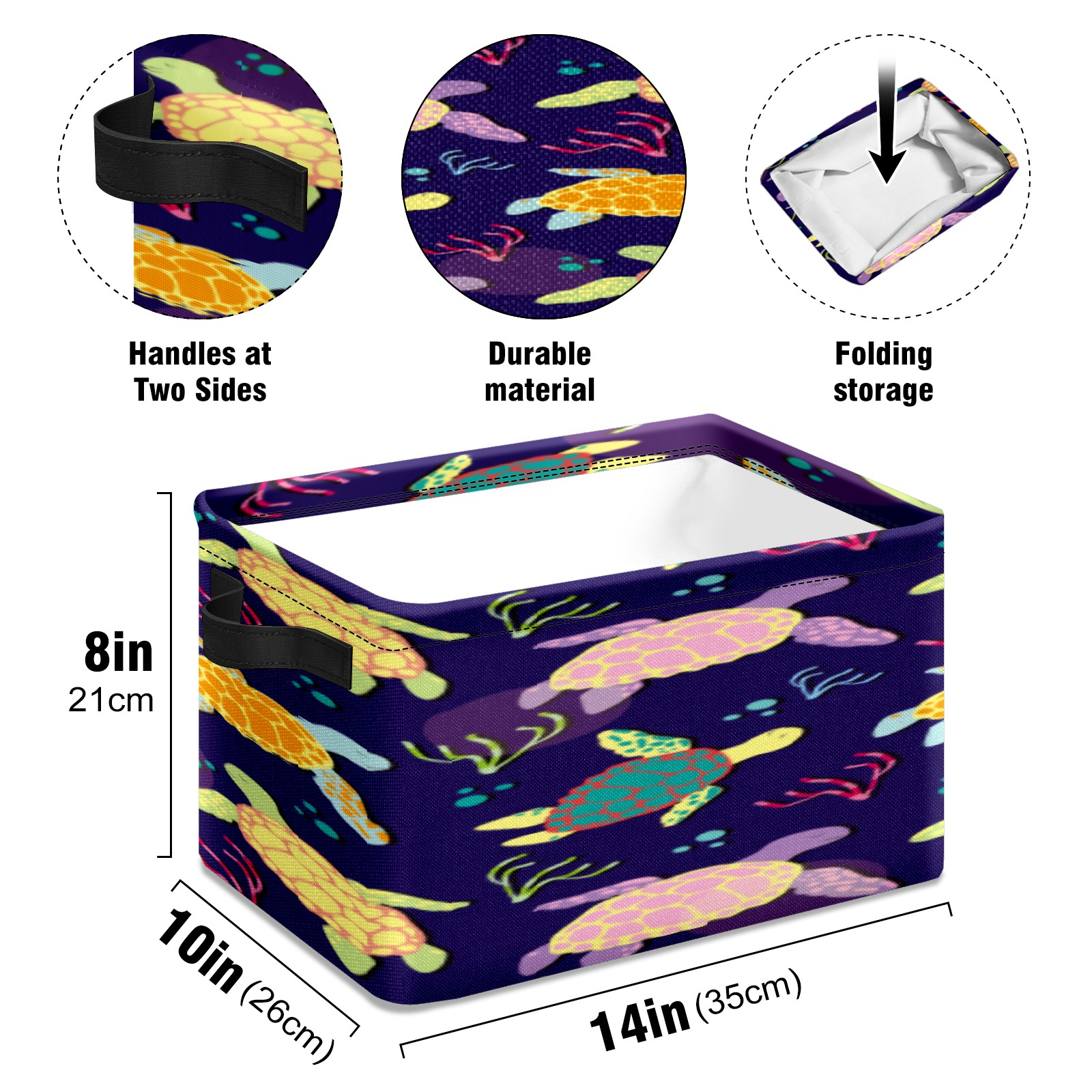 Collapsible 600D Oxford Storage Basket with Colorful Boho Sea Turtle - Metal Frame 10"x14"x8" Reinforced Handles, Multi-Purpose Organizer