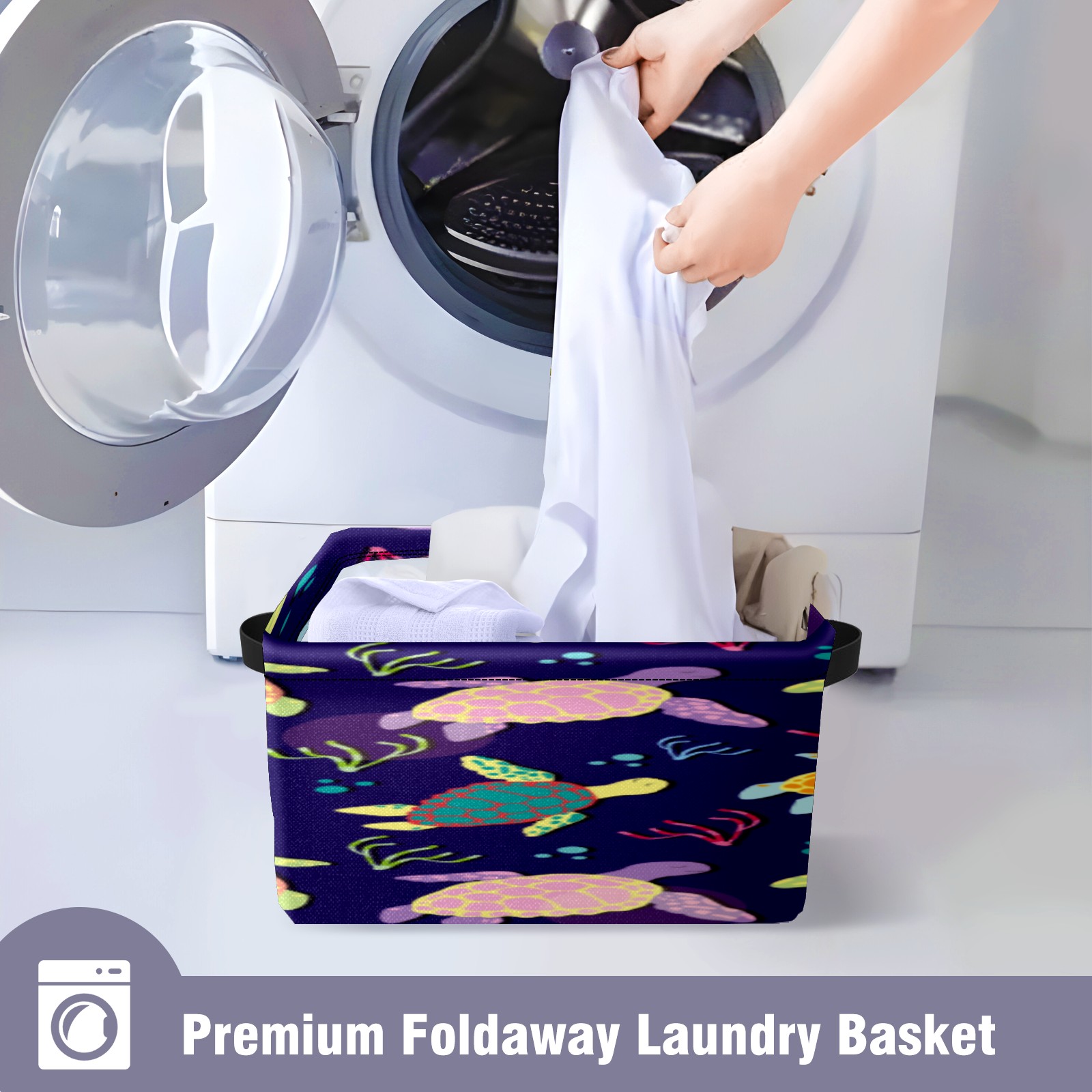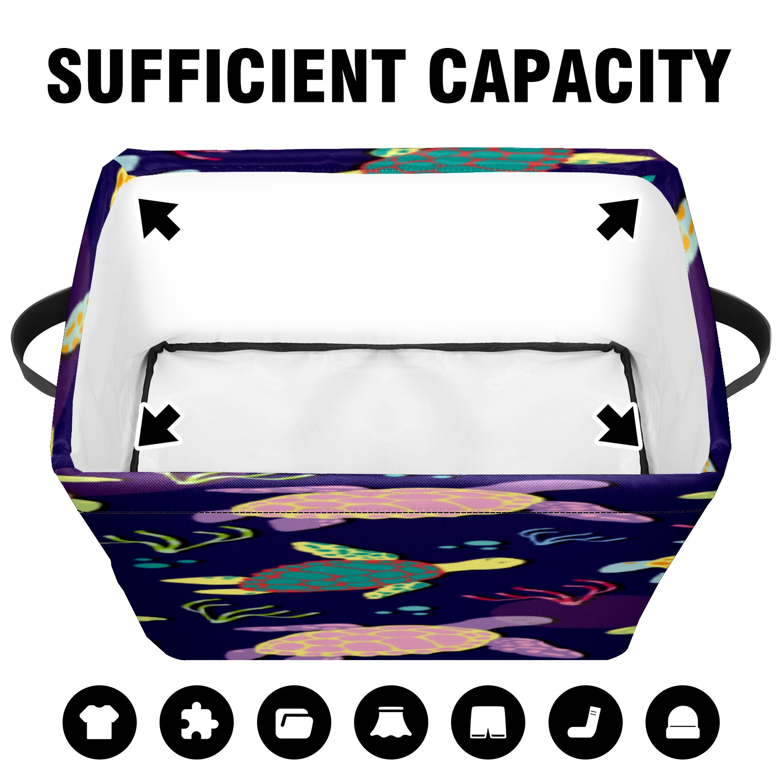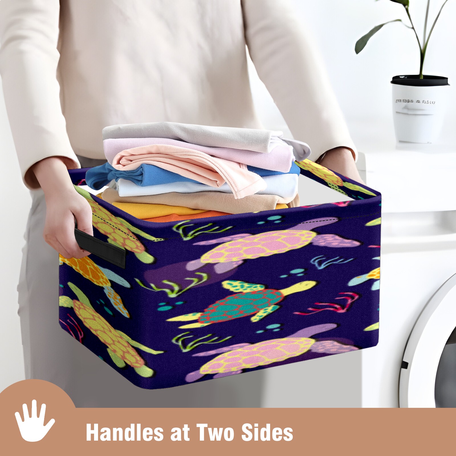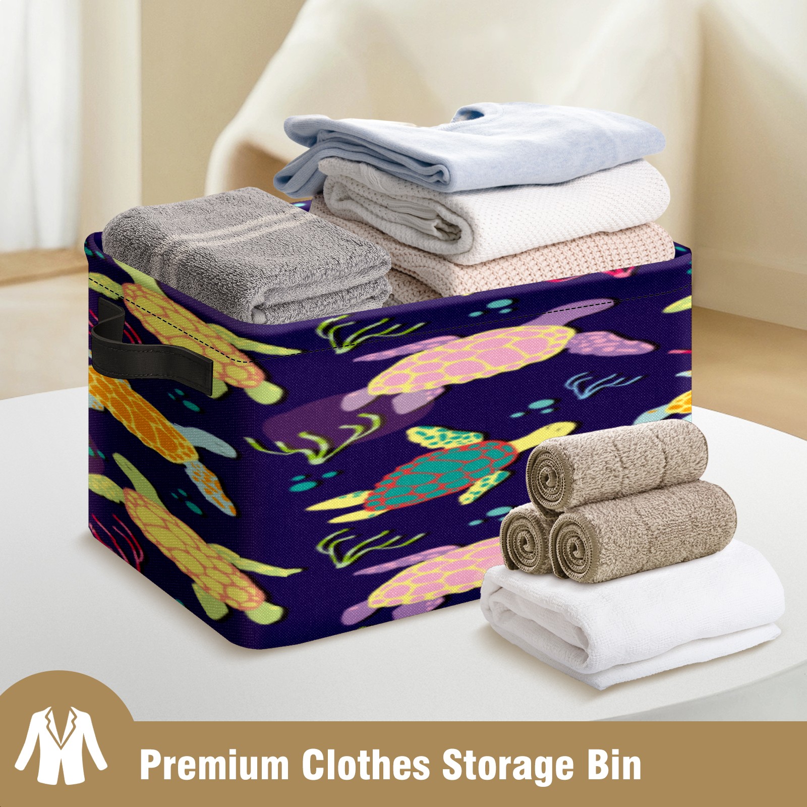 Collapsible 600D Oxford Storage Basket with Colorful Boho Sea Turtle - Metal Frame 10"x14"x8" Reinforced Handles, Multi-Purpose Organizer