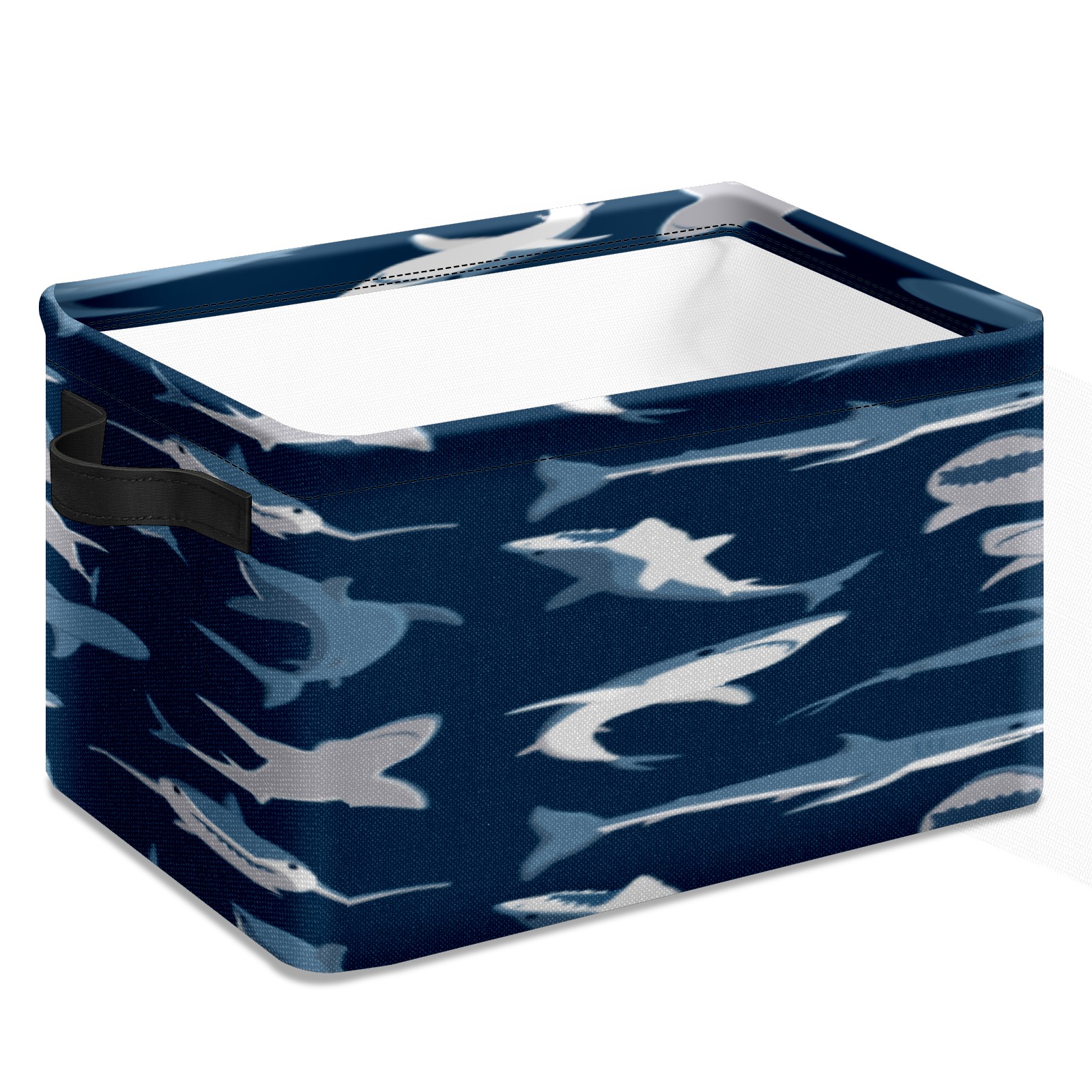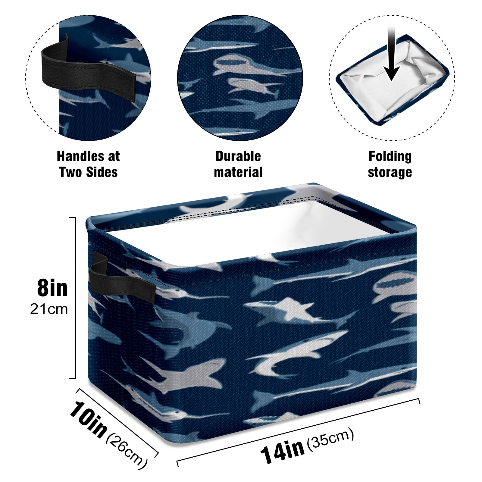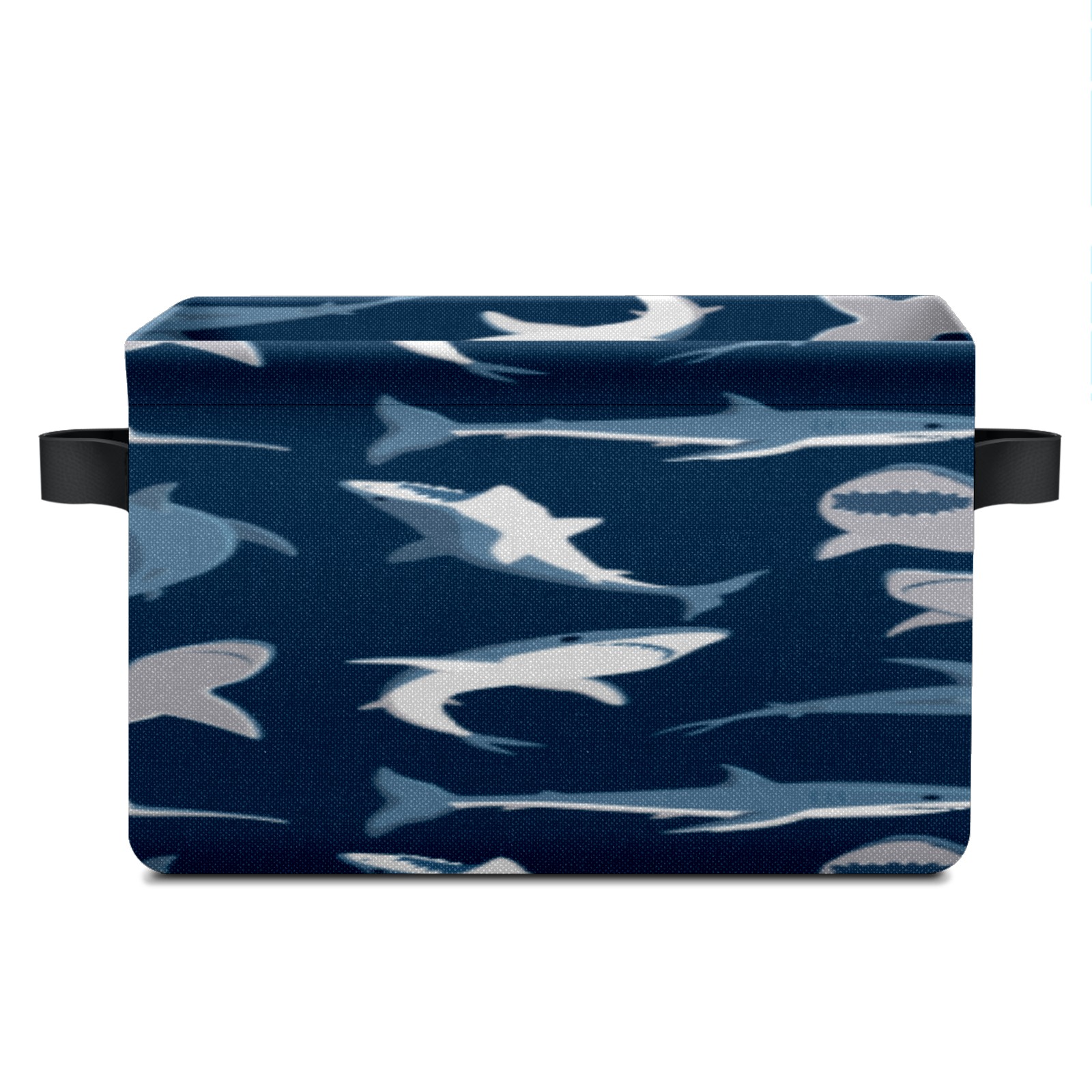 Collapsible 600D Oxford Storage Basket with Shark Dark Pattern - Metal Frame 10"x14"x8" Reinforced Handles, Multi-Purpose Organizer