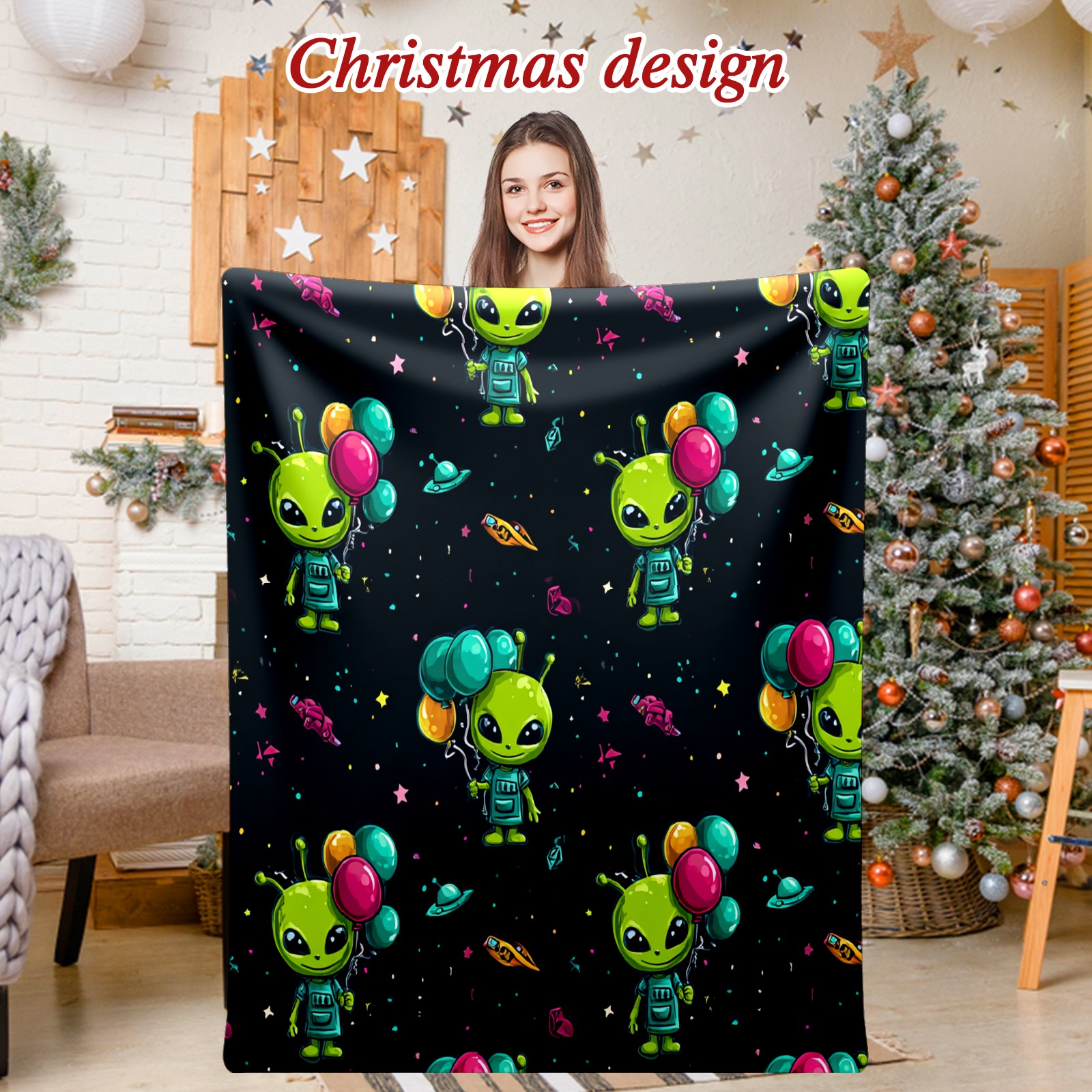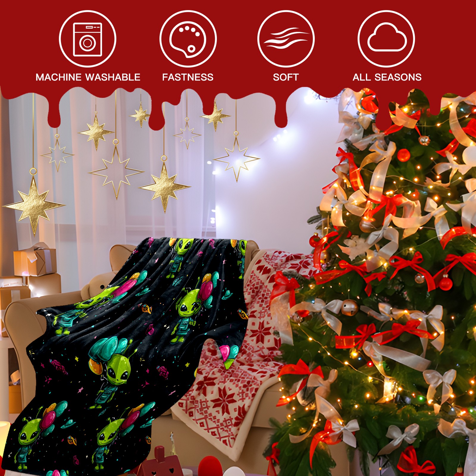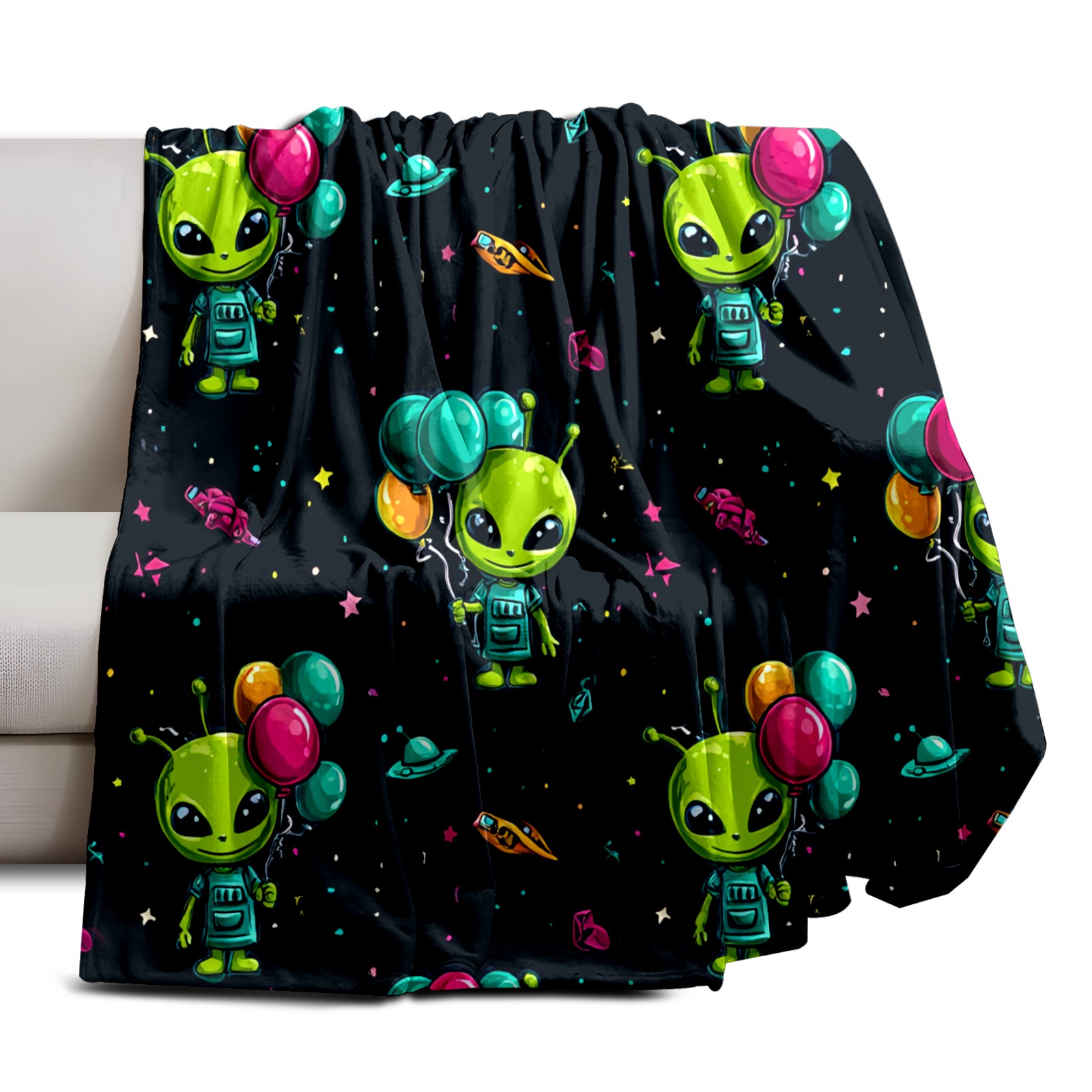 Премиальная фланелевая одеяло Cheerful Alien Black