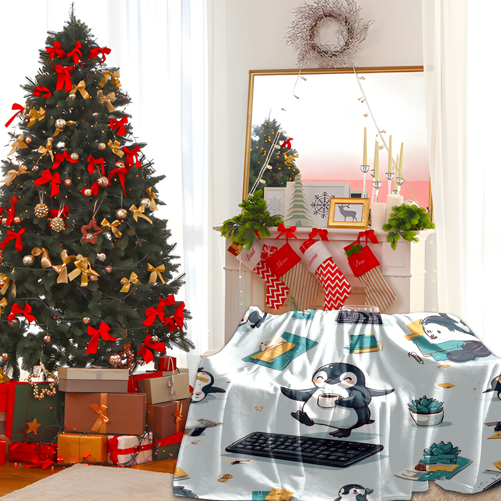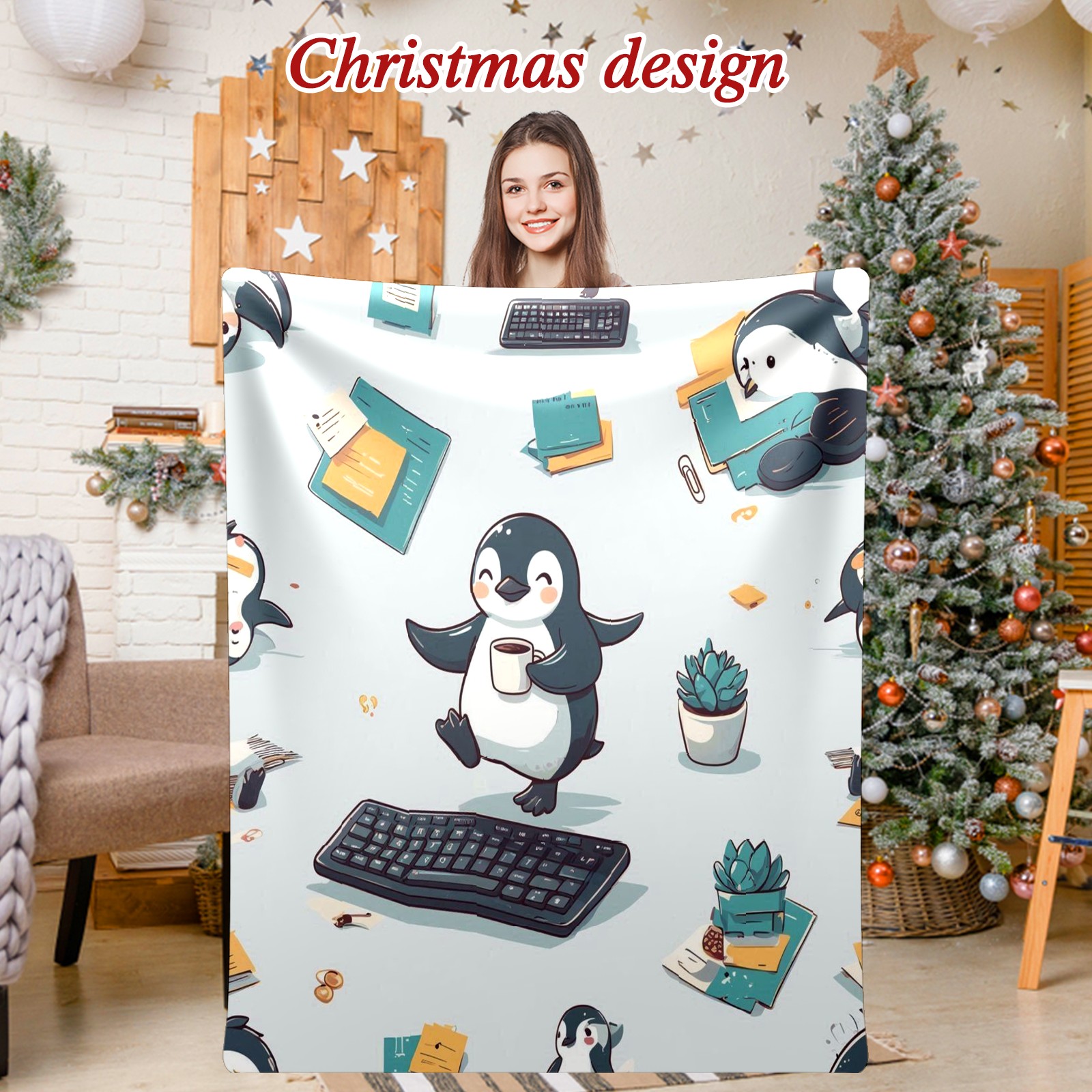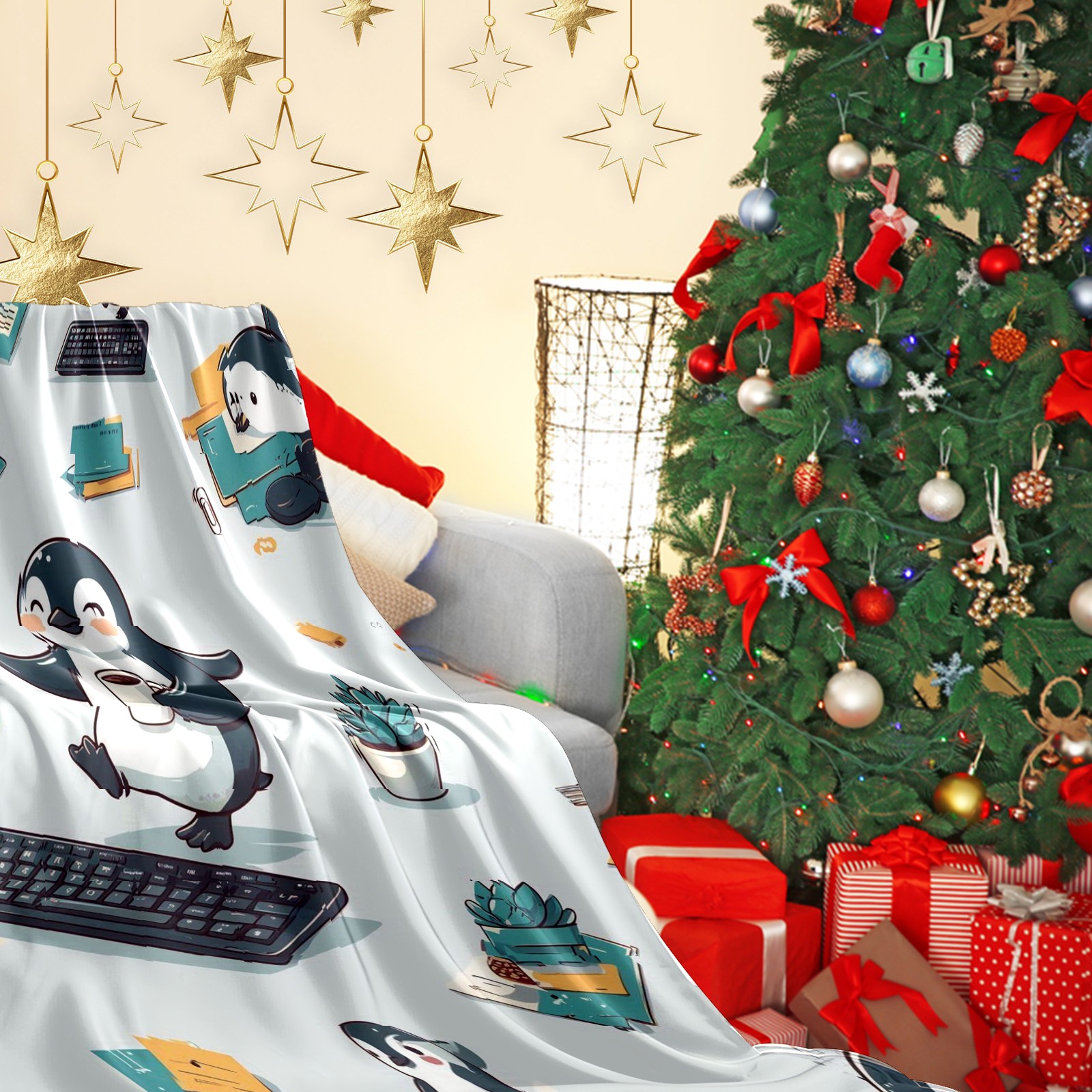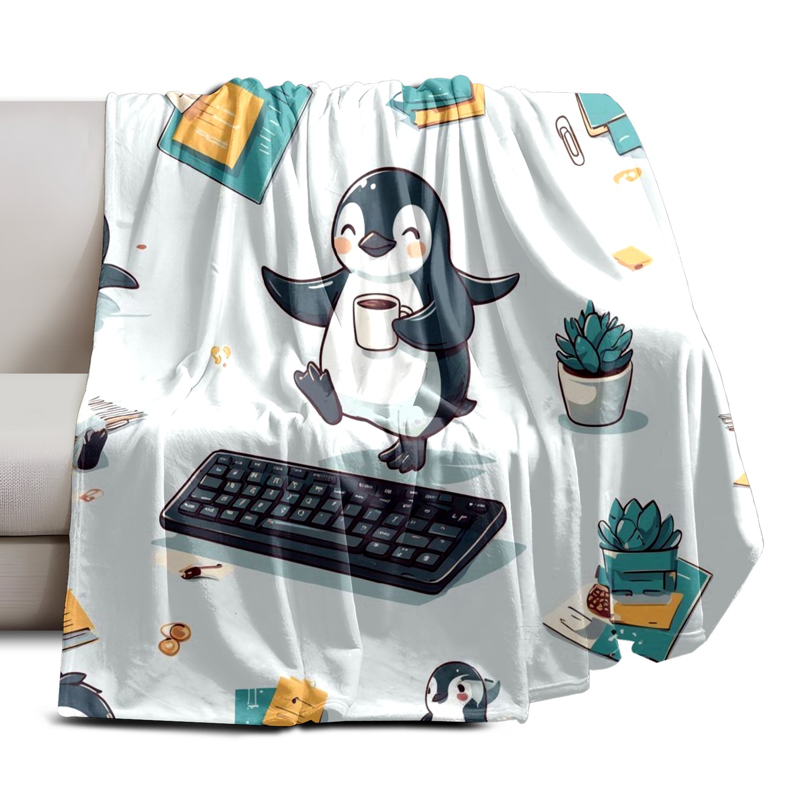 Премиальная фланелевая одеяло Artistic Penguin Gray